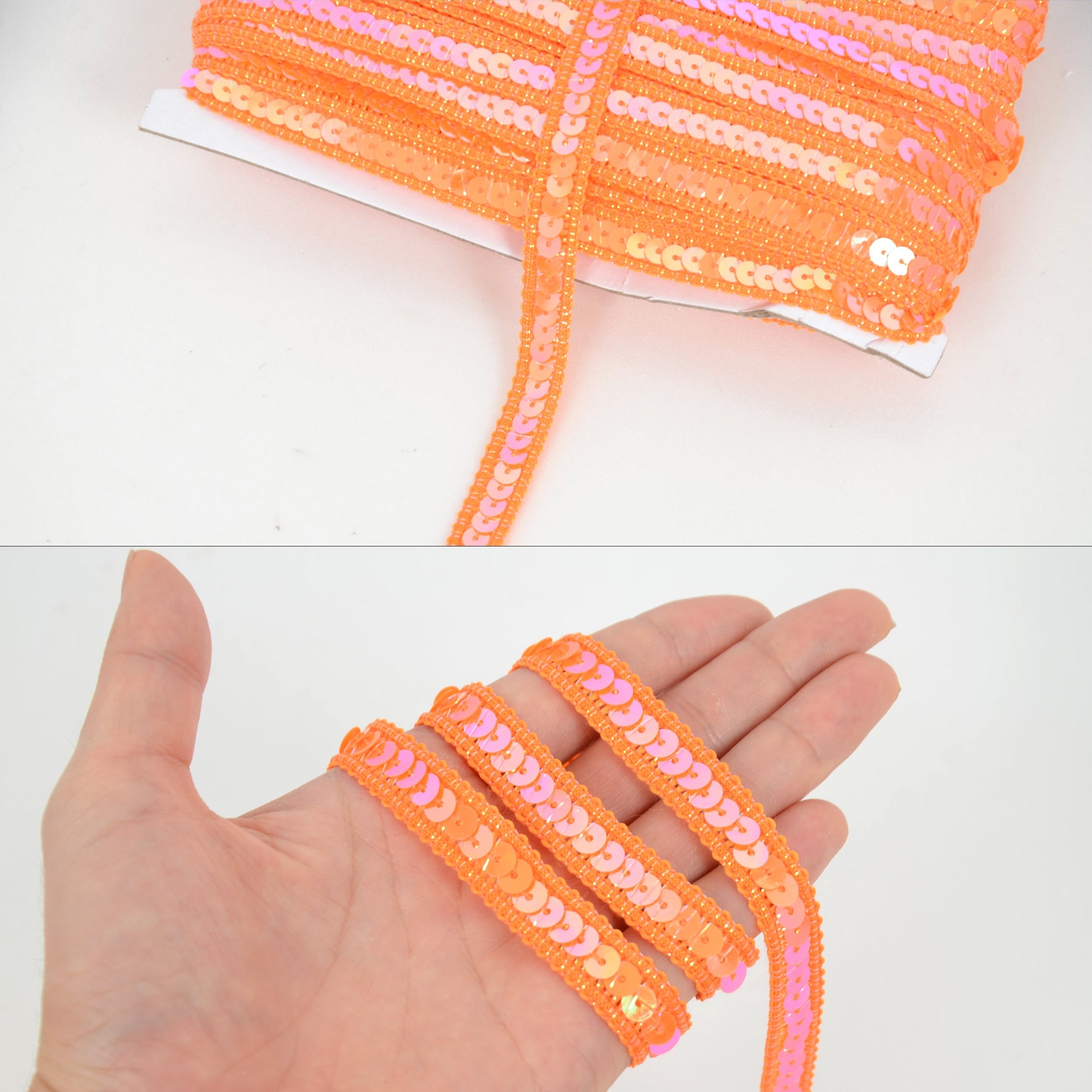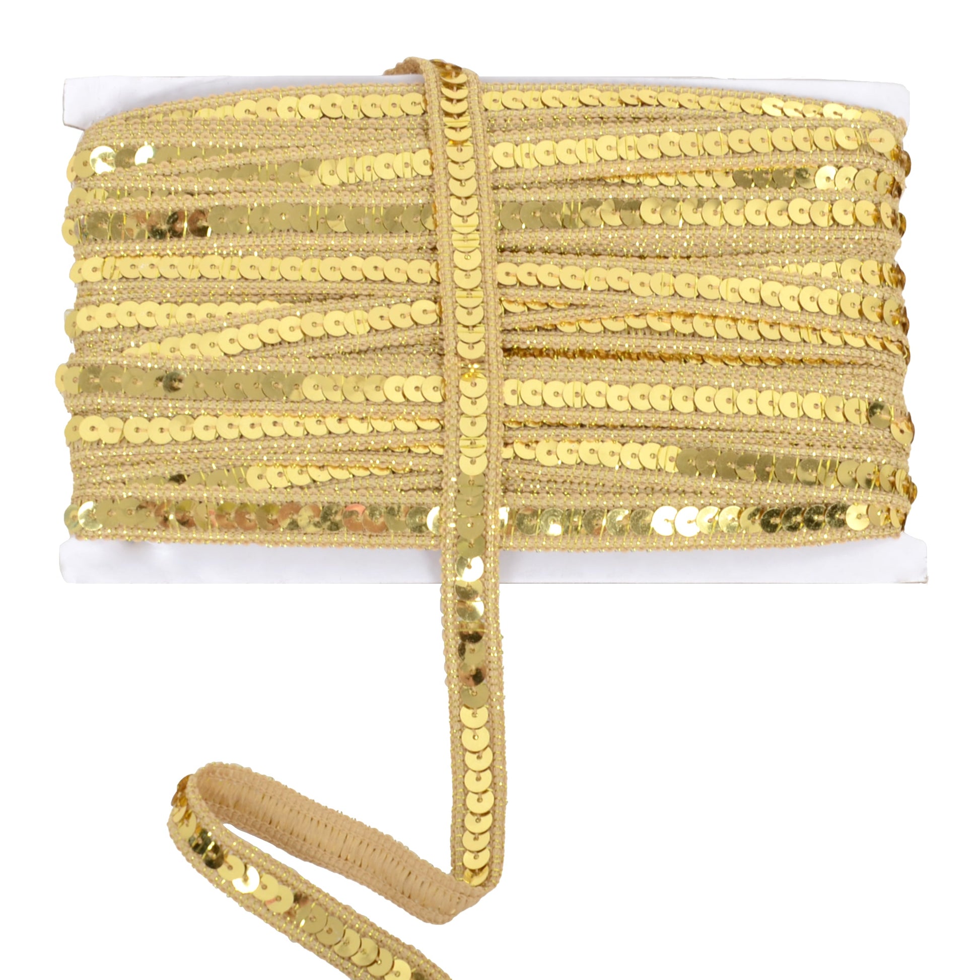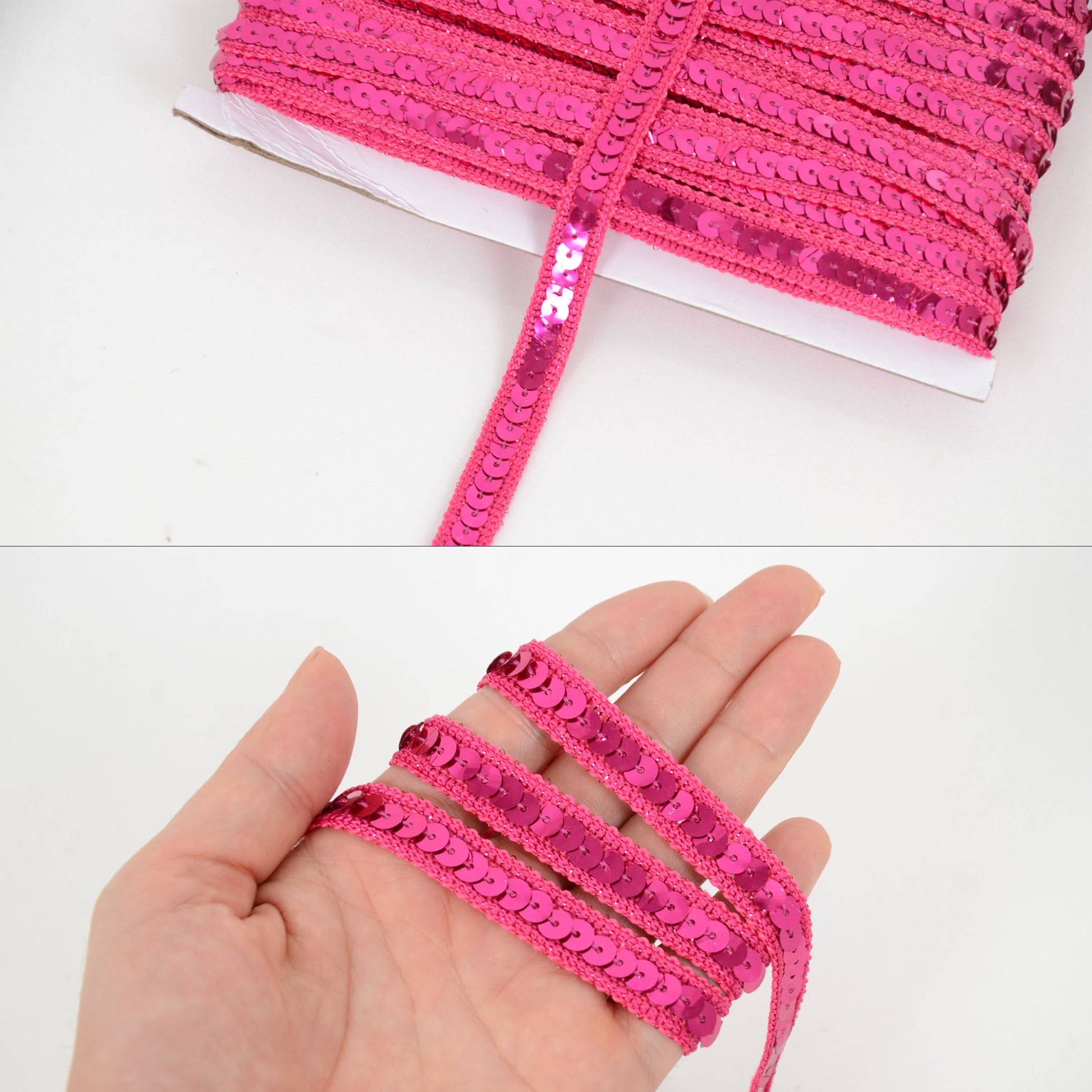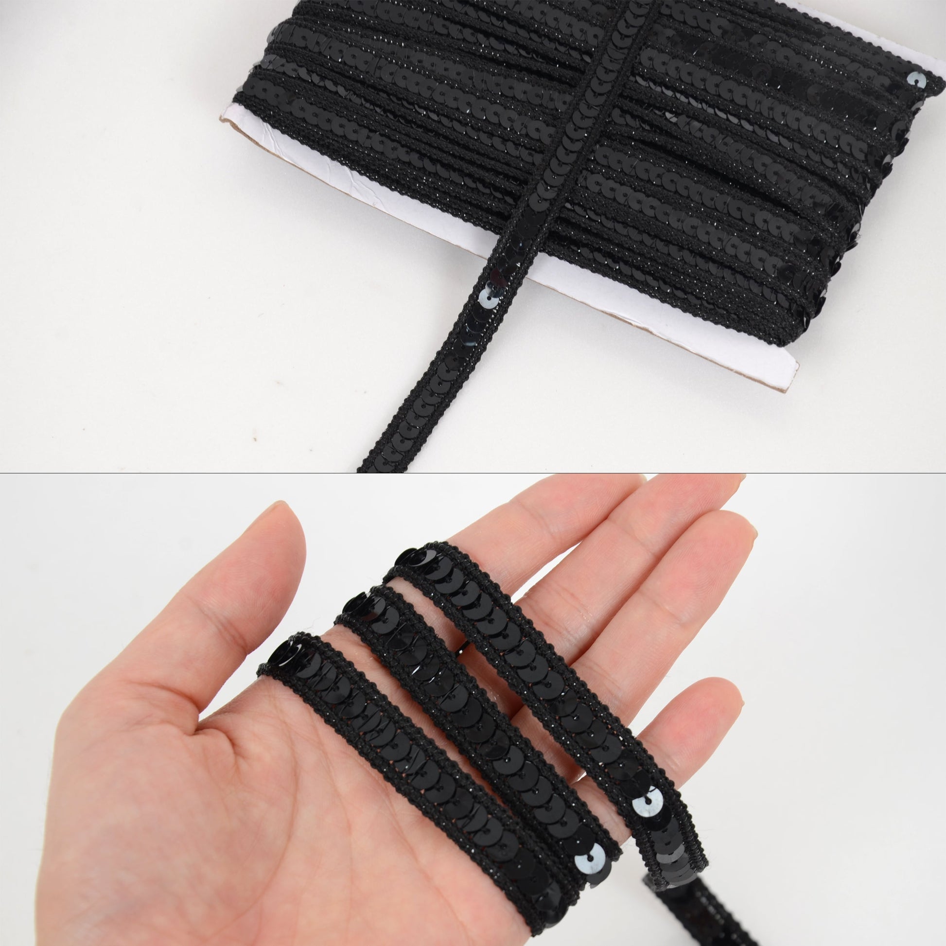 Whether you're creating beautiful Christmas tree decorations, preparing for a Halloween or New Year party, or simply looking to add some bling to your DIY crafts, this sequin stripe is a wonderful choice. Its versatility makes it ideal for a wide range of applications, including birthday gift packaging and DIY fringe sewing projects.The flat design of the glitter ribbon ensures easy sewing and effortless application, while the metallic sequins catch the light and create a dazzling effect. Let your creativity shine with this eye-catching trim that adds a touch of glamour to any project.Easy to use, this sequin trim can be cut to the desired length and sewn or glued onto your chosen fabric or craft material. Its flexibility and durability make it great for various sewing and crafting techniques.Choose this sparkle sequin trim for your sewing embellishment needs and let your creations sparkle and shine.