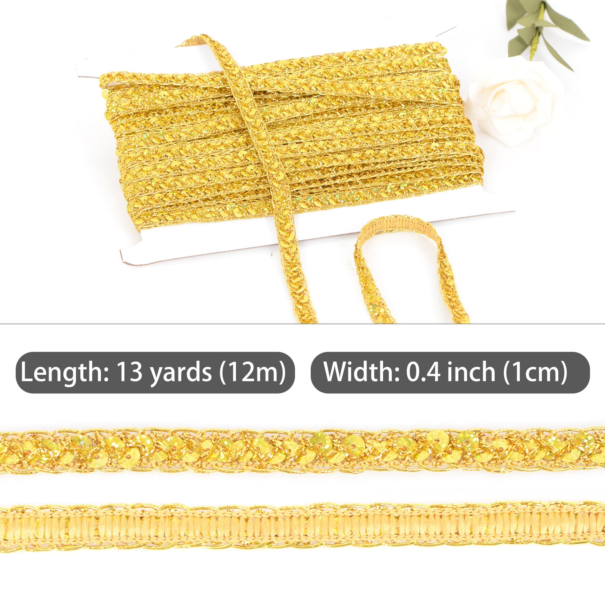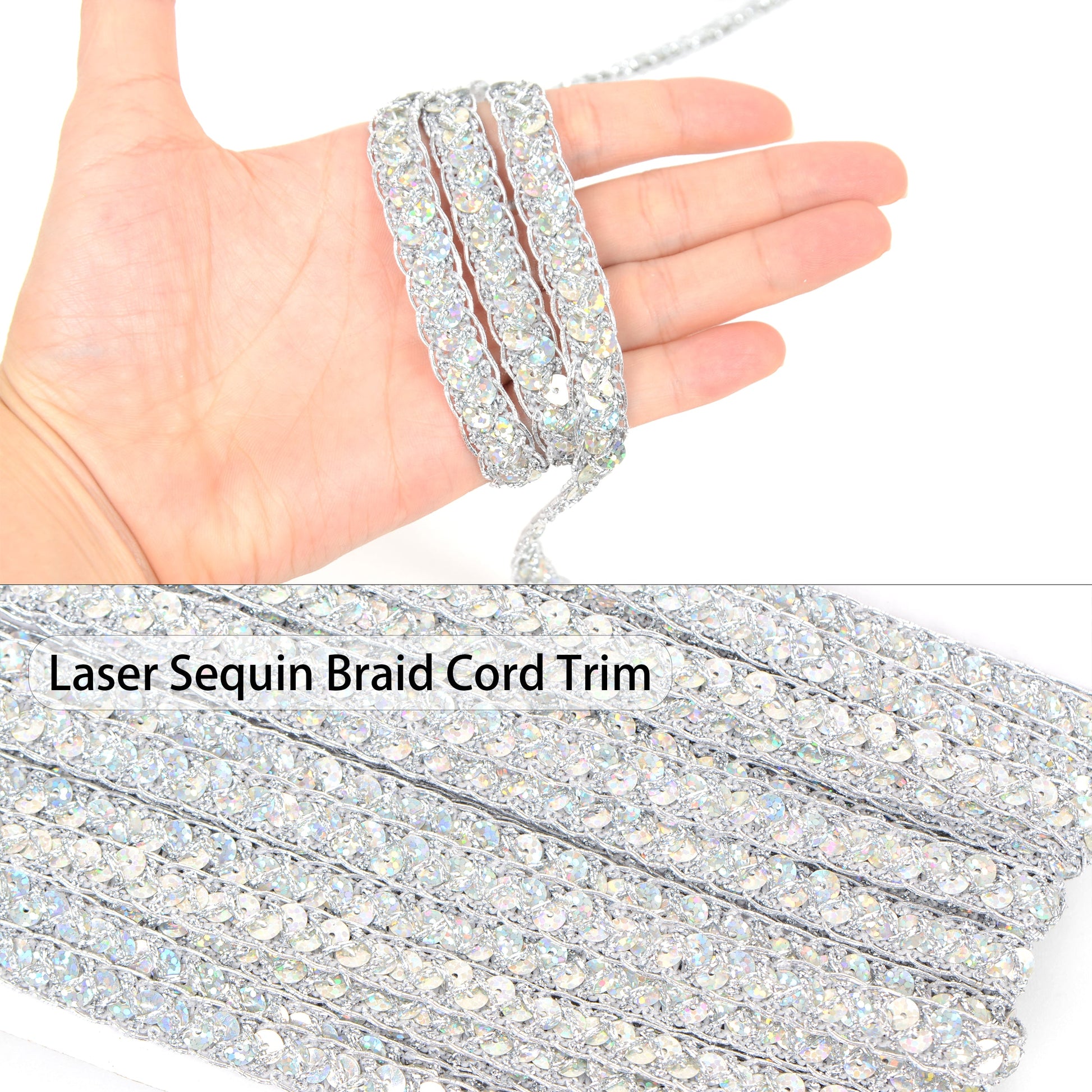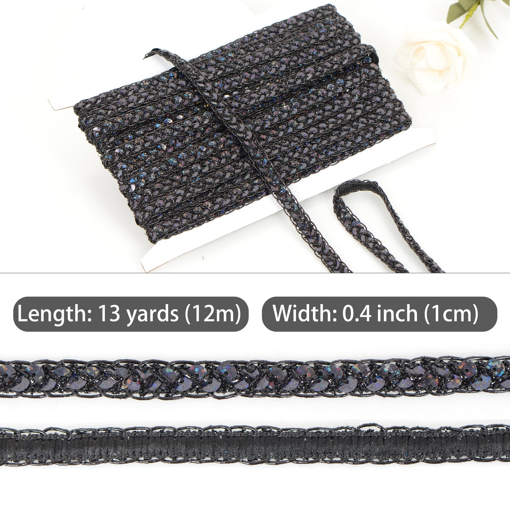 Sequin Braid Cord Trim, 0.4 Inch Glitter Laser Sequin Strip, Sewing Sequin Ribbon for DIY Crafts Party Decorations, 13 Yards