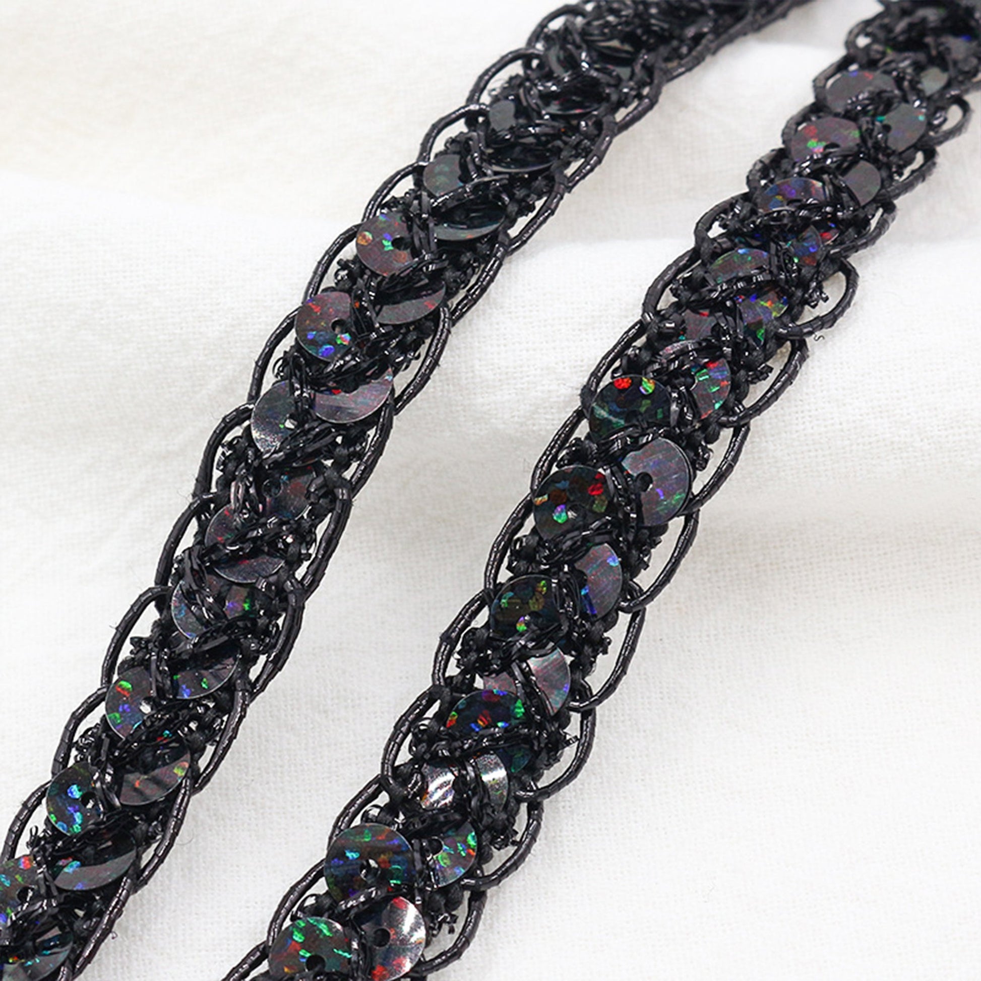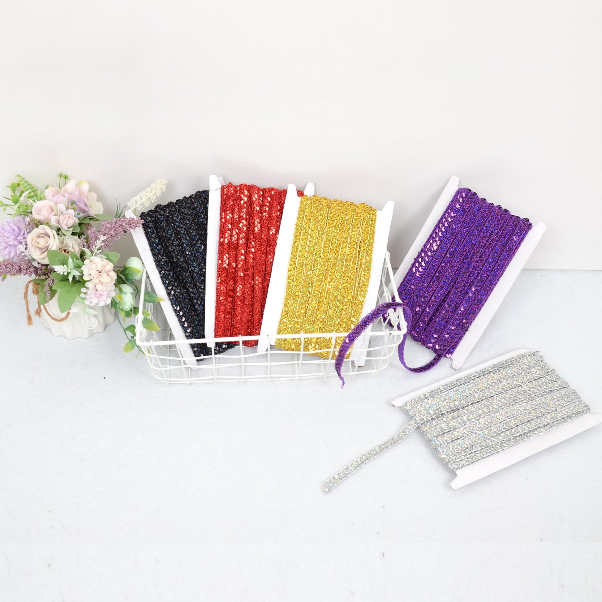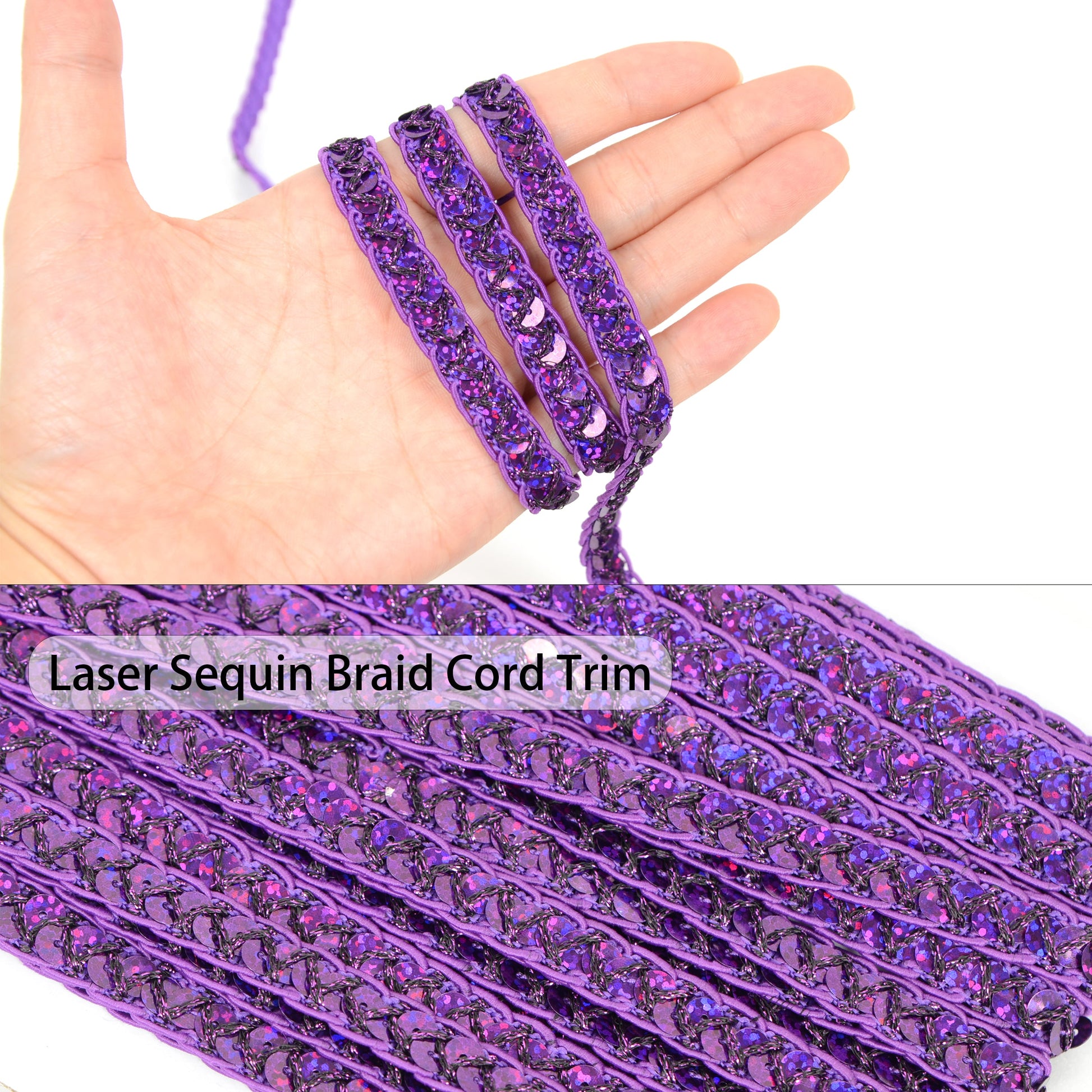 Sequin Braid Cord Trim, 0.4 Inch Glitter Laser Sequin Strip, Sewing Sequin Ribbon for DIY Crafts Party Decorations, 13 Yards
