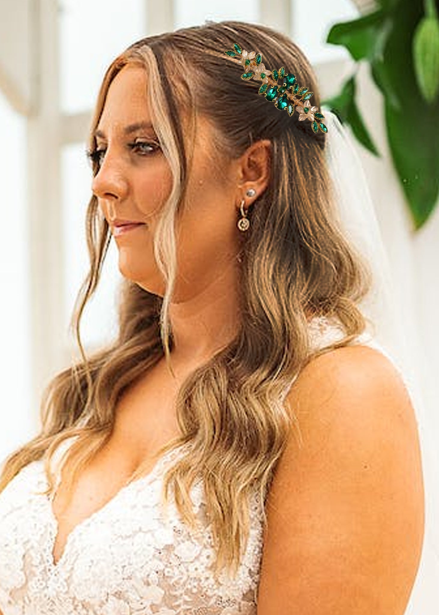 Exquisite Craftsmanship - Our Crystal Wedding Hair Comb is skillfully designed from premium alloy, radiant crystals, glittering rhinestones, and intricate leaf accents. This hair accessory promises to retain its brilliance and sturdiness, ensuring you shine throughout your special day.