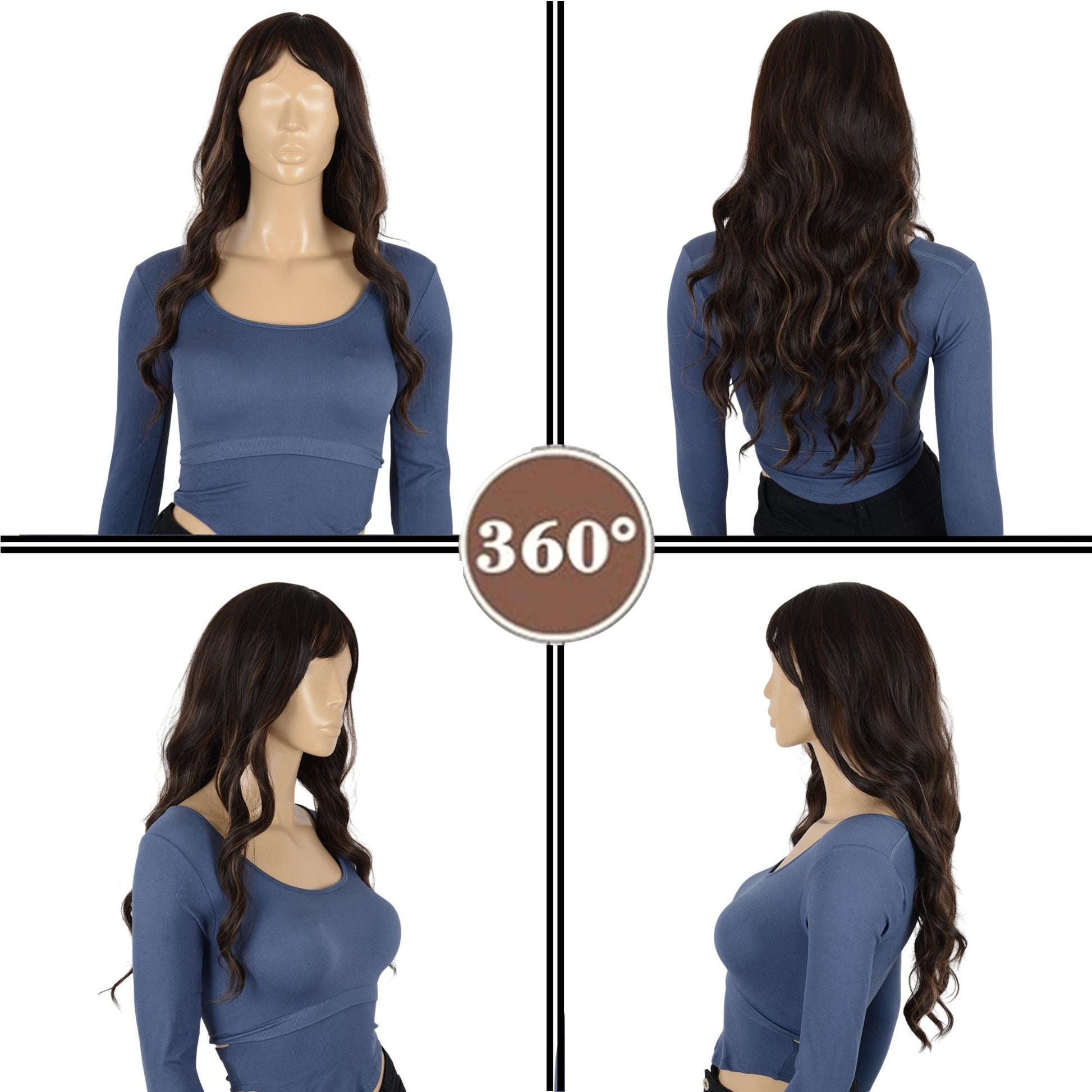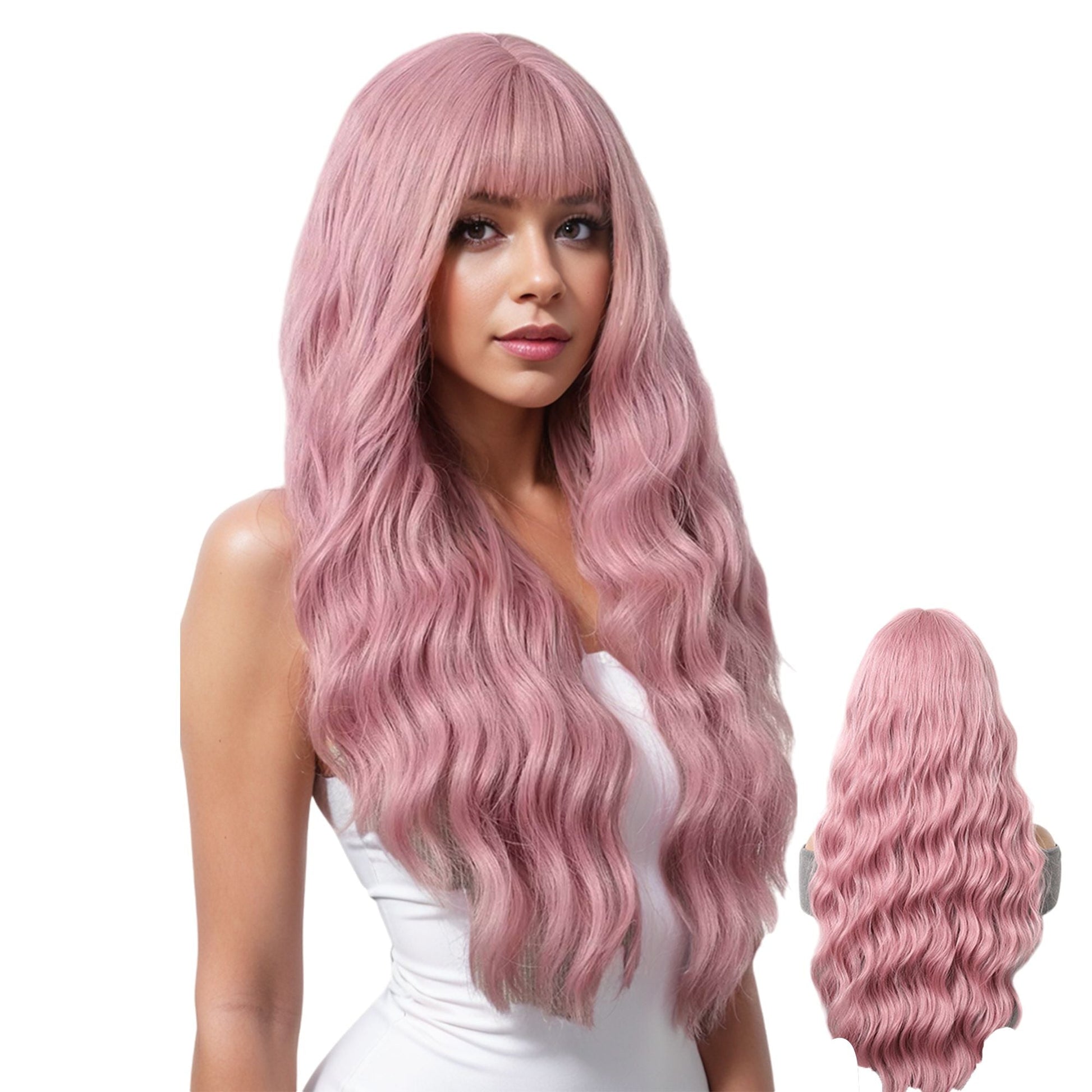 This stunning long wavy synthetic wig features soft, voluminous waves and a chic fringe for a natural, glamorous look. Designed with a breathable cap, it provides comfort for all-day wear. The wig is adjustable to fit most head sizes and is ideal for transforming your style effortlessly, whether for casual days or special occasions. Keyword: blonde wigs/misa amane wig/alice in wonderland wig/taylor swift wig