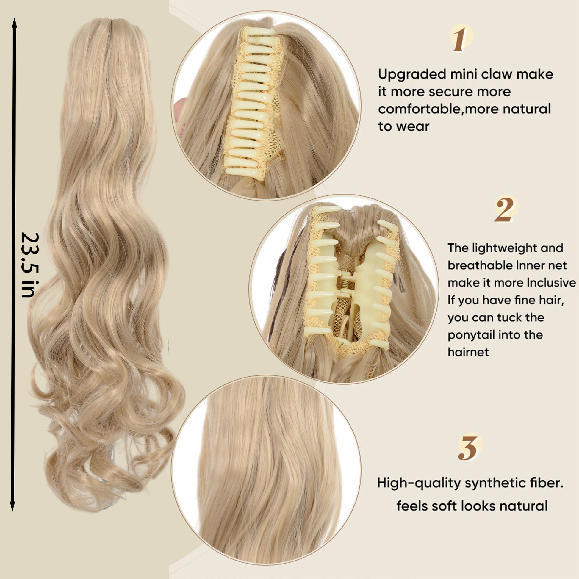 Claw Clip Ponytail Extensions for Women 23 Inch Long Wavy Fluffy Synthetic Ponytail Hairpiece