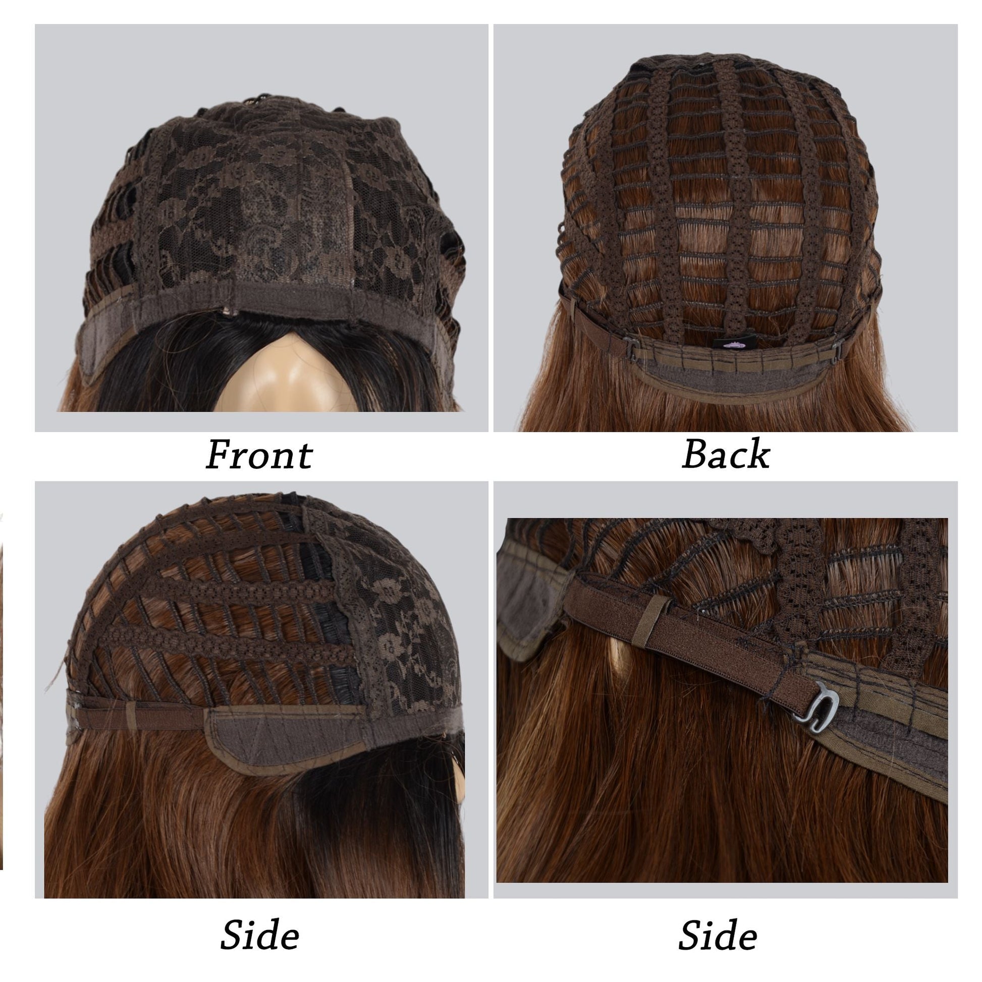This 22-inch long brown wig adds a touch of elegance with its natural waves and ombre effect. Made from heat-resistant synthetic fiber, it feels soft, lightweight, and realistic, perfect for daily wear or special events. The breathable inner mesh ensures all-day comfort, while the natural curls retain their shape for a long-lasting look. Easy to maintain and style, this wig is an ideal choice for enhancing your everyday style or adding glamour to your evening look. keywords: witch wigs for women halloween/ halloween wigs for women/ long wigs for women/ long curly wig