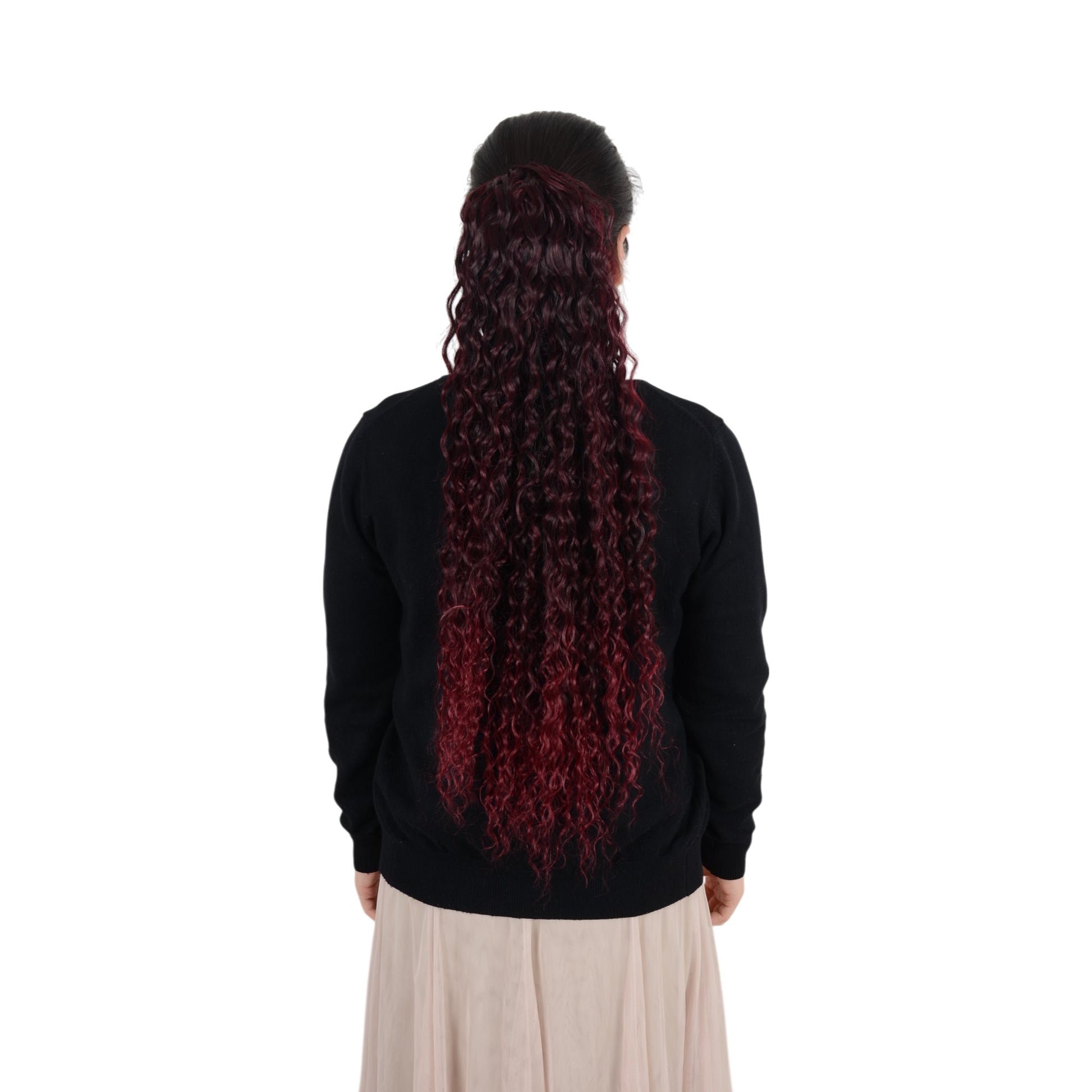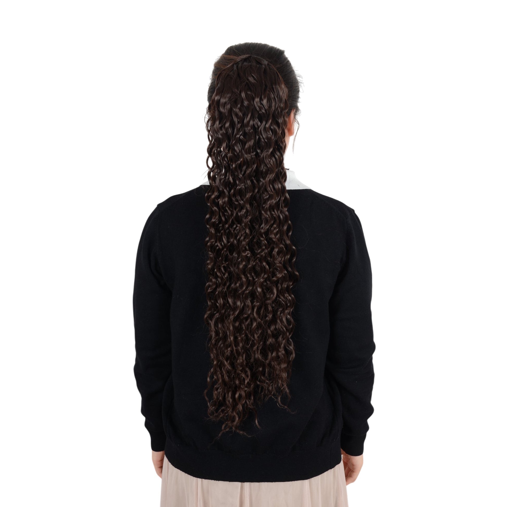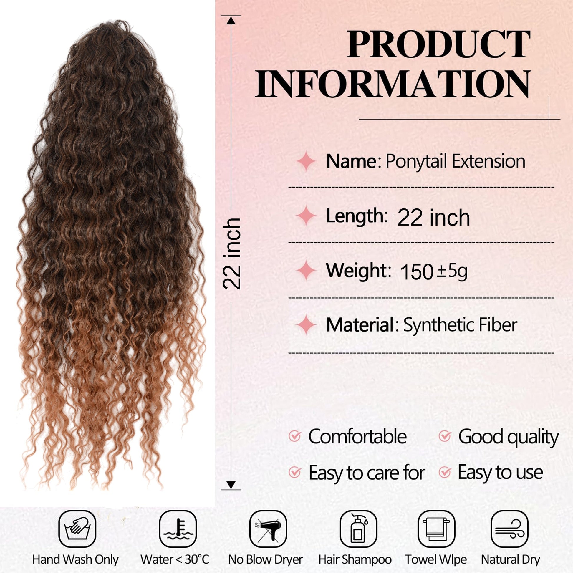 The 22-inch long curly drawstring ponytail extension offers a lightweight and natural look with cascading curls, crafted from soft heat-resistant synthetic fibers. With an easy drawstring application and built-in clips, it ensures a secure, comfortable fit, perfect for daily wear or special occasions. This ponytail extension provides a quick solution for stylish hair without the hassle of extensive styling. Maintain its beauty with simple care steps to enhance longevity and keep curls looking fresh. keywords: 22-inch curly ponytail, drawstring ponytail extension, black wavy ponytail, synthetic hair extension, clip-in hairpiece, soft heat-resistant ponytail, lightweight ponytail extension, secure fit ponytail, easy-to-wear ponytail, daily and party hair accessory