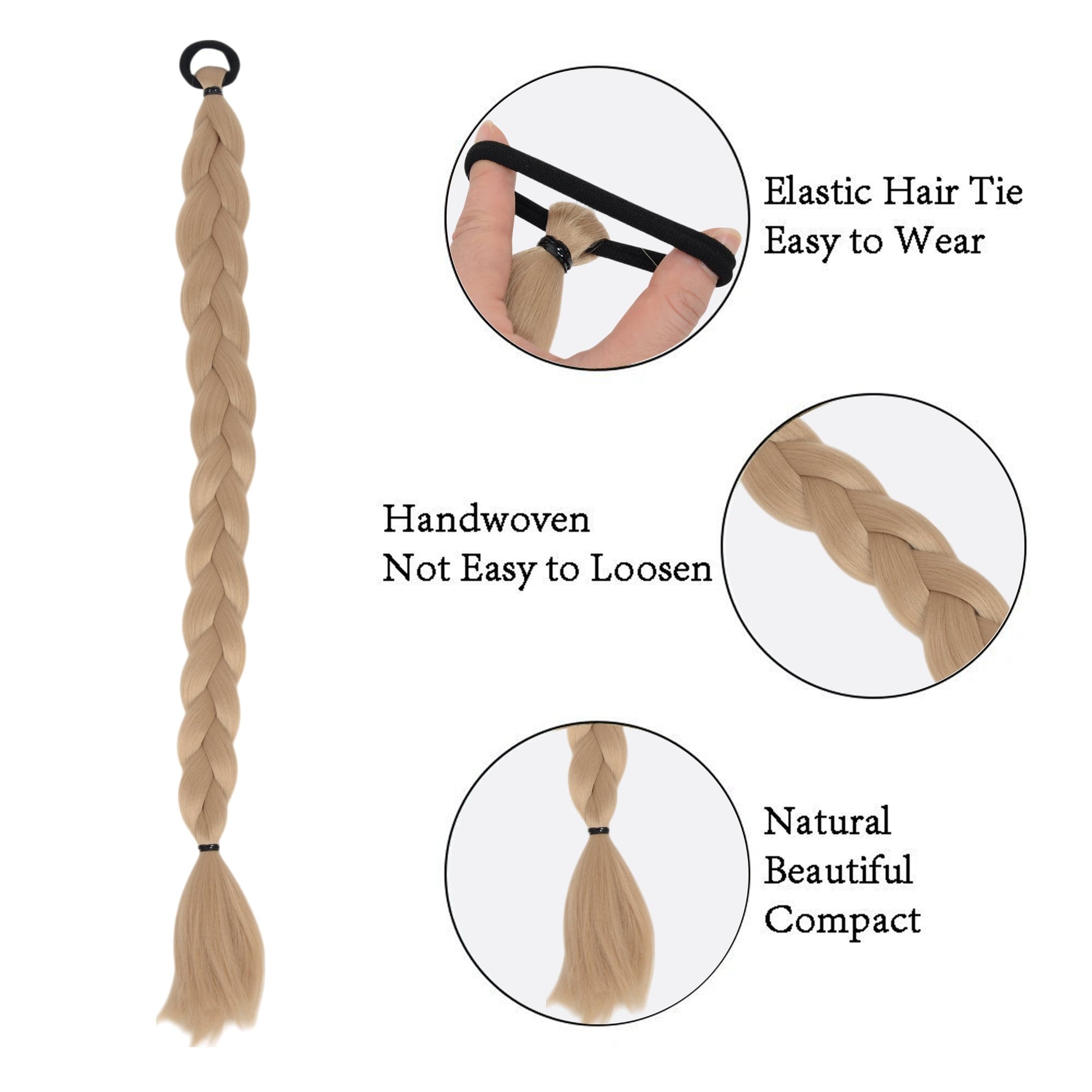 Add instant volume and elegance to your hairstyle with this 24-inch long braided hair extension. Crafted from premium synthetic fibers, this braid offers a natural look and feel while remaining lightweight and comfortable. The built-in elastic band allows for easy attachment, making it perfect for quick styling. This braid extension is a great addition for daily wear, parties, or special occasions. keywords: ponytail extension/ ponytail extensions for women/ braiding hair/ braided ponytail extension