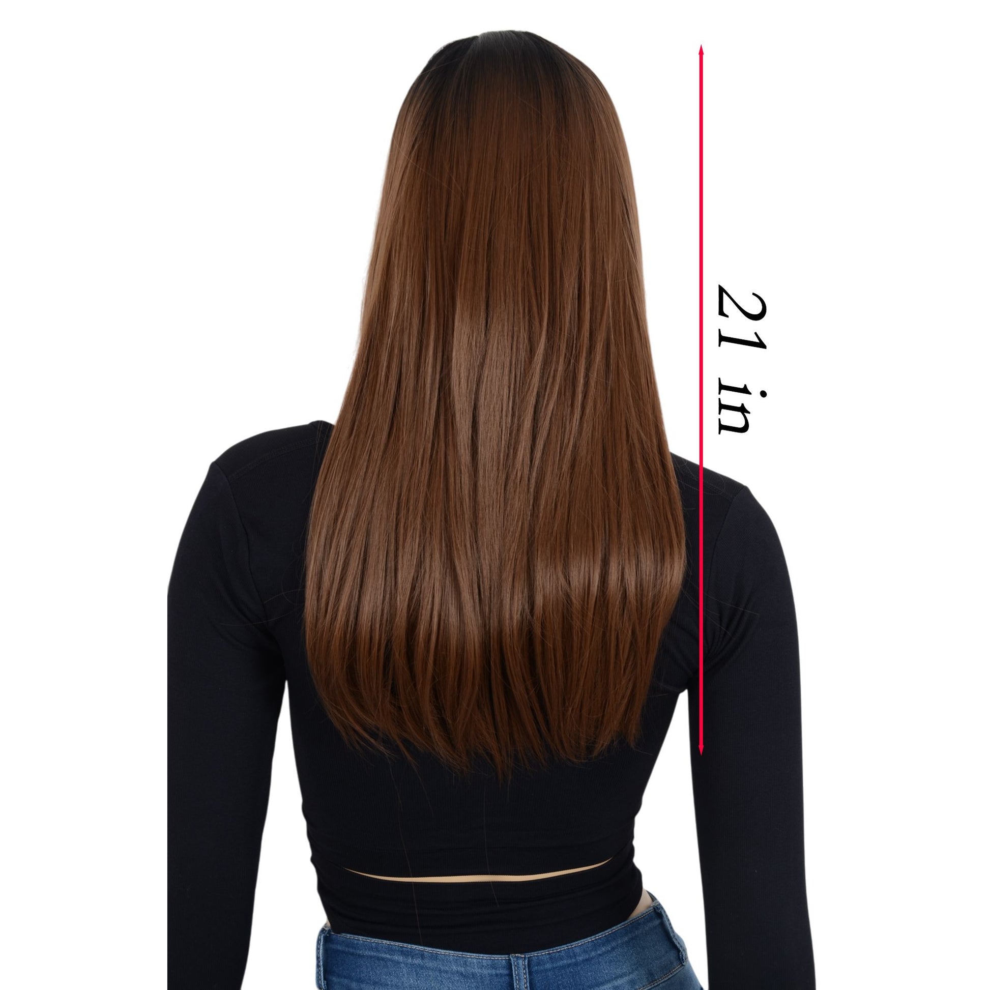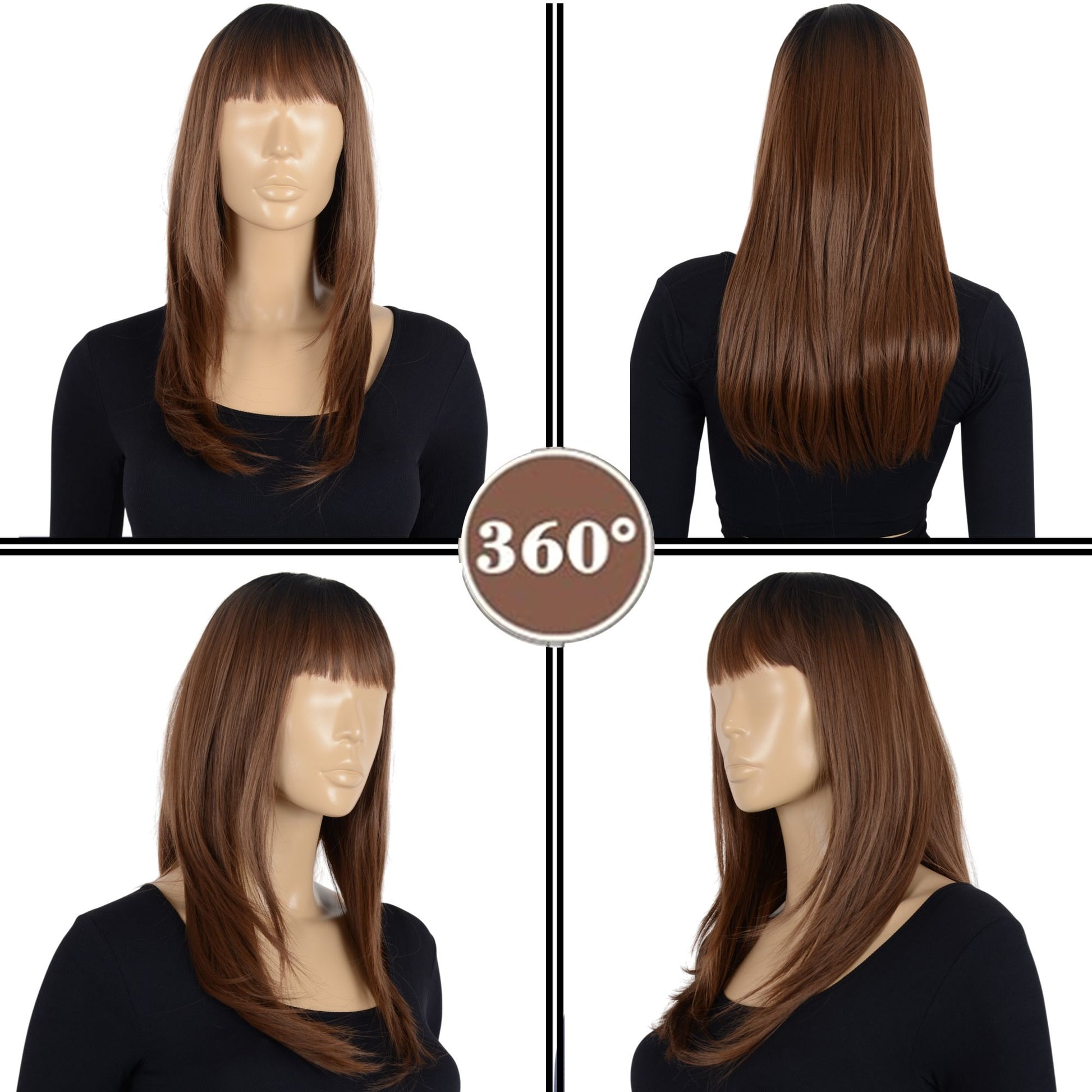 Long Straight Wig with Bangs Heat-Resistant Synthetic Hair Adjustable Cap