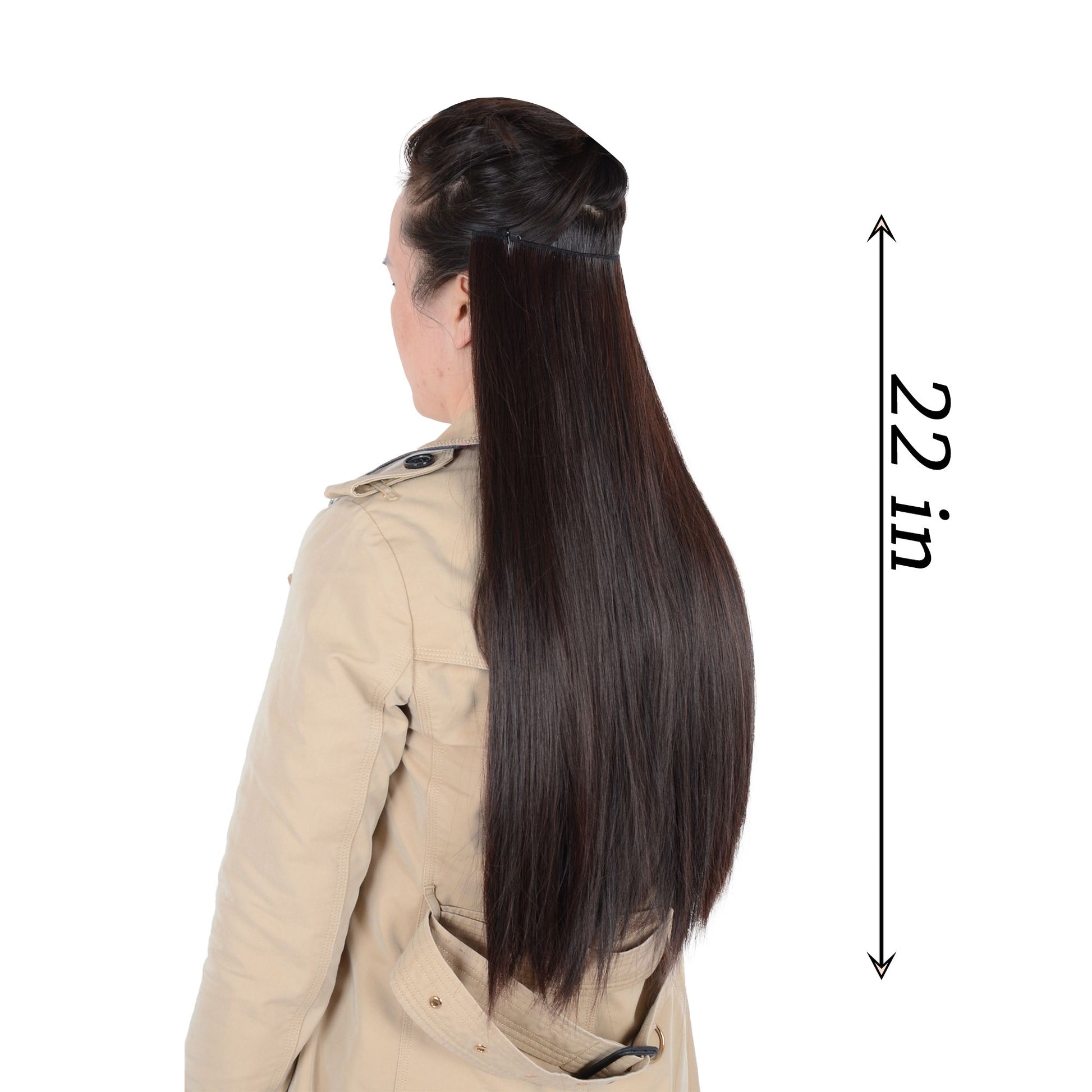 This 22-inch invisible wire hair extension is designed for easy application and a natural look. The lightweight Swiss rose net offers exceptional comfort and breathability, while the adjustable wire ensures a perfect fit for all head sizes. Blending seamlessly with your natural hair, this extension creates a voluminous, flawless finish in minutes. Perfect for any occasion, it's an effortless way to enhance your hairstyle with long, silky, and realistic locks.