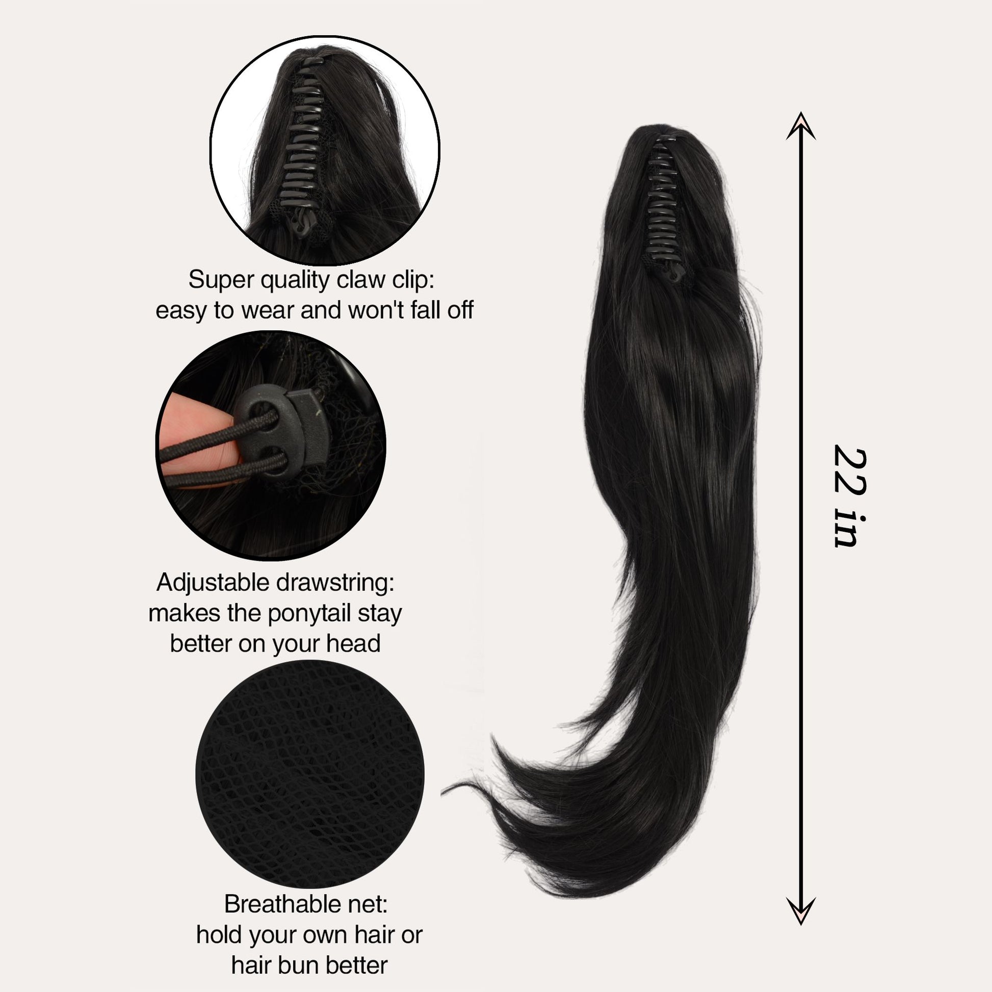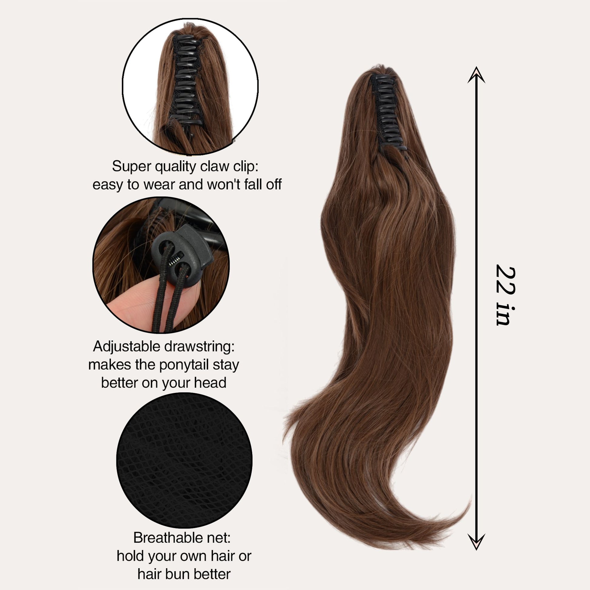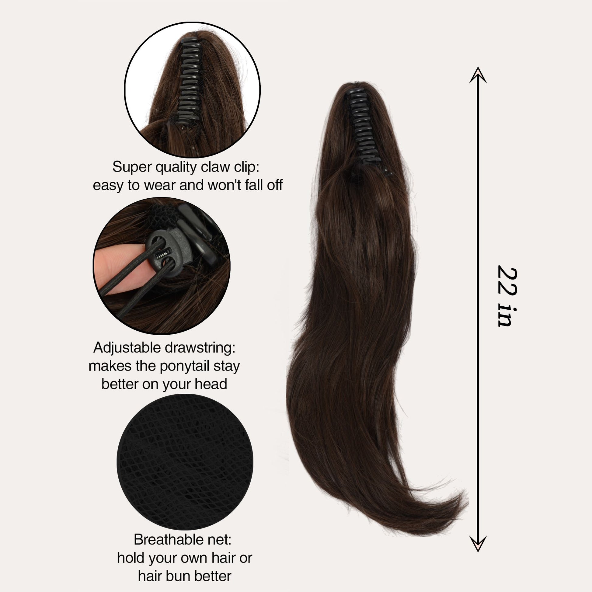 22-Inch Layered Claw Clip Ponytail Extension with Adjustable Drawstring and Breathable Net