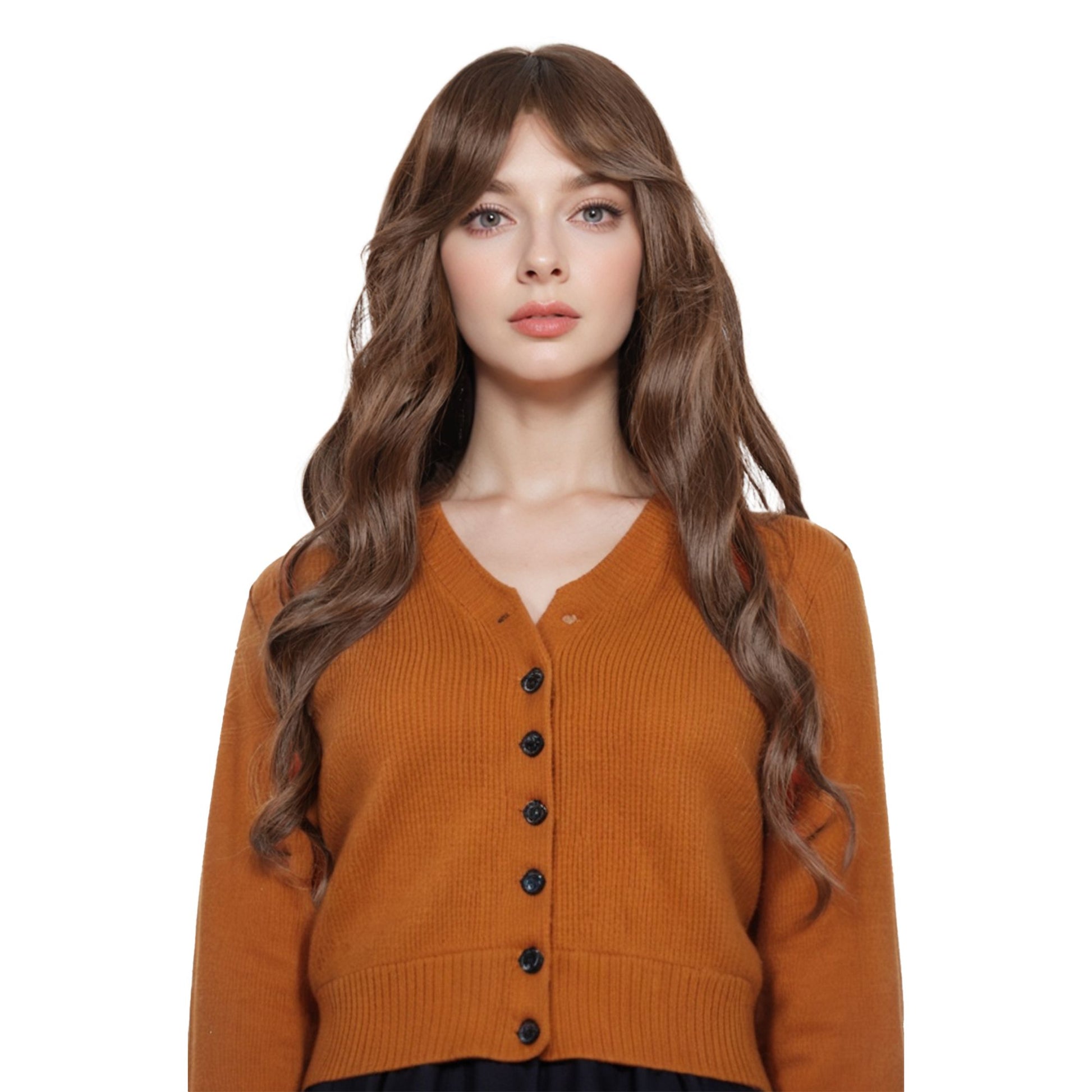 This long wavy hair wig for women is crafted from high-quality, heat-resistant synthetic fibers for a soft, natural look. The stylish bangs add a touch of elegance, making the wig perfect for daily wear or special occasions. Designed with a breathable cap, it ensures a comfortable fit for most head sizes. Lightweight and easy to style, this wig offers a versatile solution for transforming your hairstyle effortlessly.