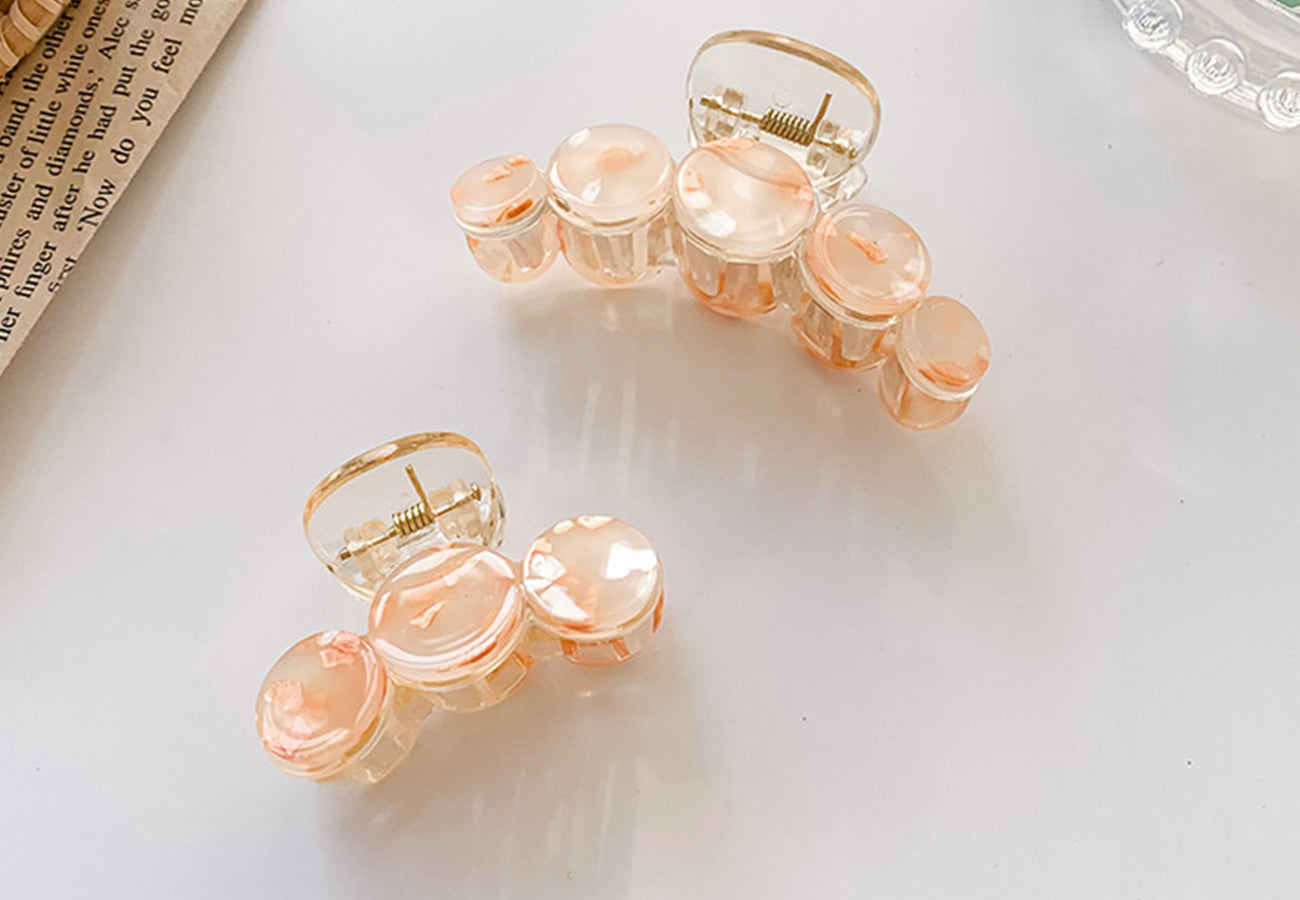 The hair claw is detailed with a beautiful speckle design. Features a circle row detail and curved shape.
