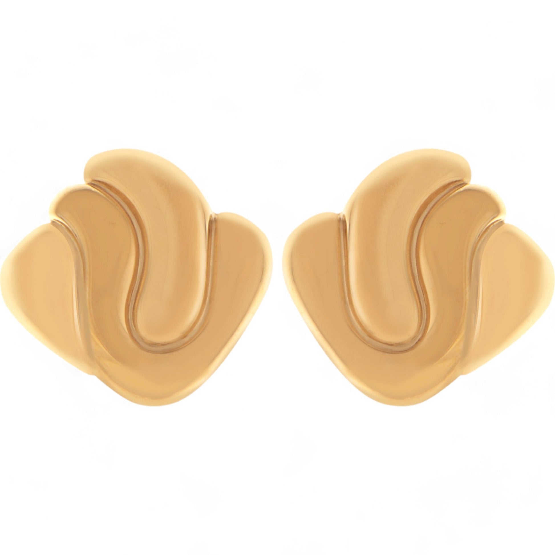 Gold Tone Sculptural Swirl Stud Earrings Bold Modern Design