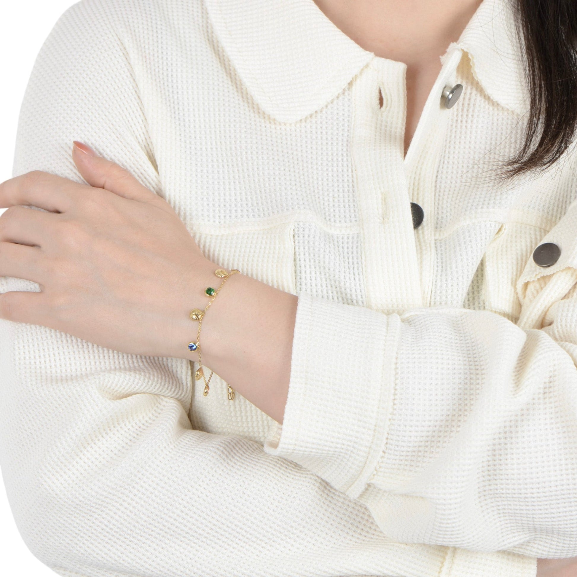This delicate Gold Tone Shell and Crystal Charm Anklet features charming shell accents and vibrant crystal charms in a rainbow of colors, perfect for adding a playful touch to your summer wardrobe. The adjustable chain ensures a comfortable and secure fit, making it ideal for any ankle size. Whether you're at the beach or enjoying a day out, this anklet adds a touch of whimsy and style to any outfit, making it the perfect accessory for sunny days and casual outings.
