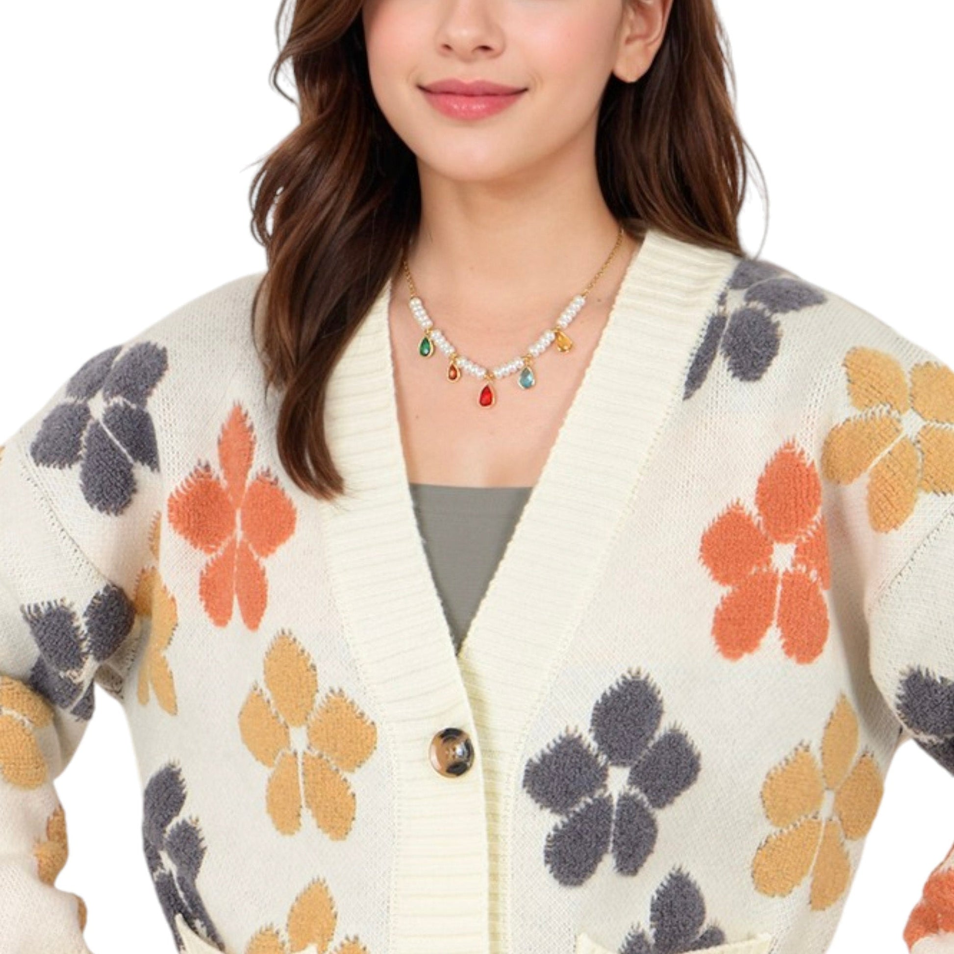 Add a playful touch to your accessory collection with this Pearl Beaded Necklace featuring vibrant teardrop crystal charms. The delicate pearls are beautifully contrasted by the colorful crystals, creating a whimsical yet elegant piece. Perfect for brightening up casual outfits or adding a pop of color to dressier looks, this necklace offers a versatile and eye-catching design. Ideal for layering or wearing solo as a statement piece, it brings a fun yet sophisticated flair to any ensemble.