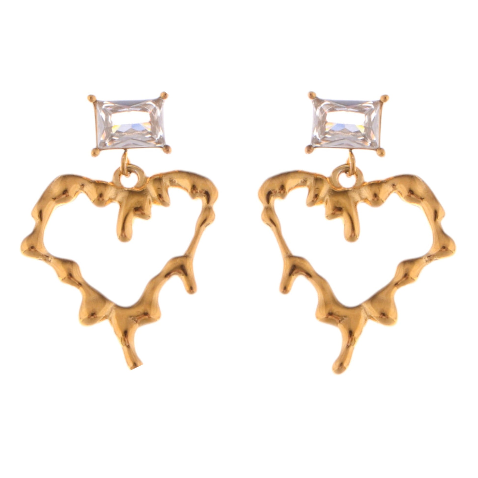 Add a touch of elegance to your look with these Gold-Plated Heart Drop Earrings, featuring a beautifully abstract heart shape and a sparkling crystal stud. The unique dripping design offers a modern twist on classic heart jewelry, making these earrings perfect for both everyday wear and special occasions. Light yet eye-catching, they provide the perfect statement accessory to elevate any outfit. Ideal for gifting or adding a chic element to your own jewelry collection.