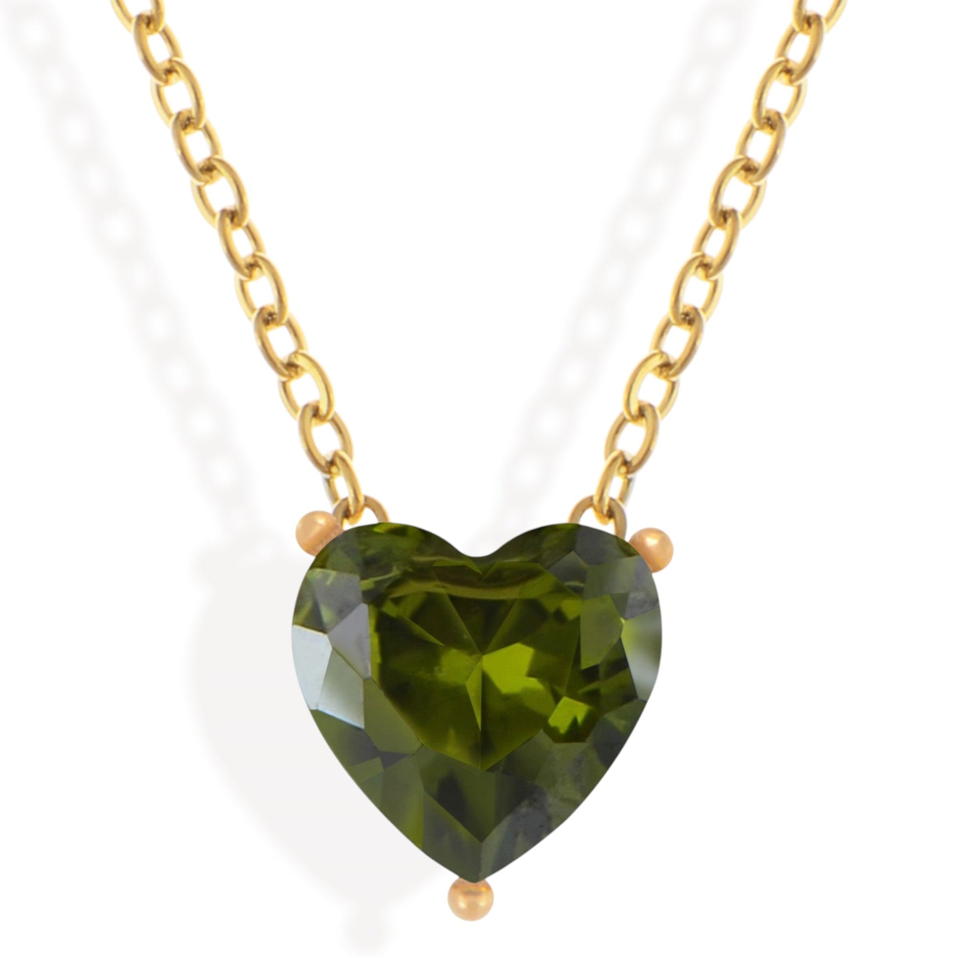 Gold Tone Necklace with Heart-Shaped Crystal Pendant