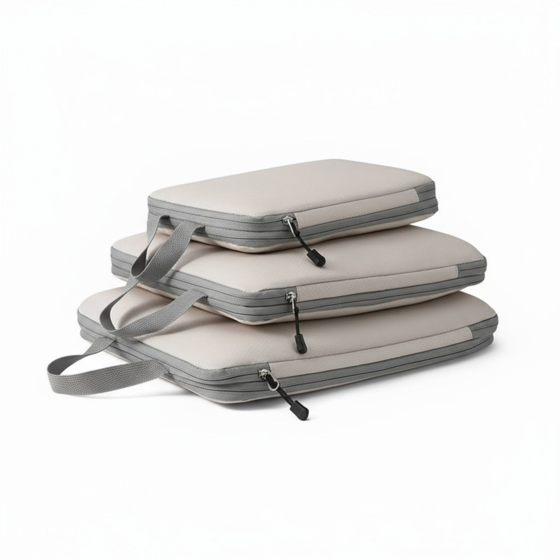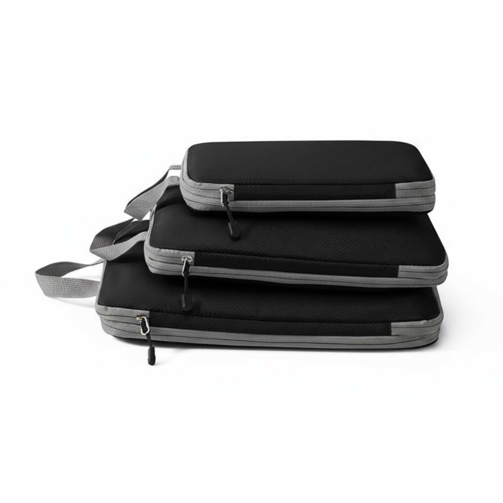 3-Piece Compression Packing Cube Set with Zipper Closure and Carry Handles