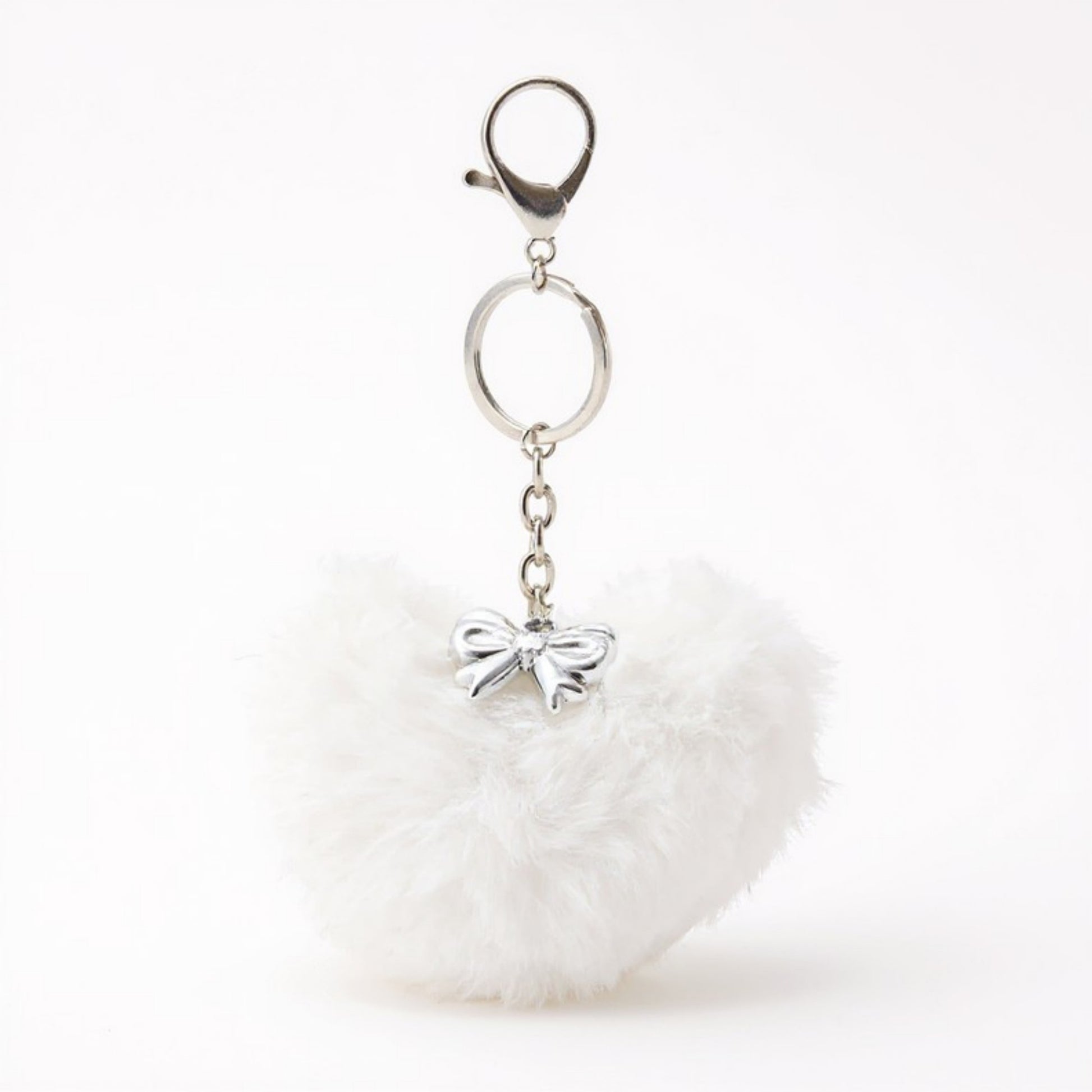 Plush Heart Keychain with Bow Detail and Metal Clip