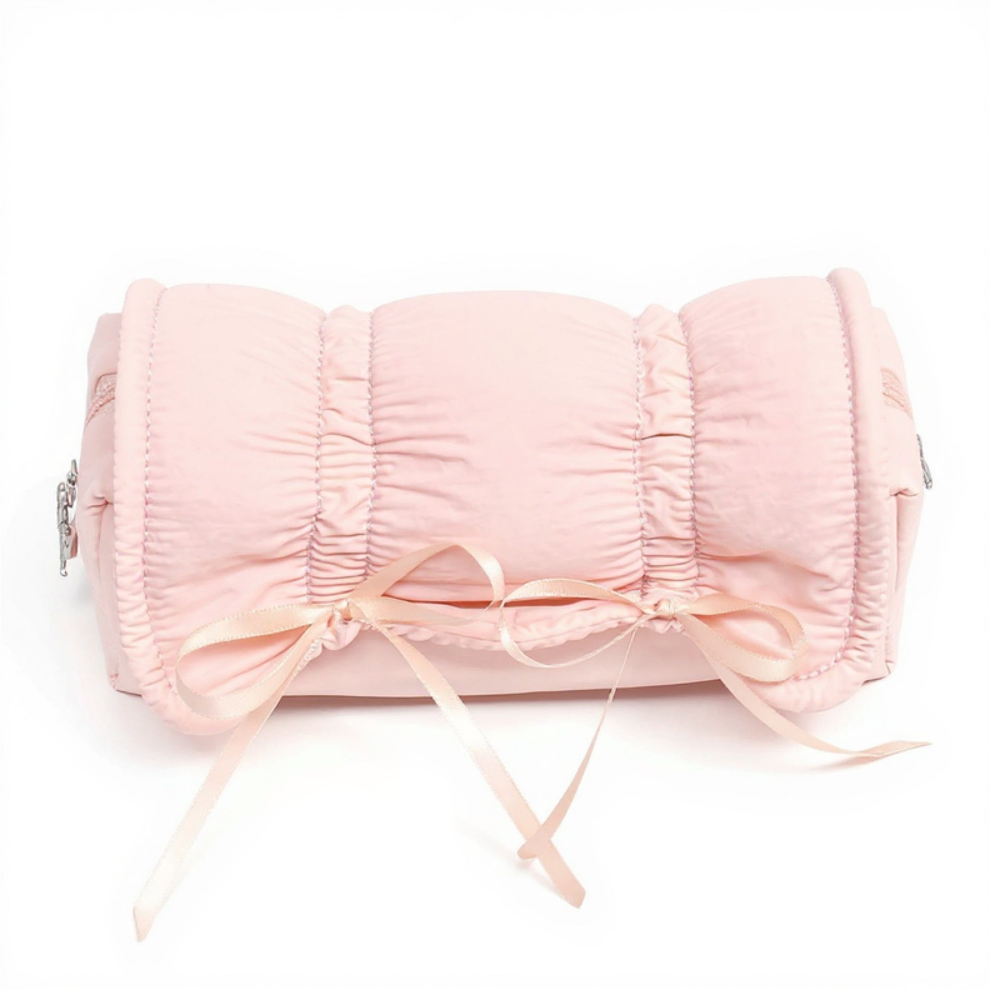 The Anna-Kaci Quilted Satin Ribbon Pencil Case with Zipper Closure and Large Storage Capacity offers an elegant yet practical solution for everyday organization. Designed with a soft quilted satin exterior and charming ribbon bows, this case exudes a refined and feminine touch. Its roomy interior easily fits pens, markers, and small essentials, secured with a smooth zipper and magnetic snap closure. Perfect for students, artists, or professionals, this pencil case blends style and function beautifully.