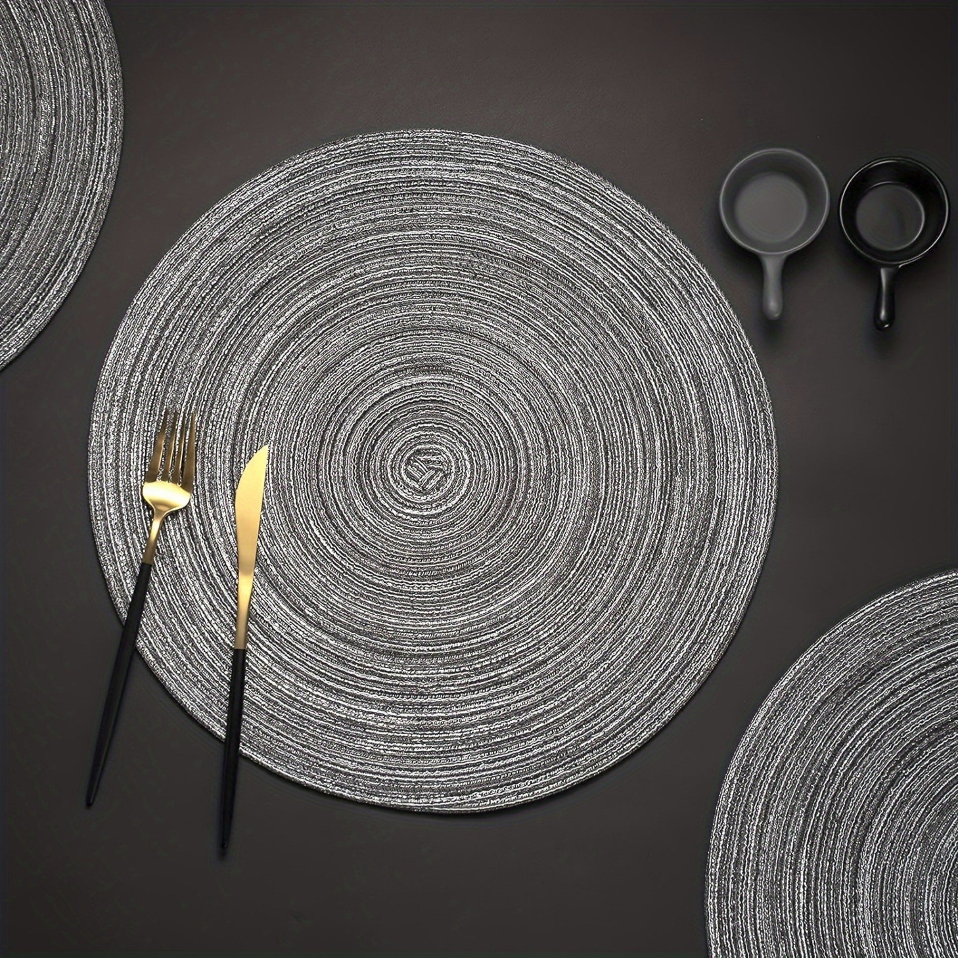 4-Piece Round Braided Woven Placemat with Textured Spiral Pattern for Dining Table
