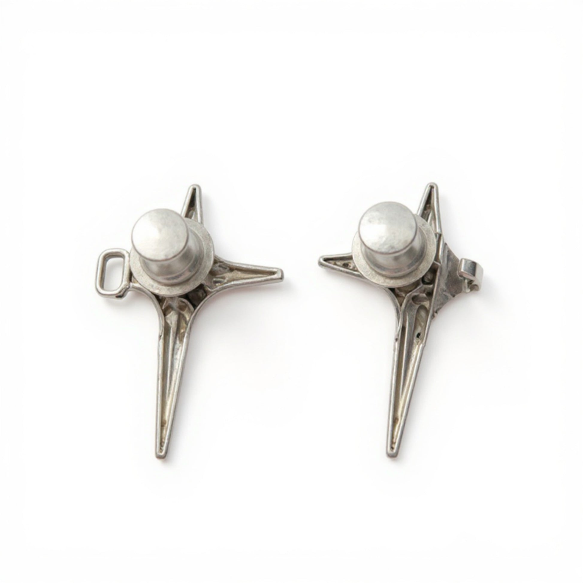 This Anna-Kaci 3-piece pant buckle extender set features sleek star-shaped metal spikes that bring a bold, modern look to denim while offering added waist flexibility. Each extender attaches easily to the existing button area to create subtle extra waistroom without altering the pants. Crafted from durable metal with sharp sculptural detailing, the set provides a lightweight, stylish way to personalize and enhance the fit of everyday jeans.