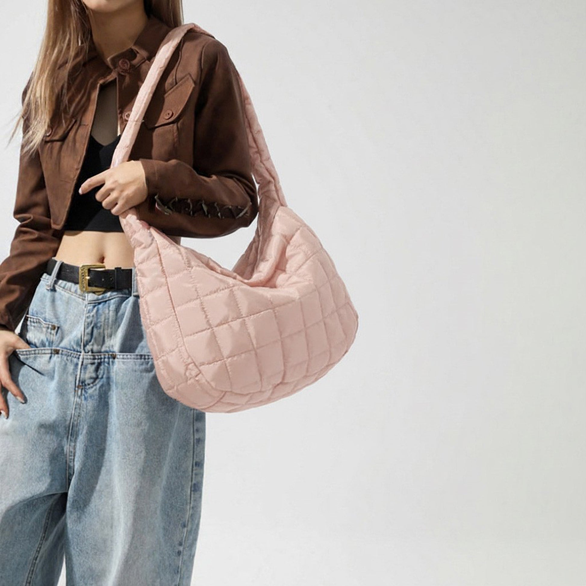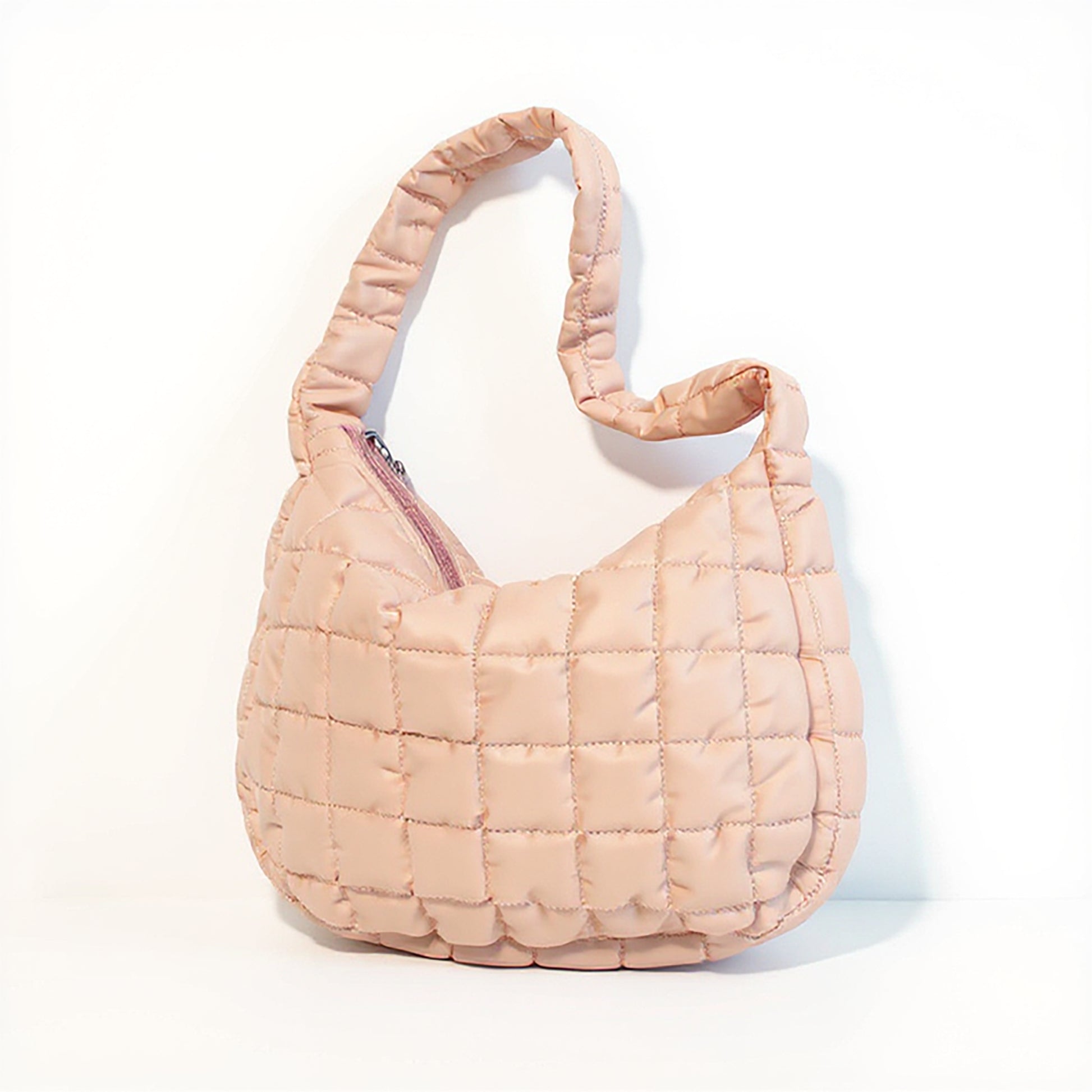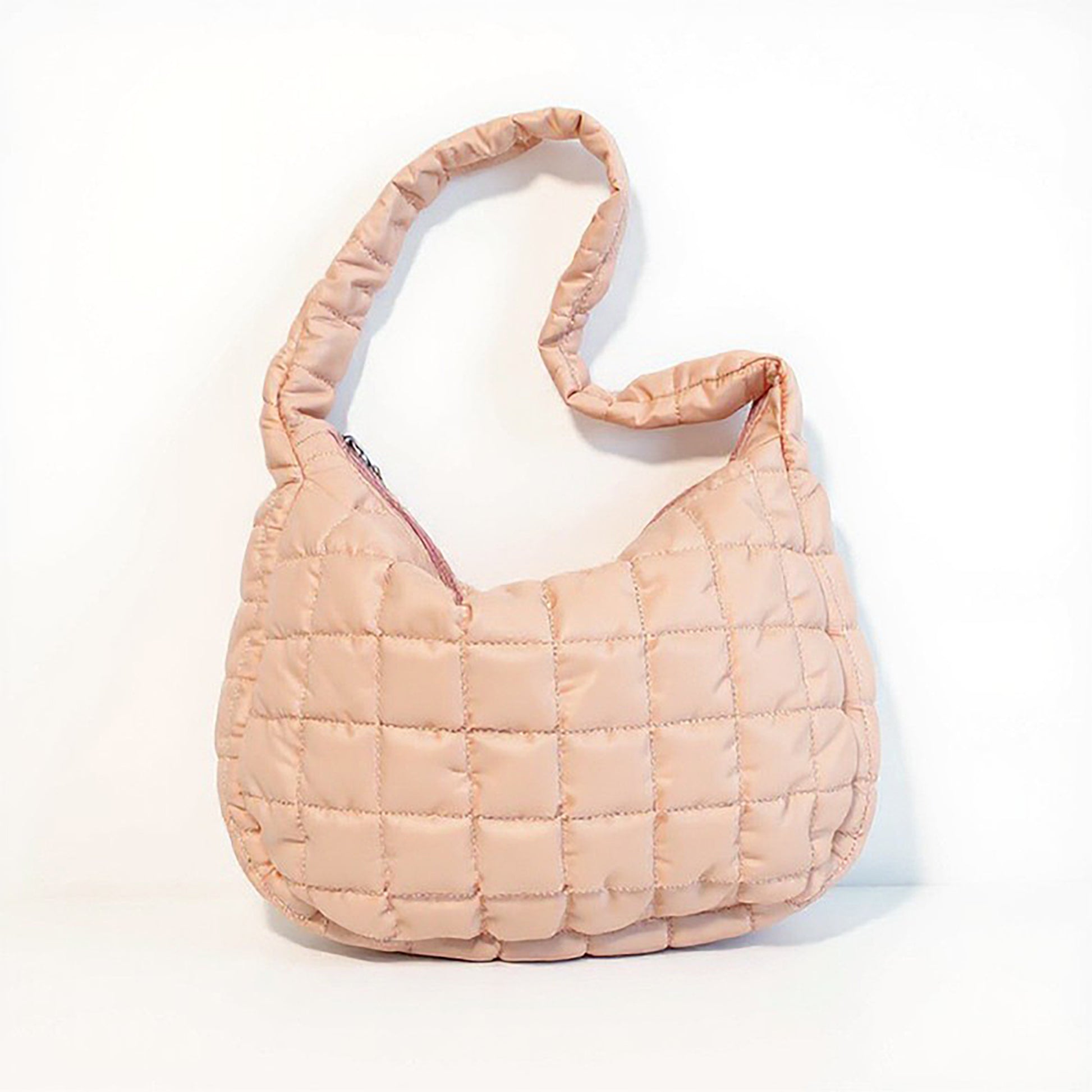 Women's Quilted Shoulder Bag with Padded Handle and Zip Top Closure