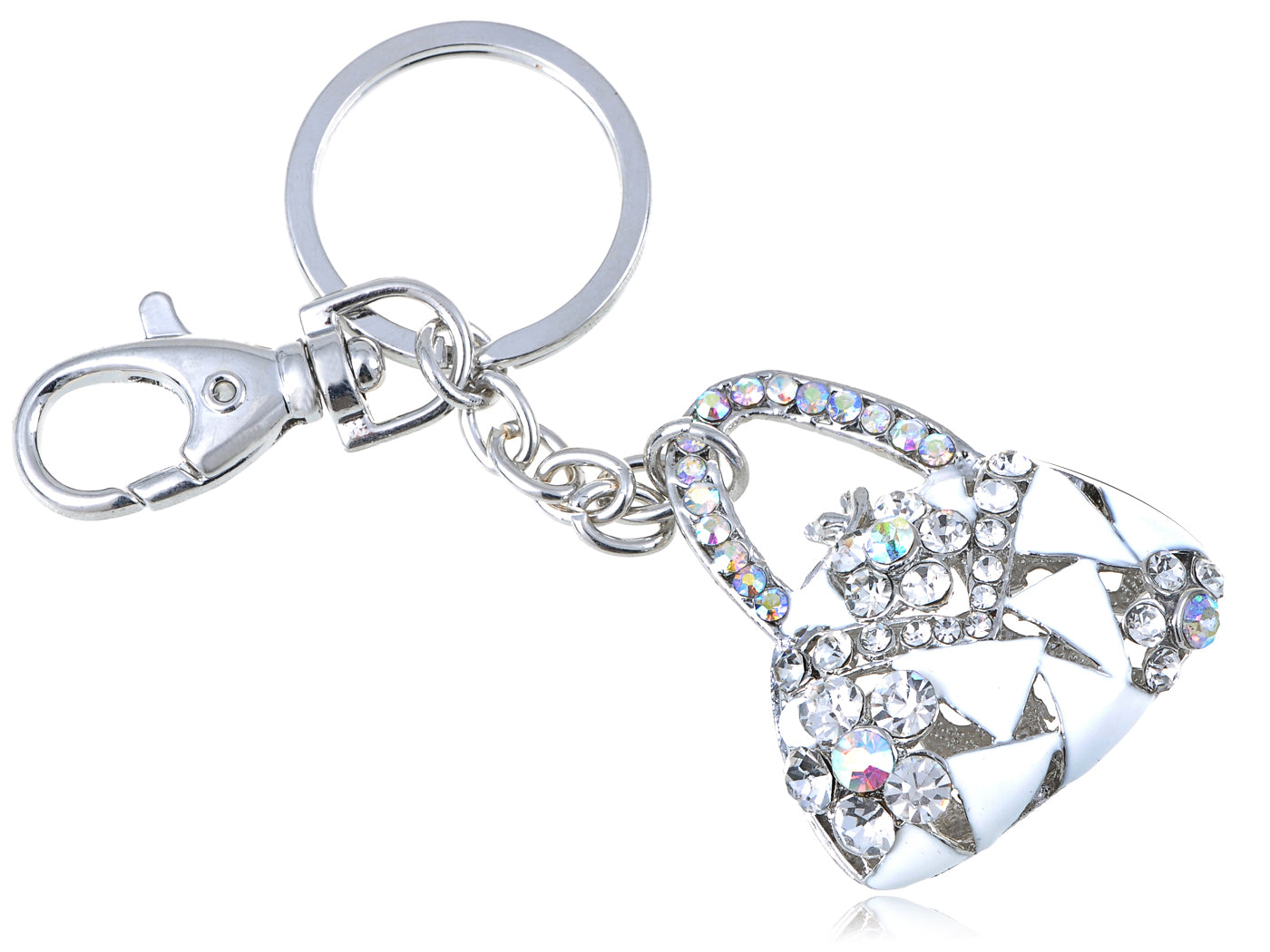 • UNIQUE DESIGN - Keychain featuring purse design with clear colored rhinestones, painted enamel, key ring, and lobster claw clip.