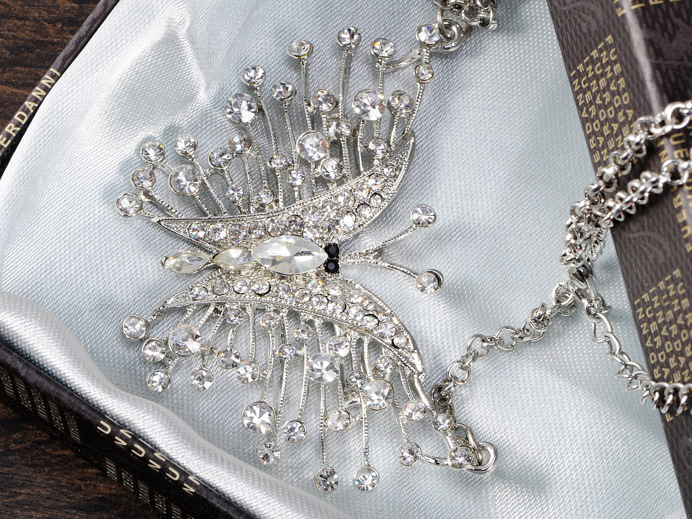 • UNIQUE DESIGN - Chain necklace featuring butterfly charm with multicolored rhinestones.