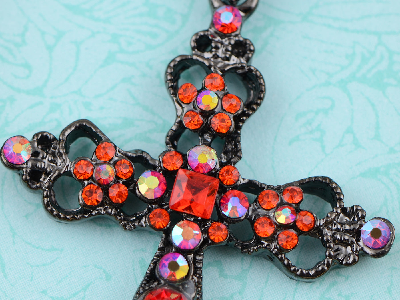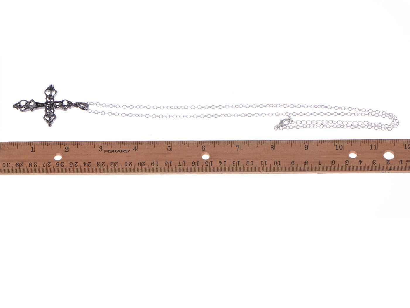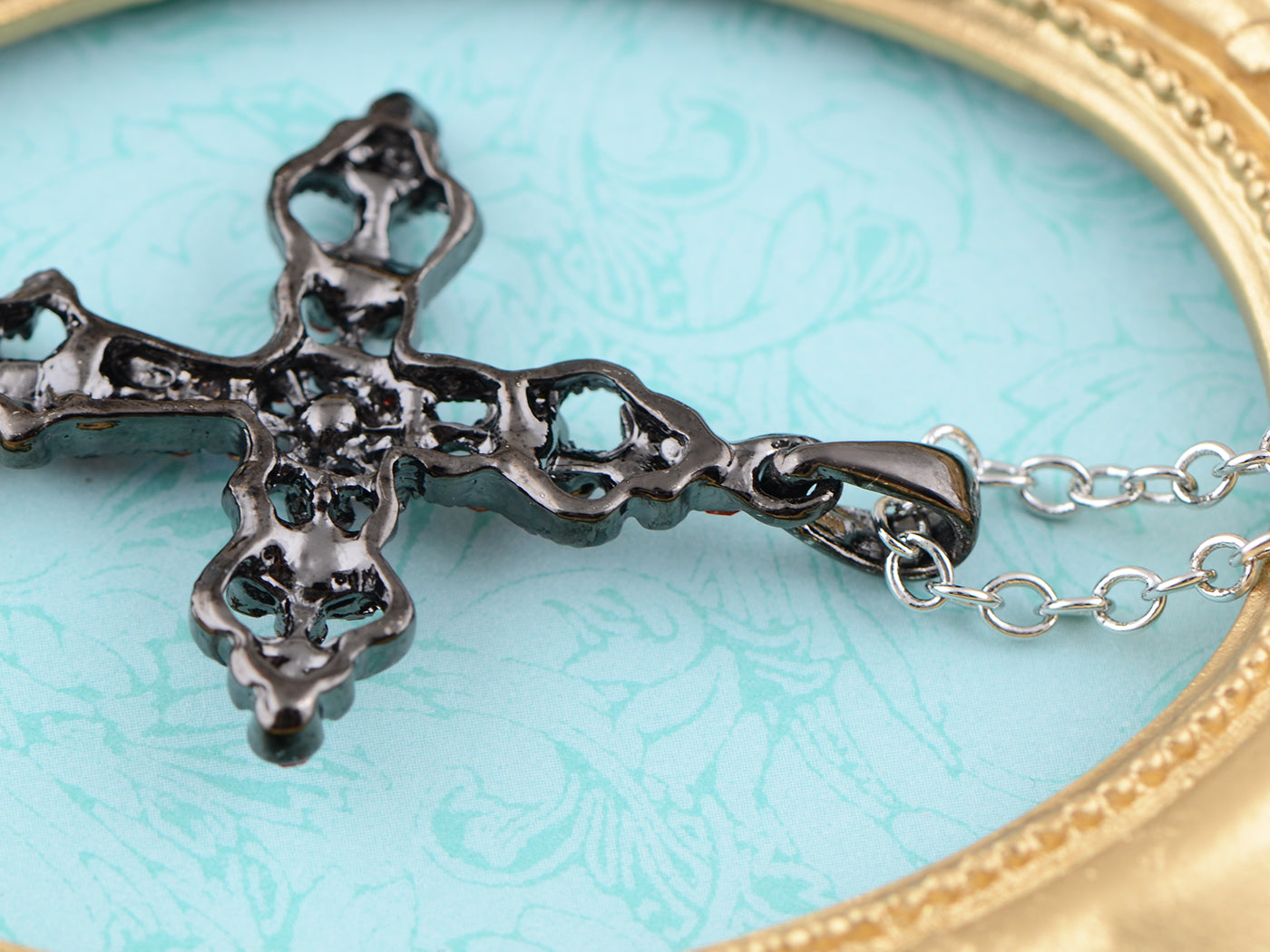 • UNIQUE DESIGN - Cable chain necklace with clear crystal colored rhinestones and ornate cross pendant.