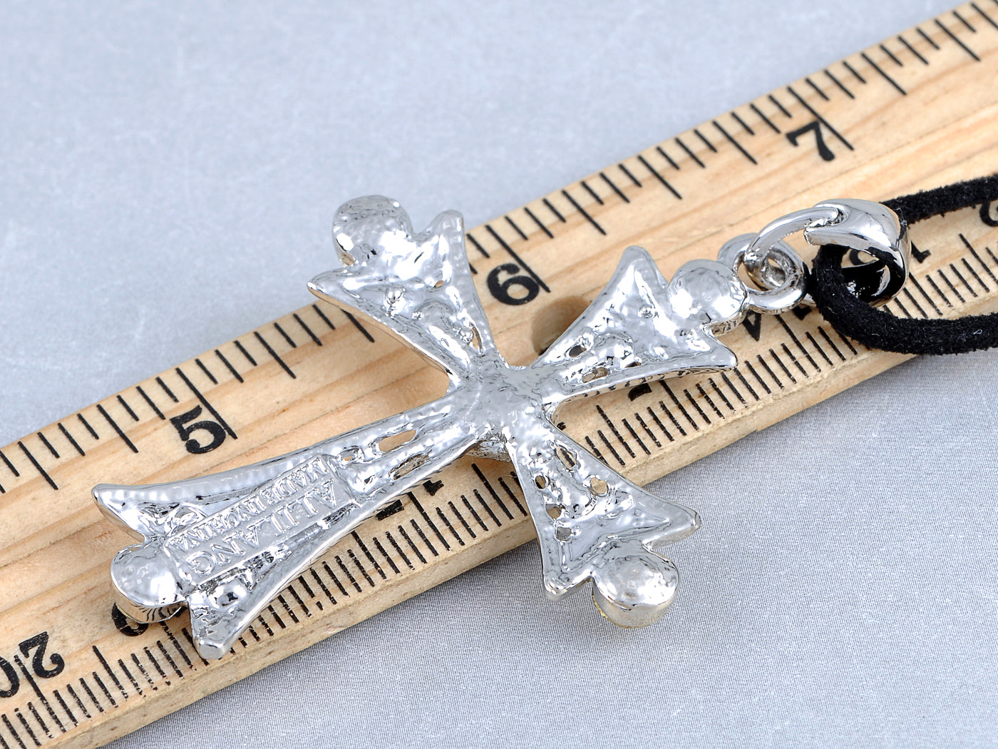 Gun Smokey Detail Cross Pendant Necklace