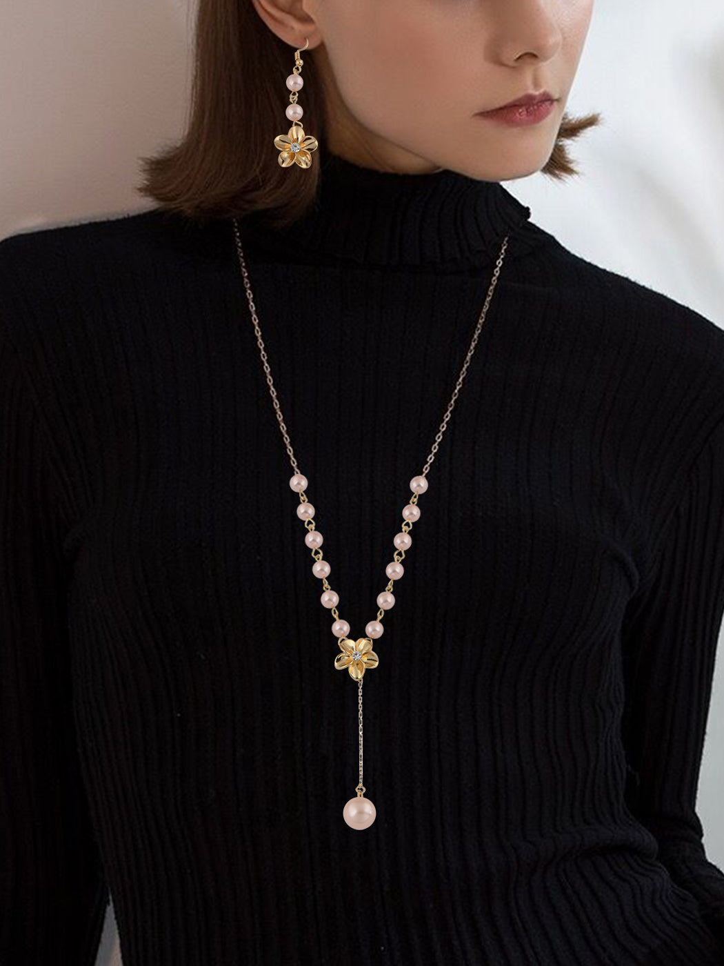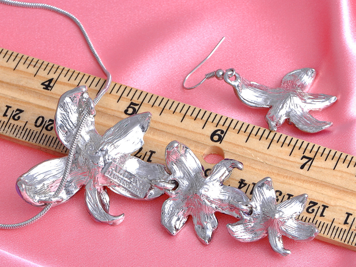 - UNIQUE DESIGN - Cascade chain necklace and dangle earrings set featuring flower design with pink colored rhinestones and painted enamel.