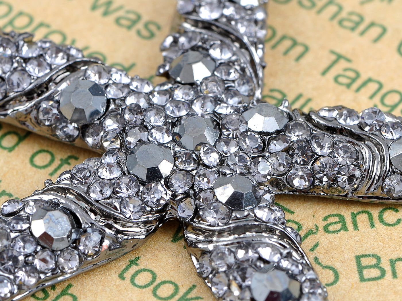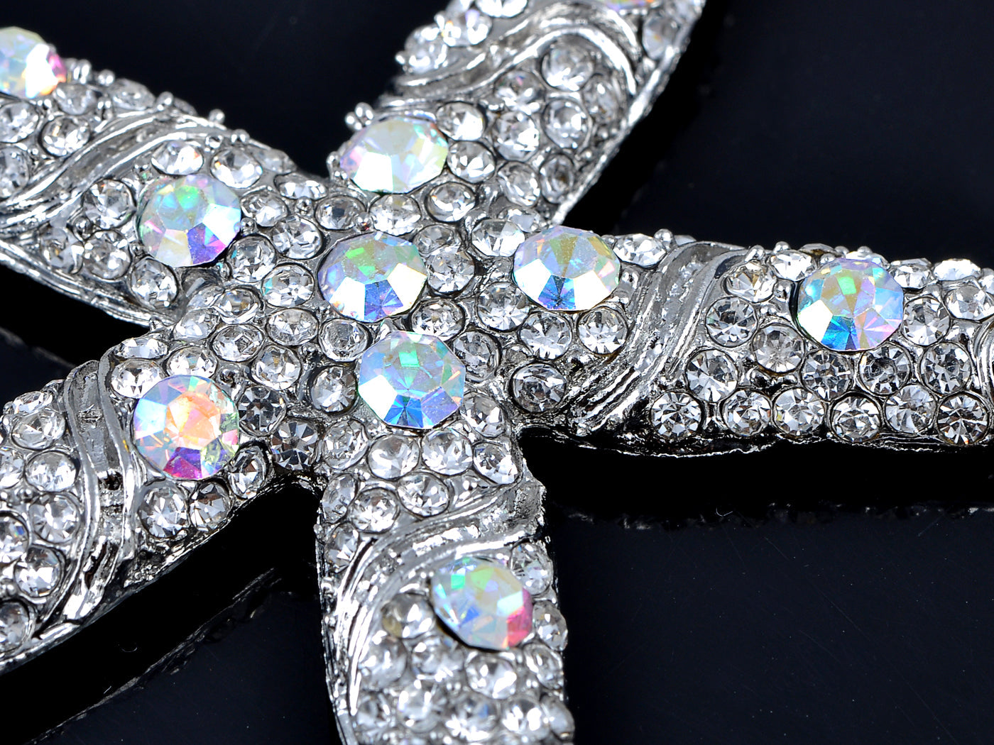 - OCEANIC DESIGN - This silver toned alloy necklace features a dangling rhinestone encrusted starfish! Pendant is in the shape of the peaceful star shaped sea creature and adorned with all over sparkly crystal clear rhinestones and a smattering of aurora borealis stones for extra shimmer.