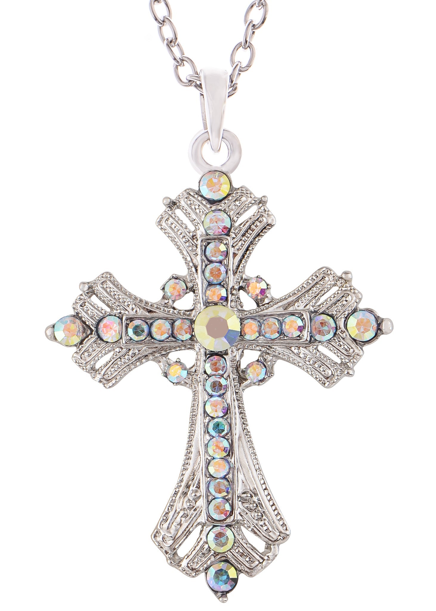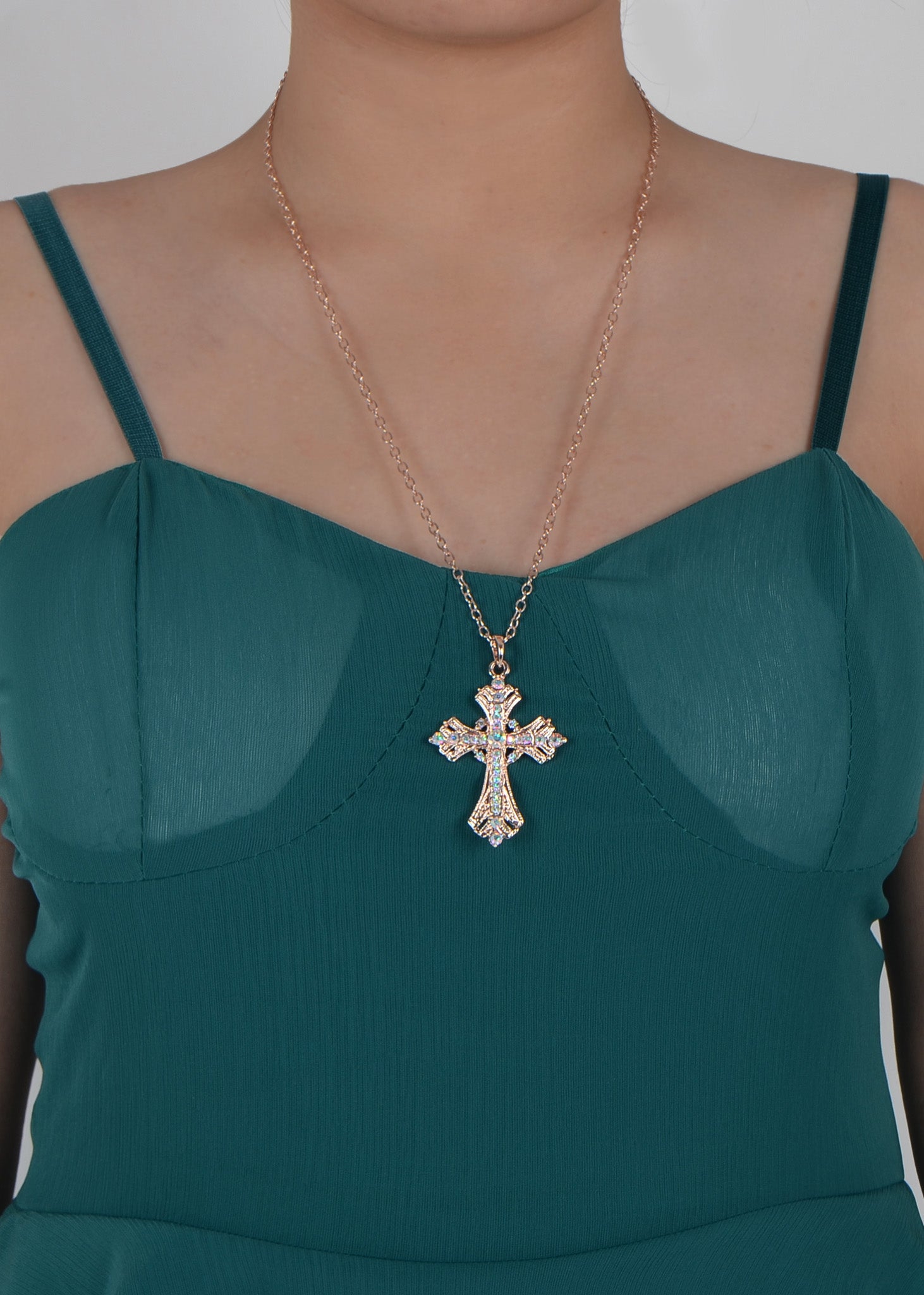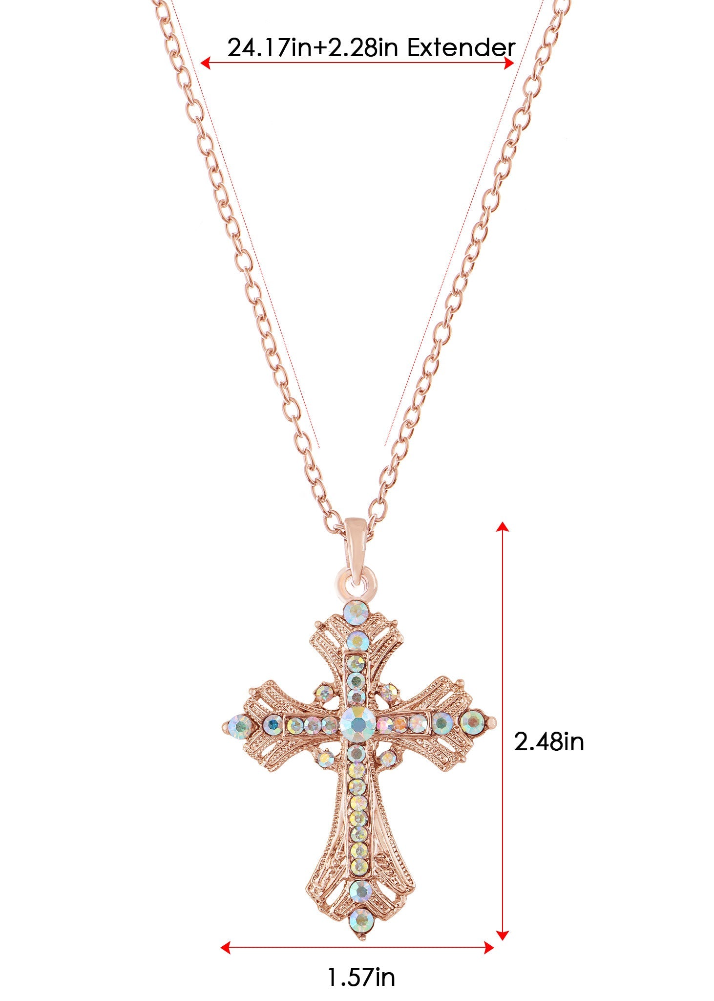 - UNIQUE DESIGN: A cable chain necklace enriched with blearclear crystal rhinestones on an ornate cross pendant.
