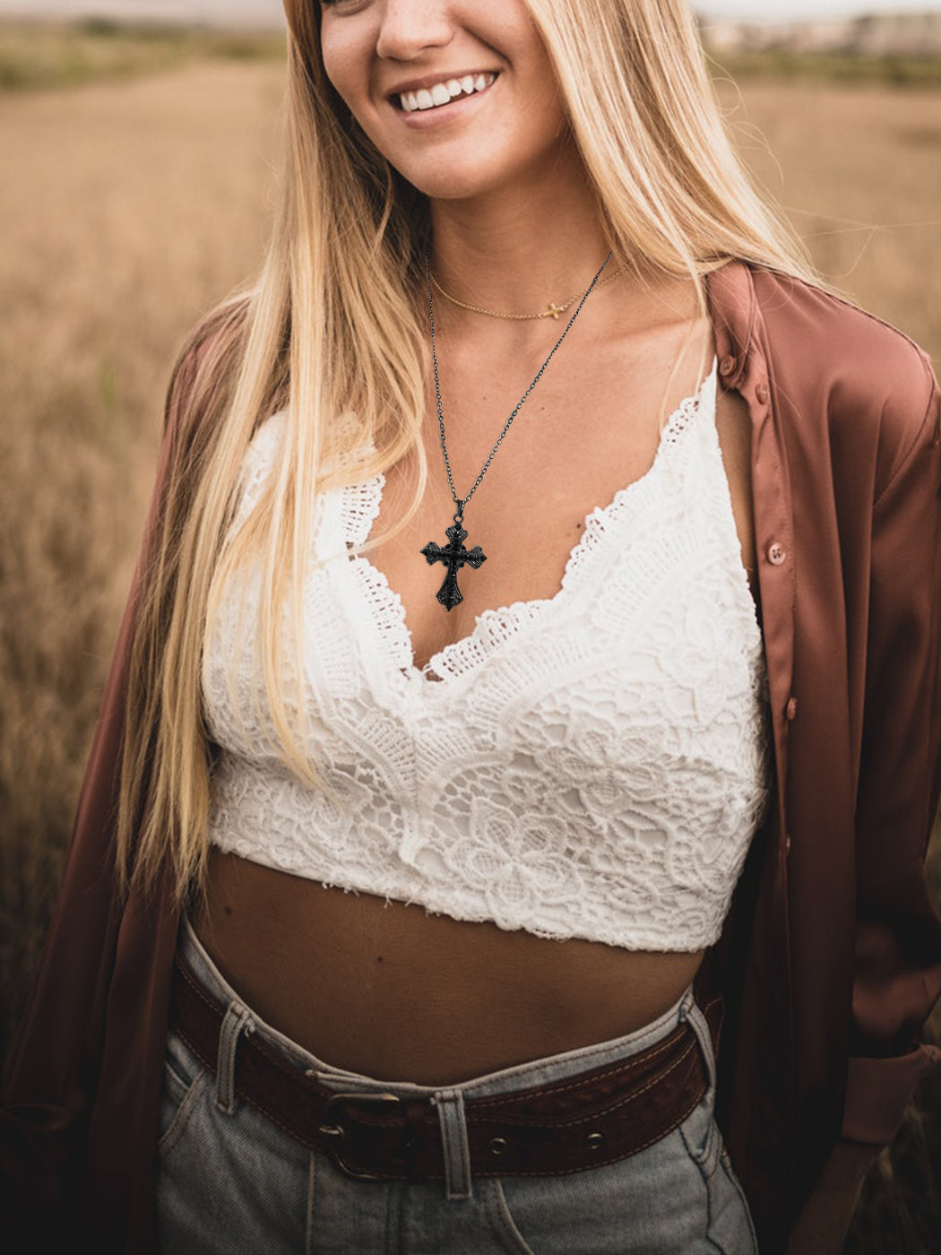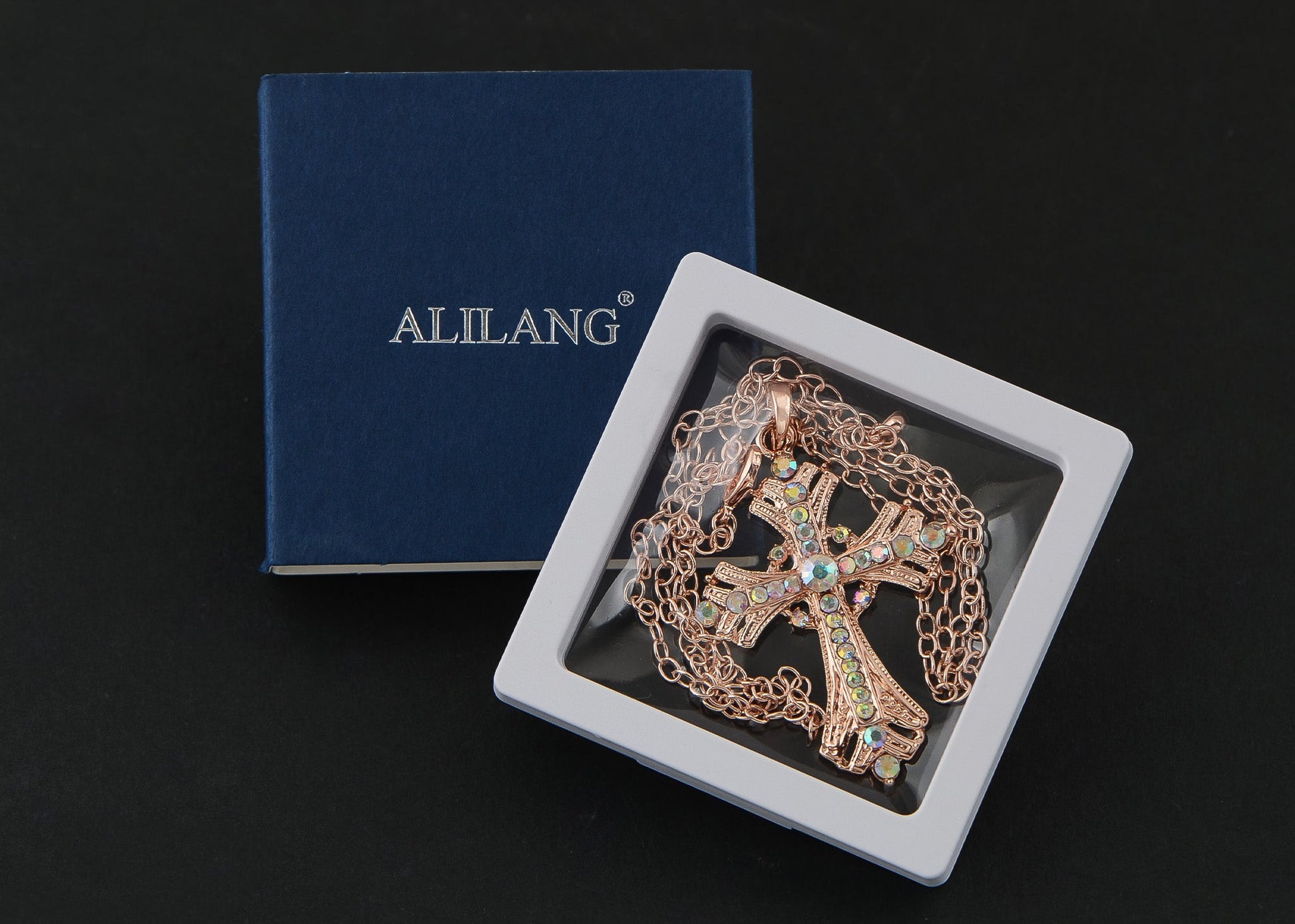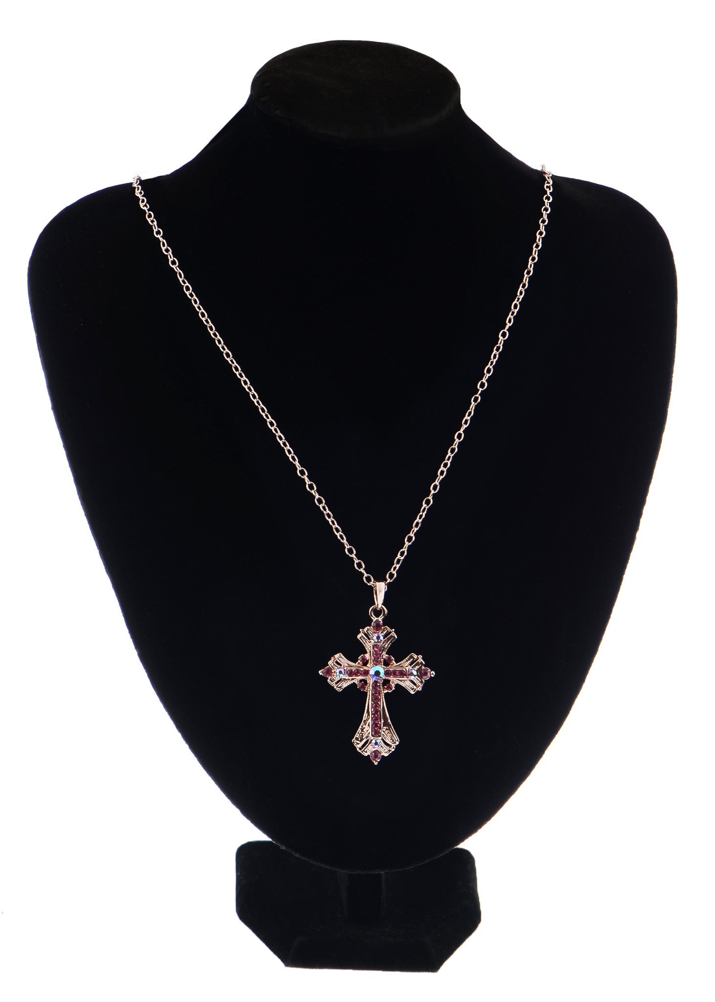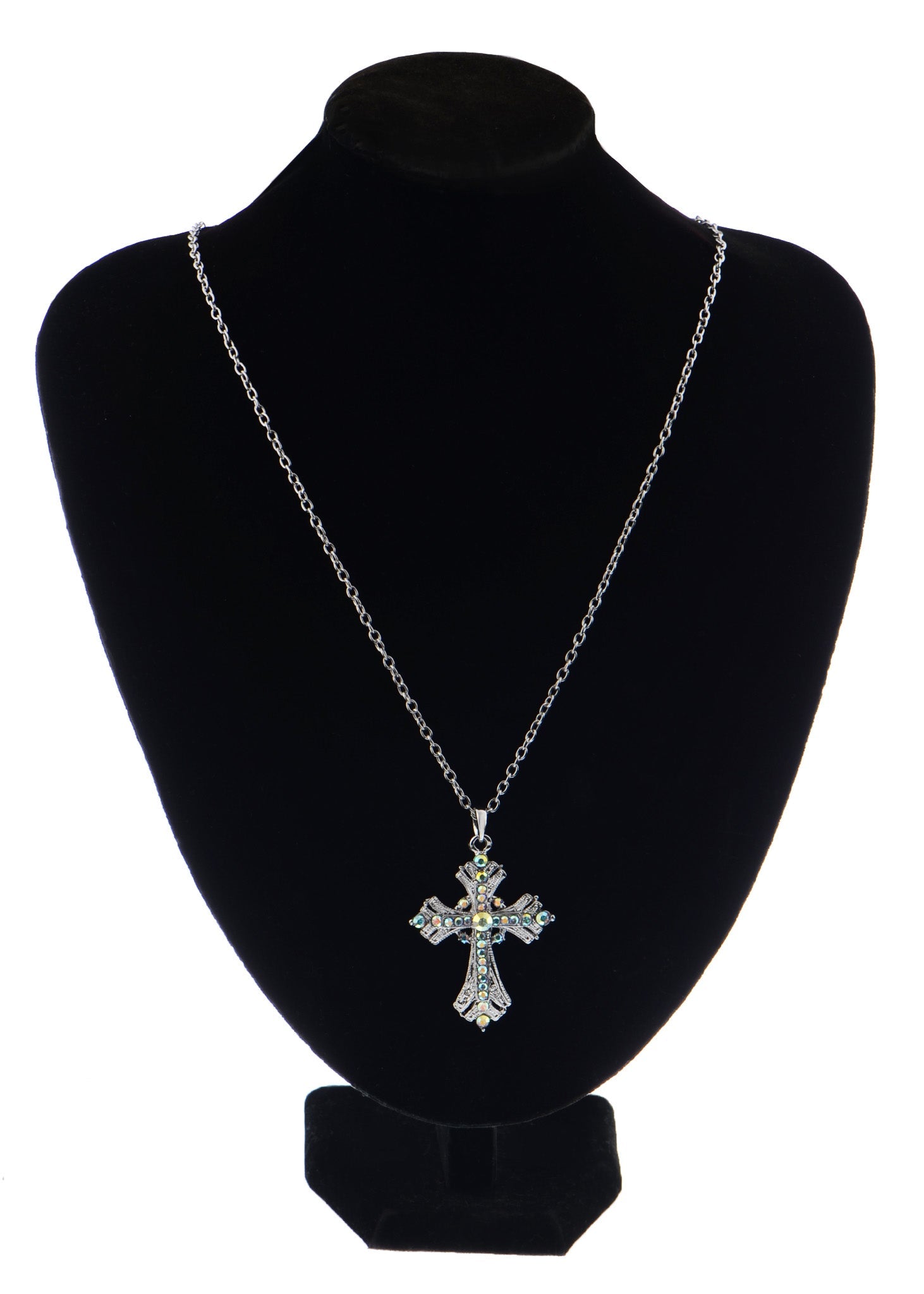 - UNIQUE DESIGN: A cable chain necklace enriched with blearclear crystal rhinestones on an ornate cross pendant.
