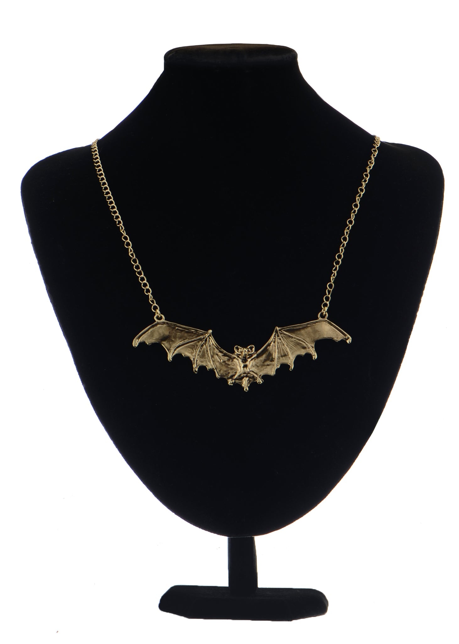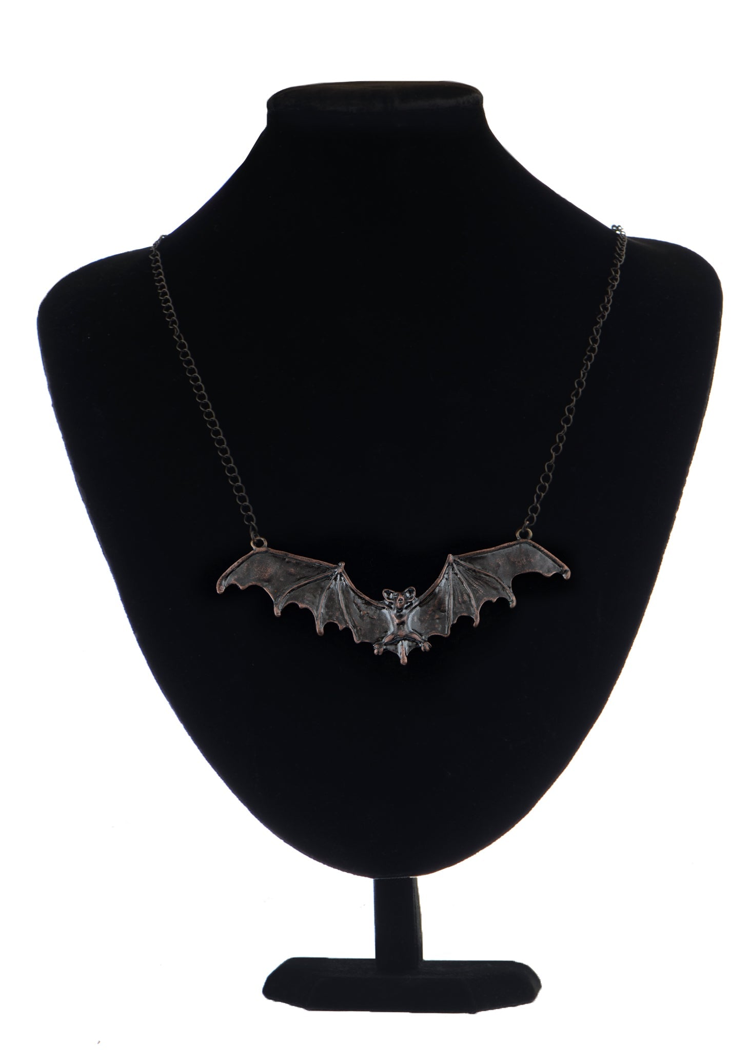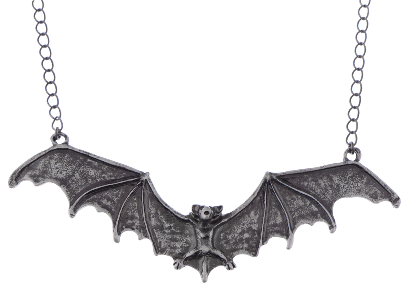- UNIQUE DESIGN - Necklace featuring frightening Halloween flying bat design with black enamel paint and alloy metal.
