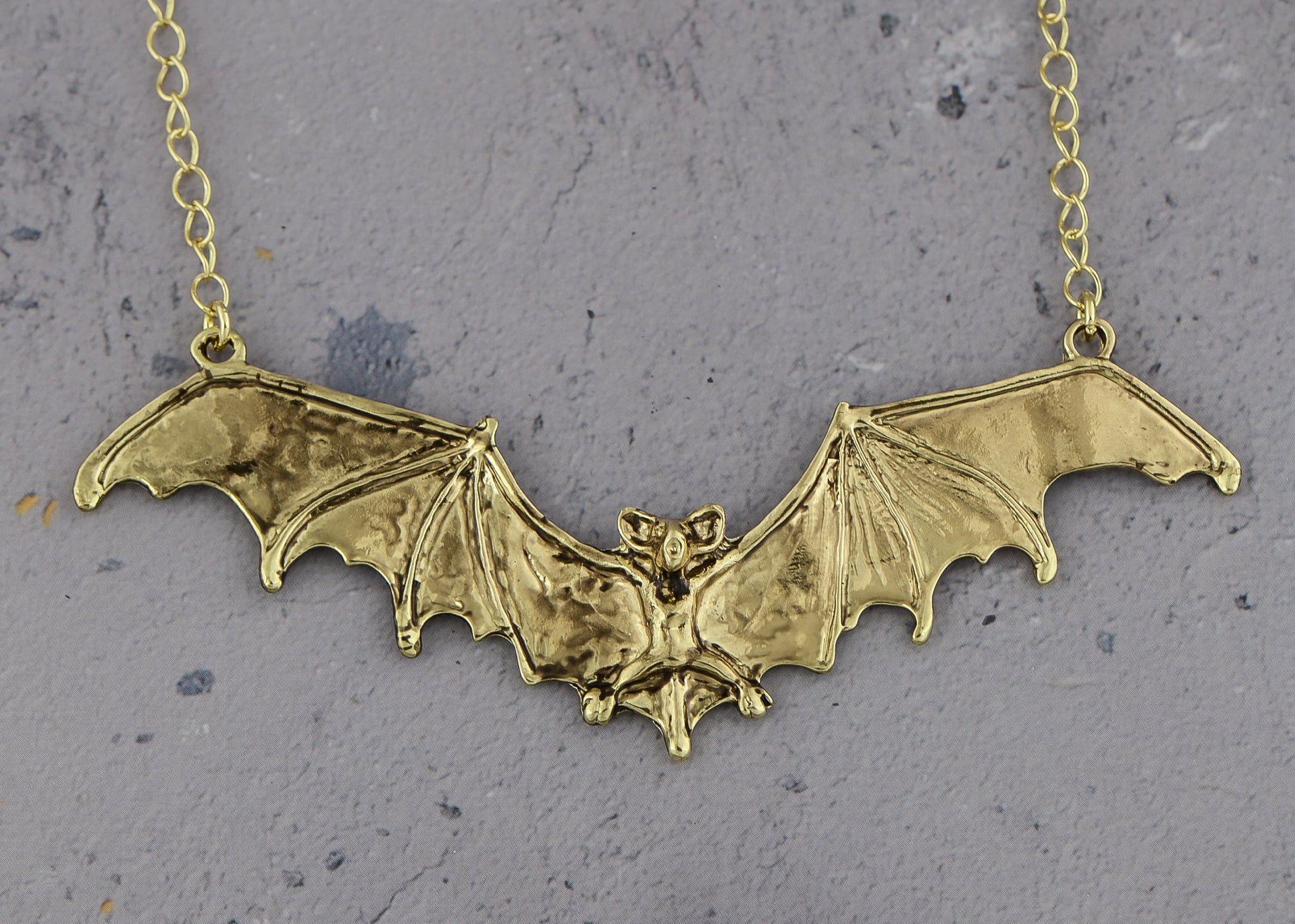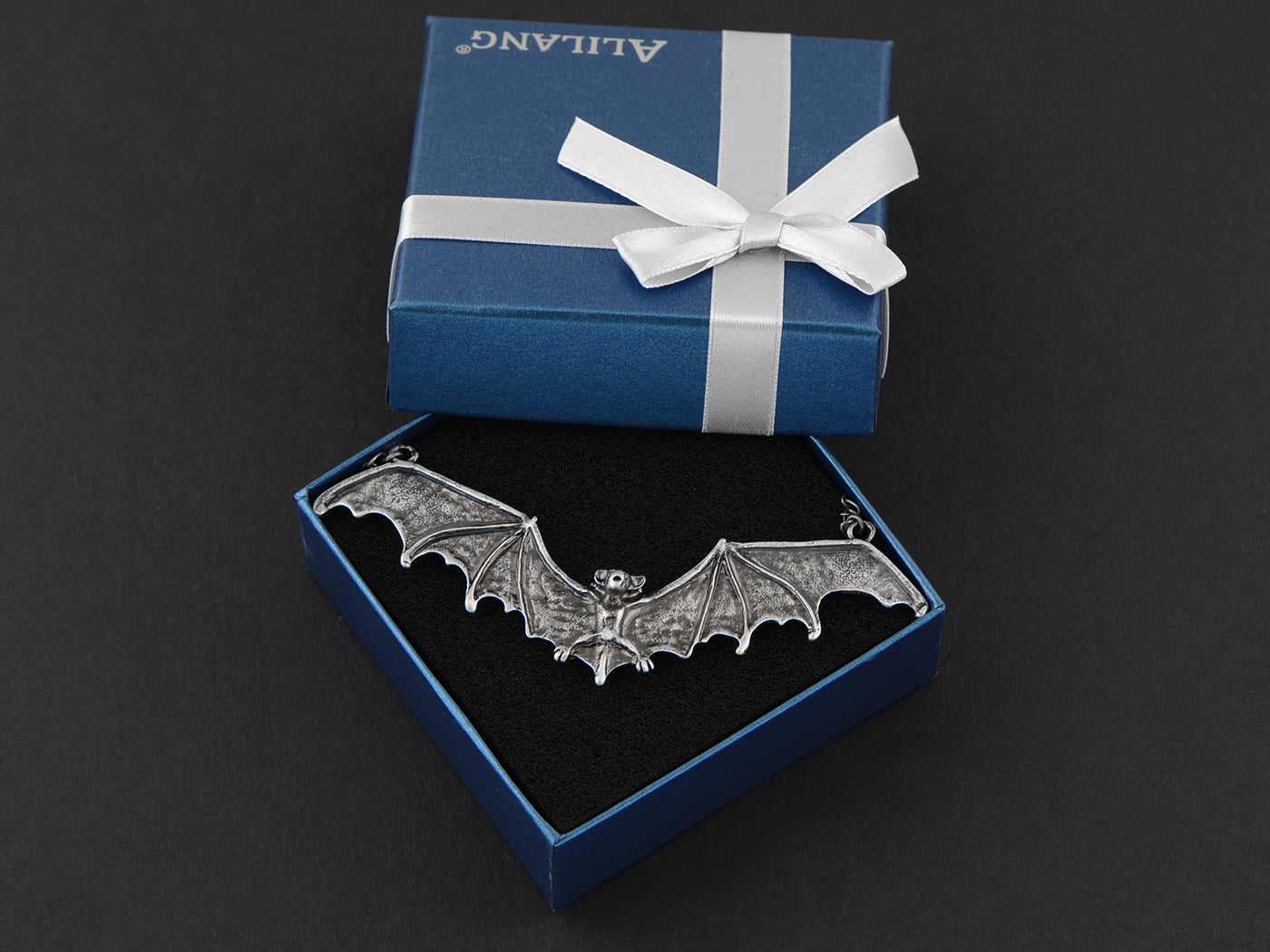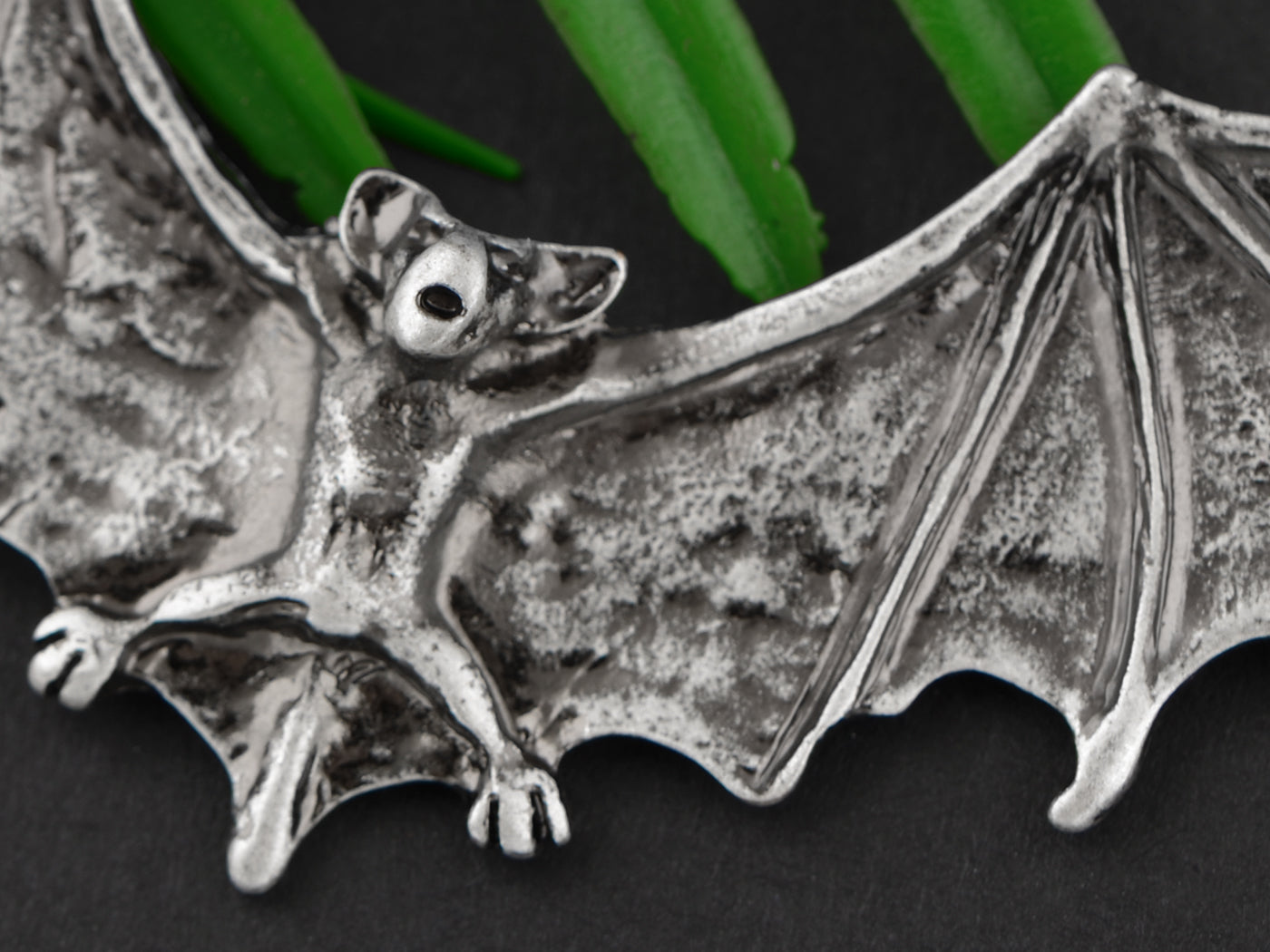 - UNIQUE DESIGN - Necklace featuring frightening Halloween flying bat design with black enamel paint and alloy metal.