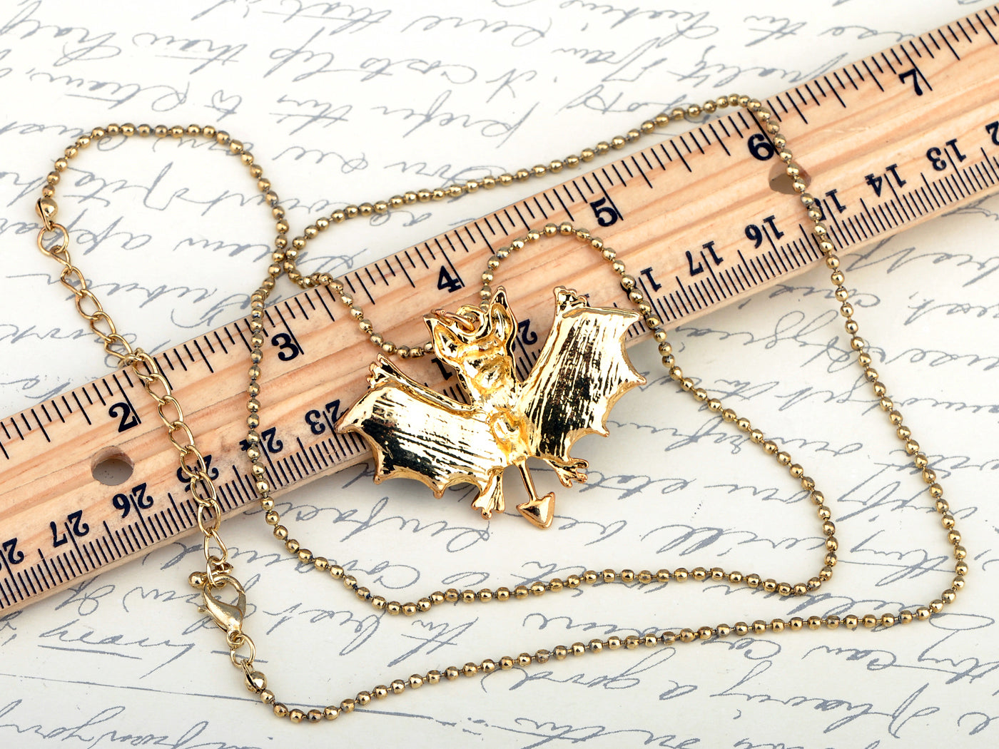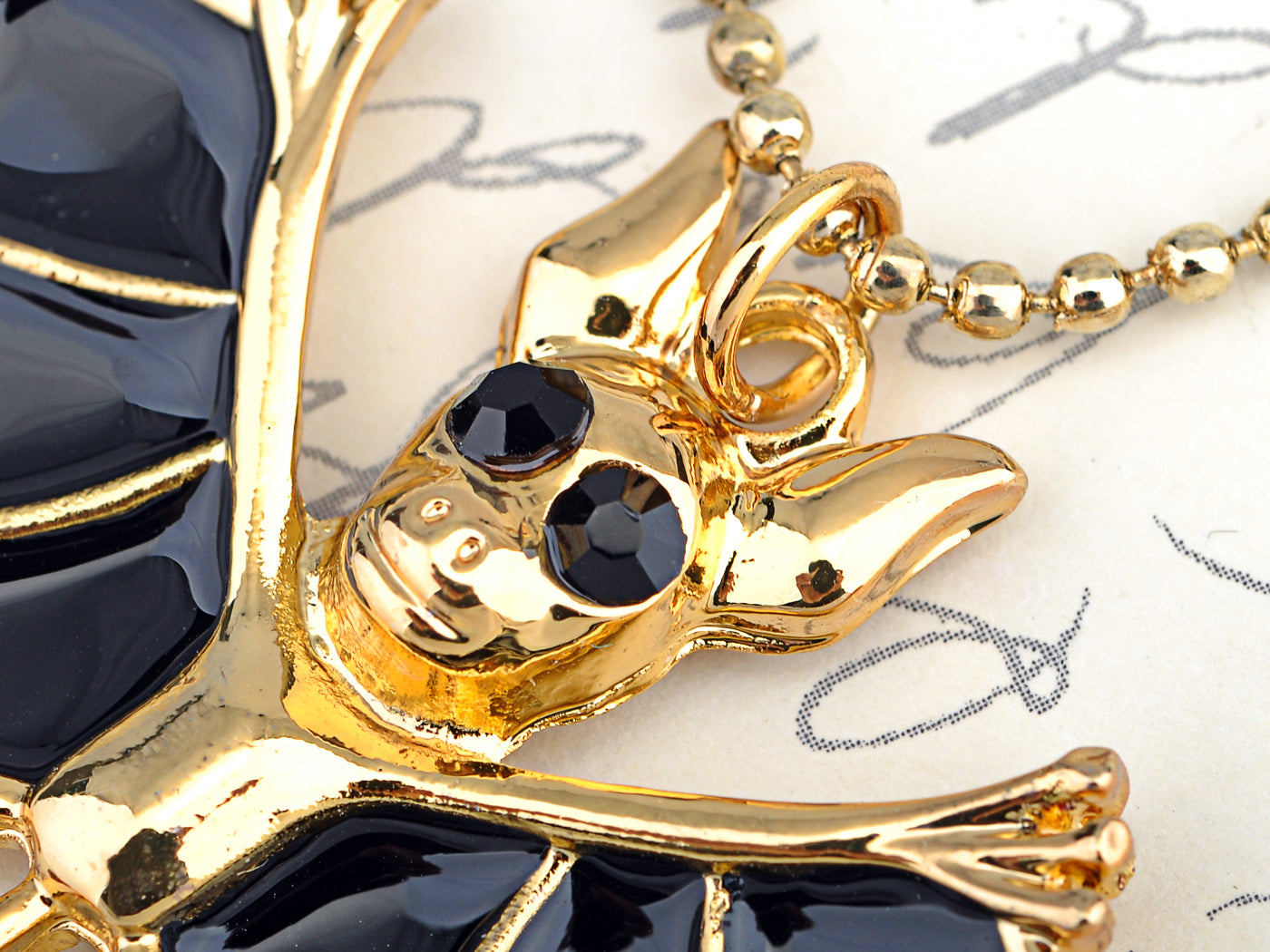 - UNIQUE DESIGN - A golden tone bat necklace that has black enamel on the wings and black crystal rhinestones as the eyes. The necklace is adjustable and comfortable to wear all day long.