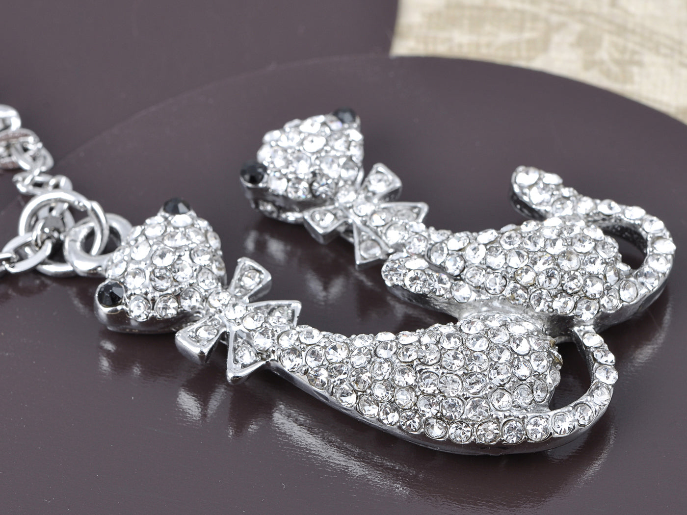 - ADORABLE DESIGN - Stunning silver tone necklace with two kitty cats pendants. The cats are fully embedded in clear crystal rhinestones, along with two black crystal rhinestones for the eyes.