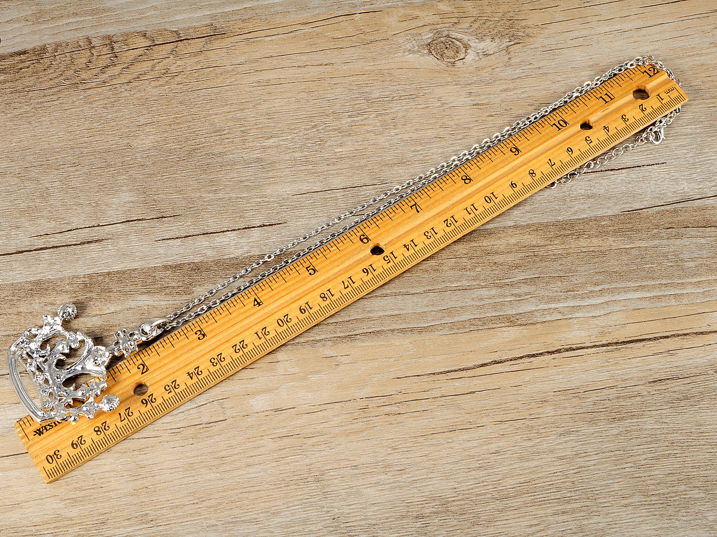 - LARGE CROWN PENDANT NECKLACE. Every queen needs a crown. Make a royal statement with this large silver color pendant that measures approximately 2 x 2.25 and includes a 23 chain with a 2 extender.