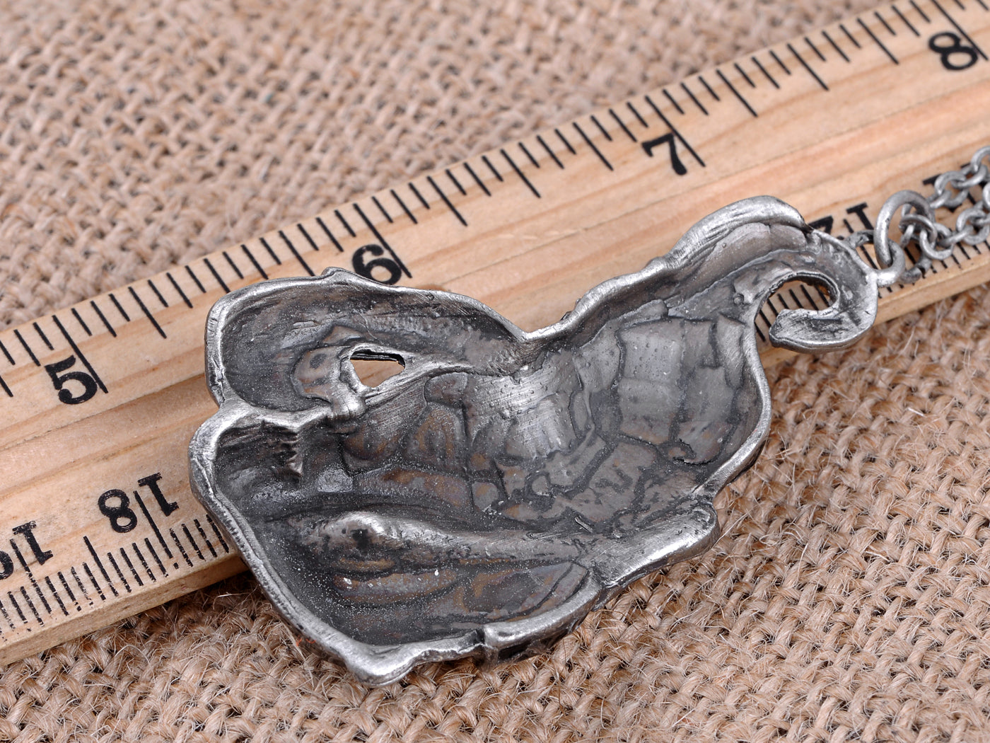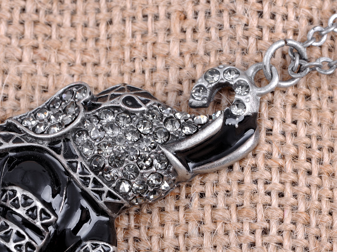 • UNIQUE DESIGN - Rolo chain necklace featuring a sitting elephant charm with grey colored rhinestones and painted enamel.