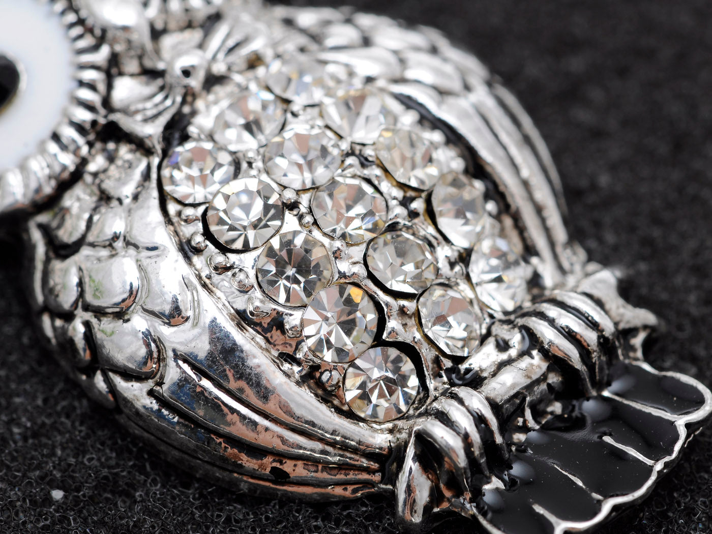 - ANTIQUE STATEMENT PIECE - This darling necklace features a dangling vintage inspired friendly owl perched on a tree branch! Painted with enamel accents on the eyes and tail in white and black enamel & detailed with shimmering Czech crystal eyes. Clear rhinestone embellishments on the belly and silver toned trim on the chain and body add the finishing touches.