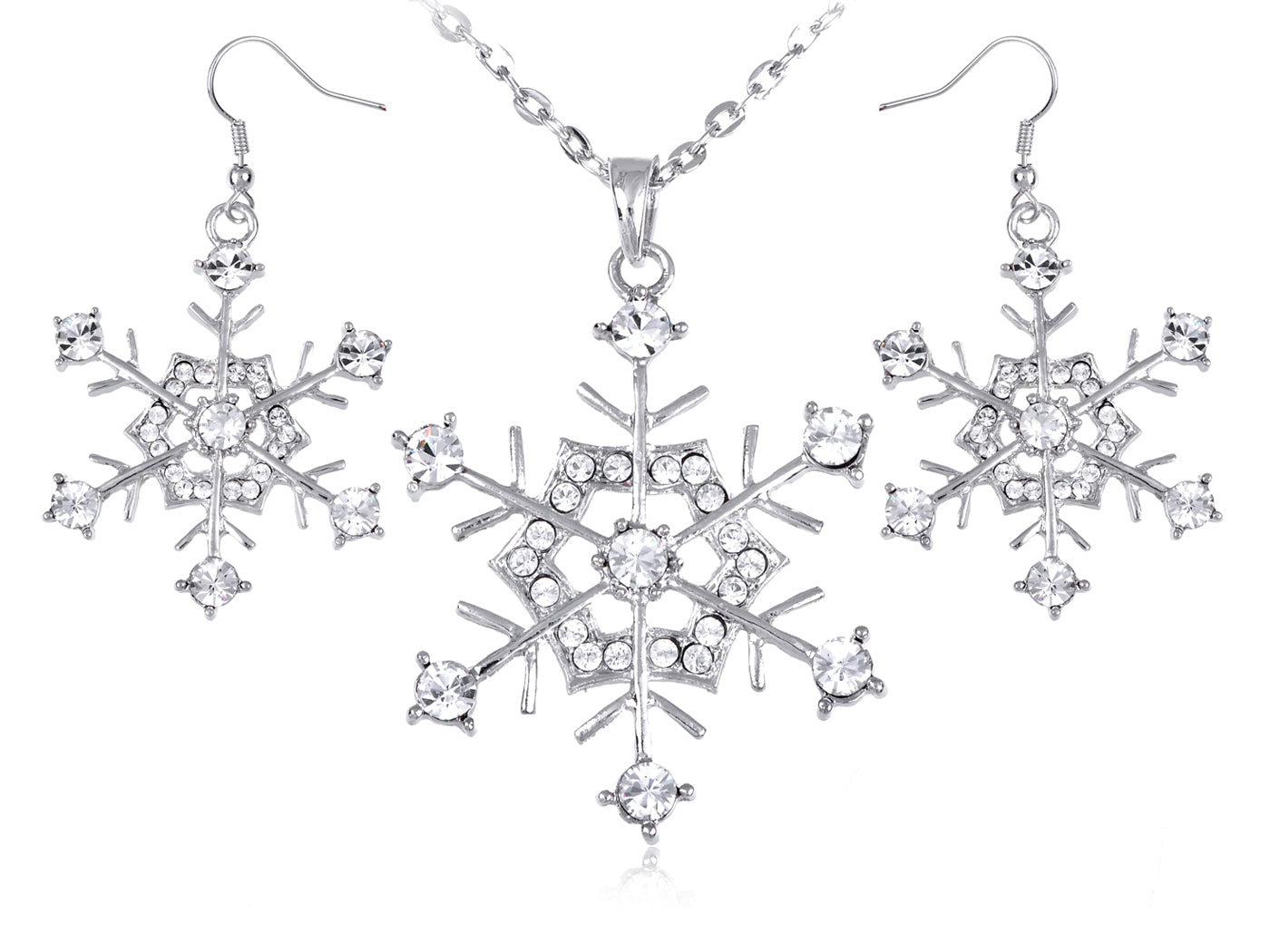 • Silver tone snowflake Necklace Earring with clear crystal make you a real princess