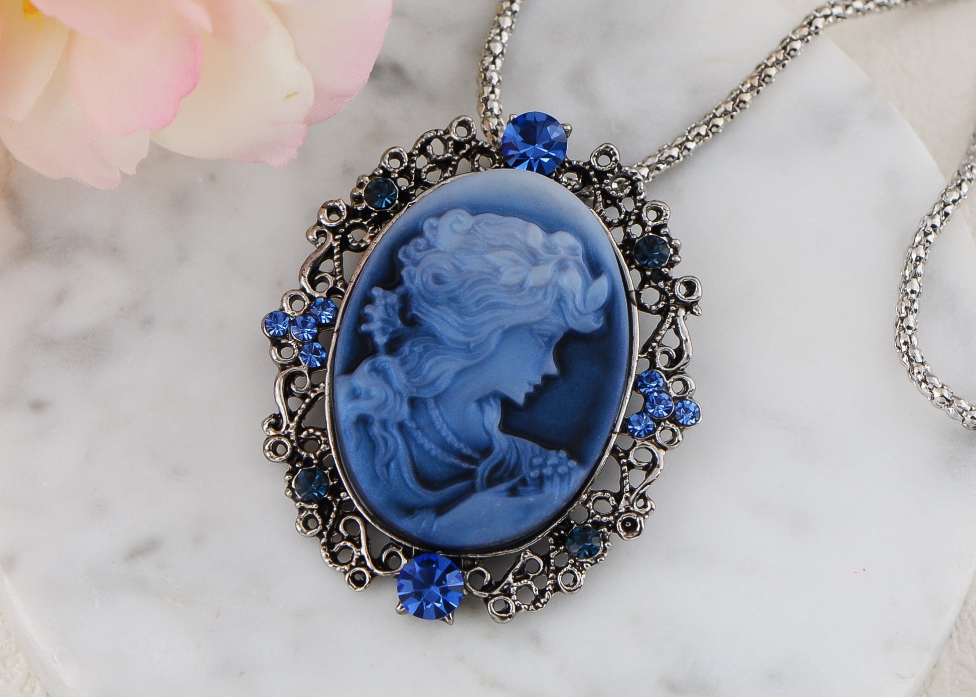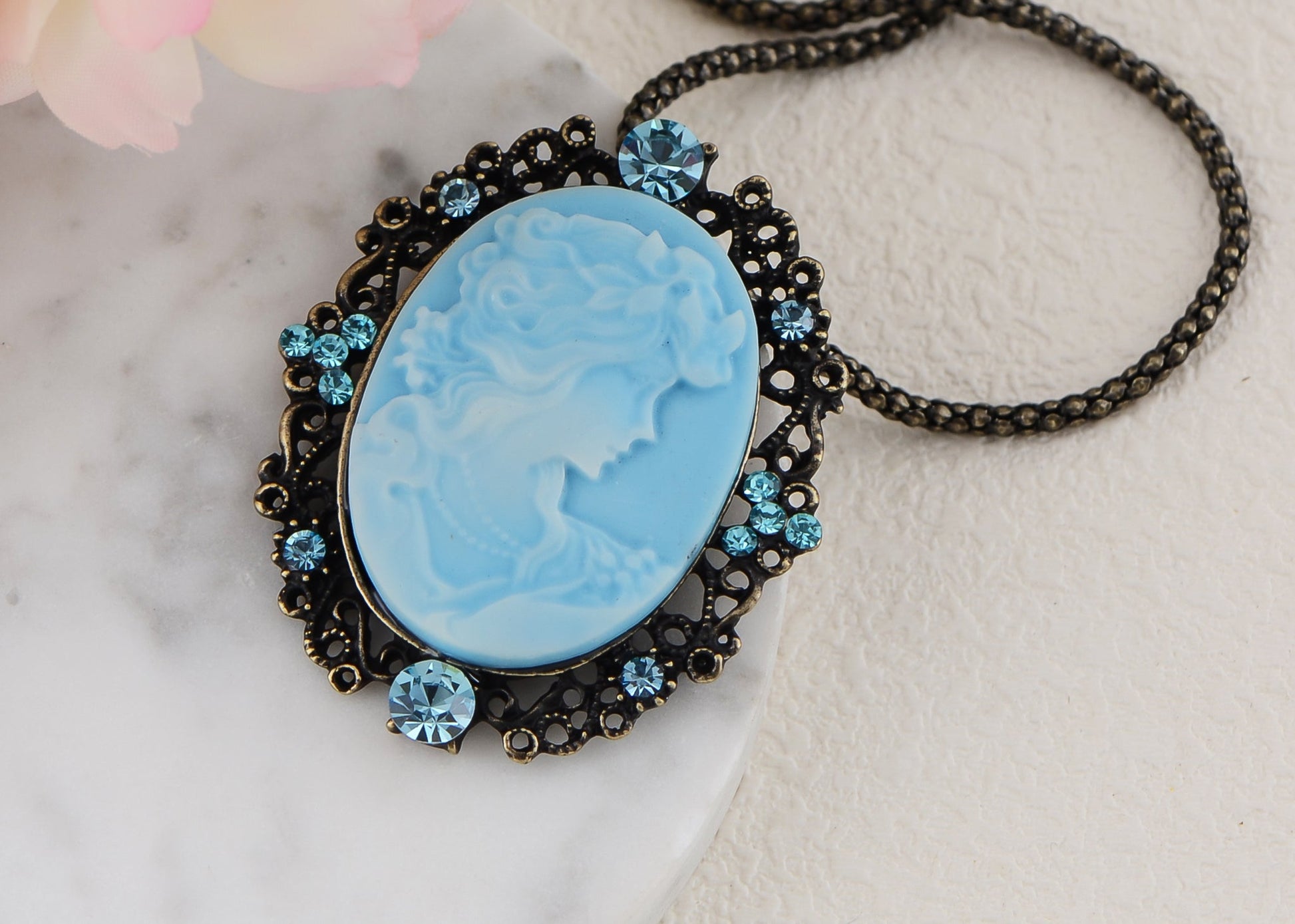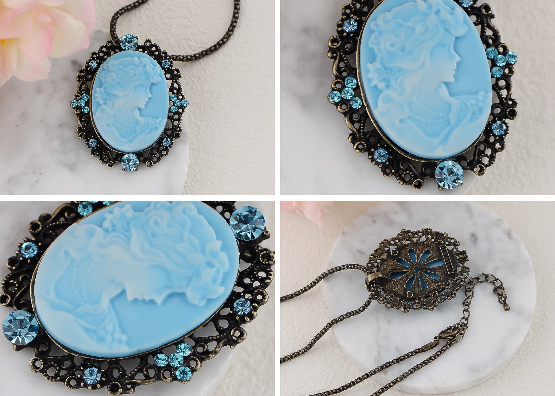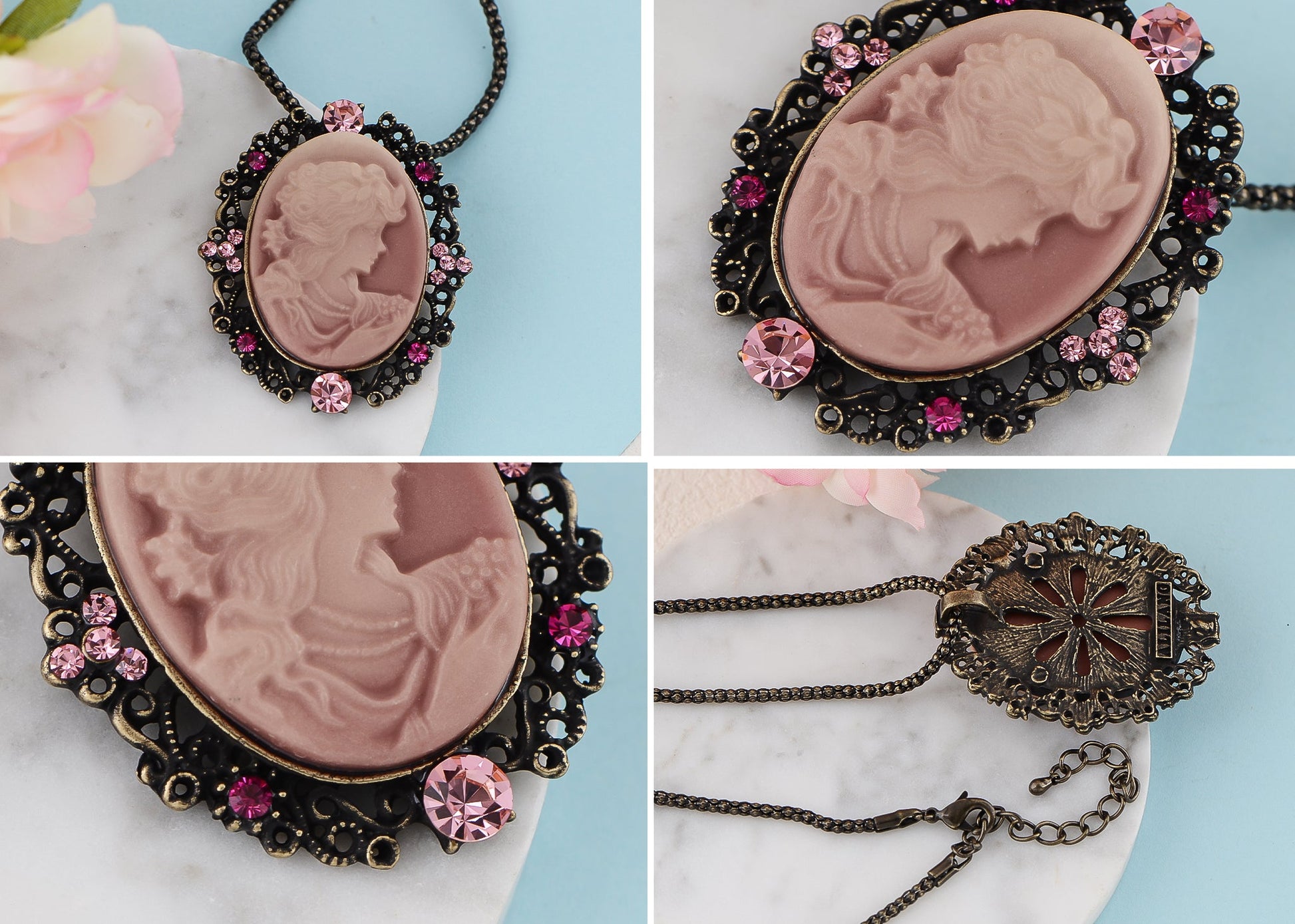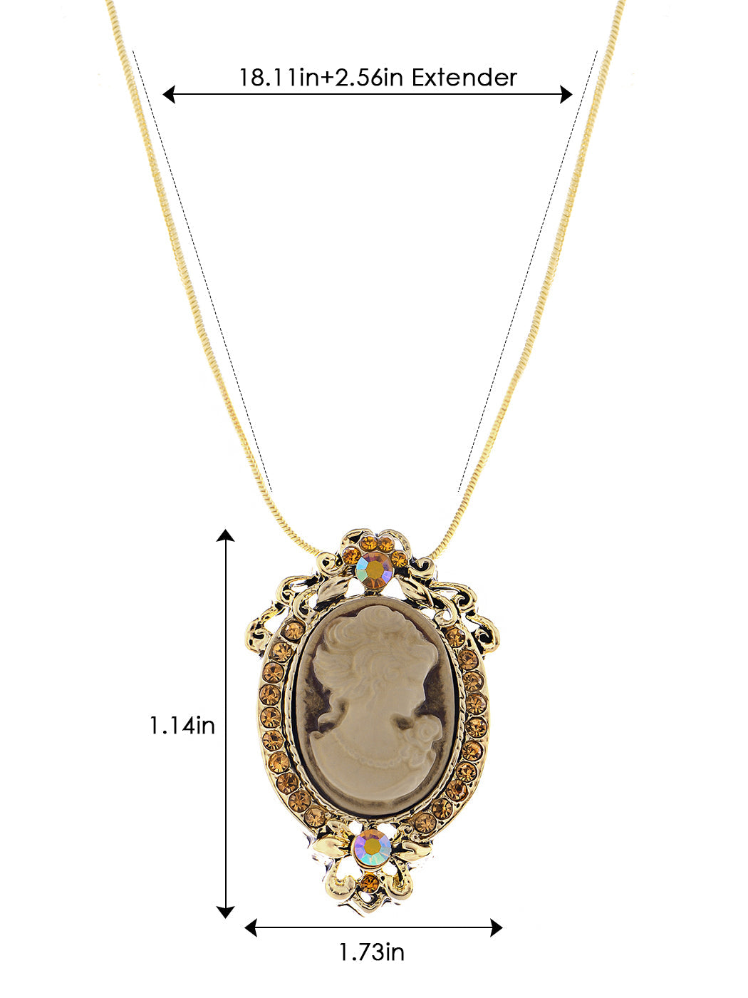 - UNIQUE DESIGN - Beautiful cameo featuring enamel a maiden in a filigree frame enriched floral and crystal rhinestone detail with metal alloy base.