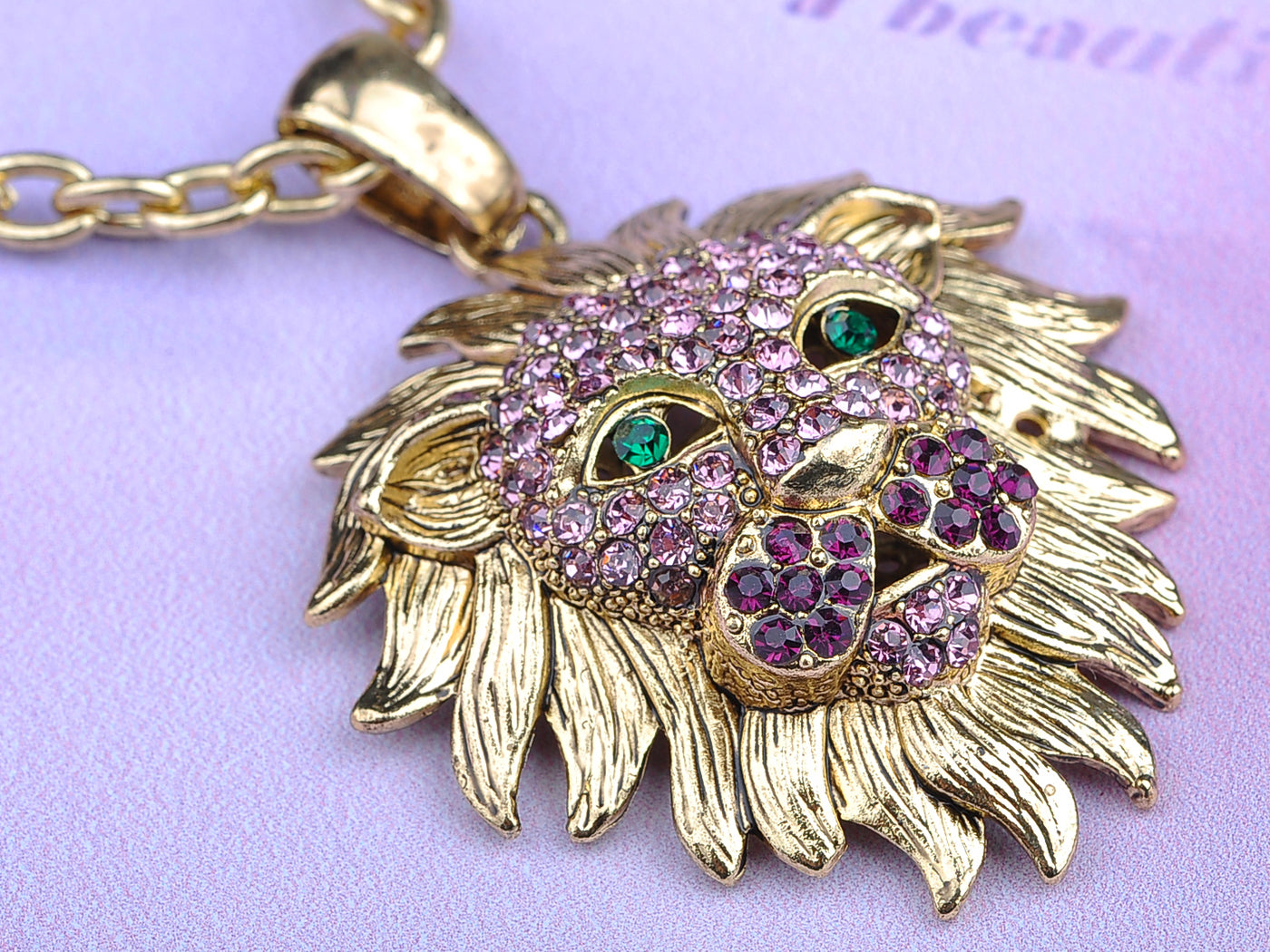 • UNIQUE DESIGN - This Golden Tone Pendent necklace featuring Bling Bling lion head design with purple colored rhinestones and adjustable long chain.Let this cute necklace shine with your next outfit.