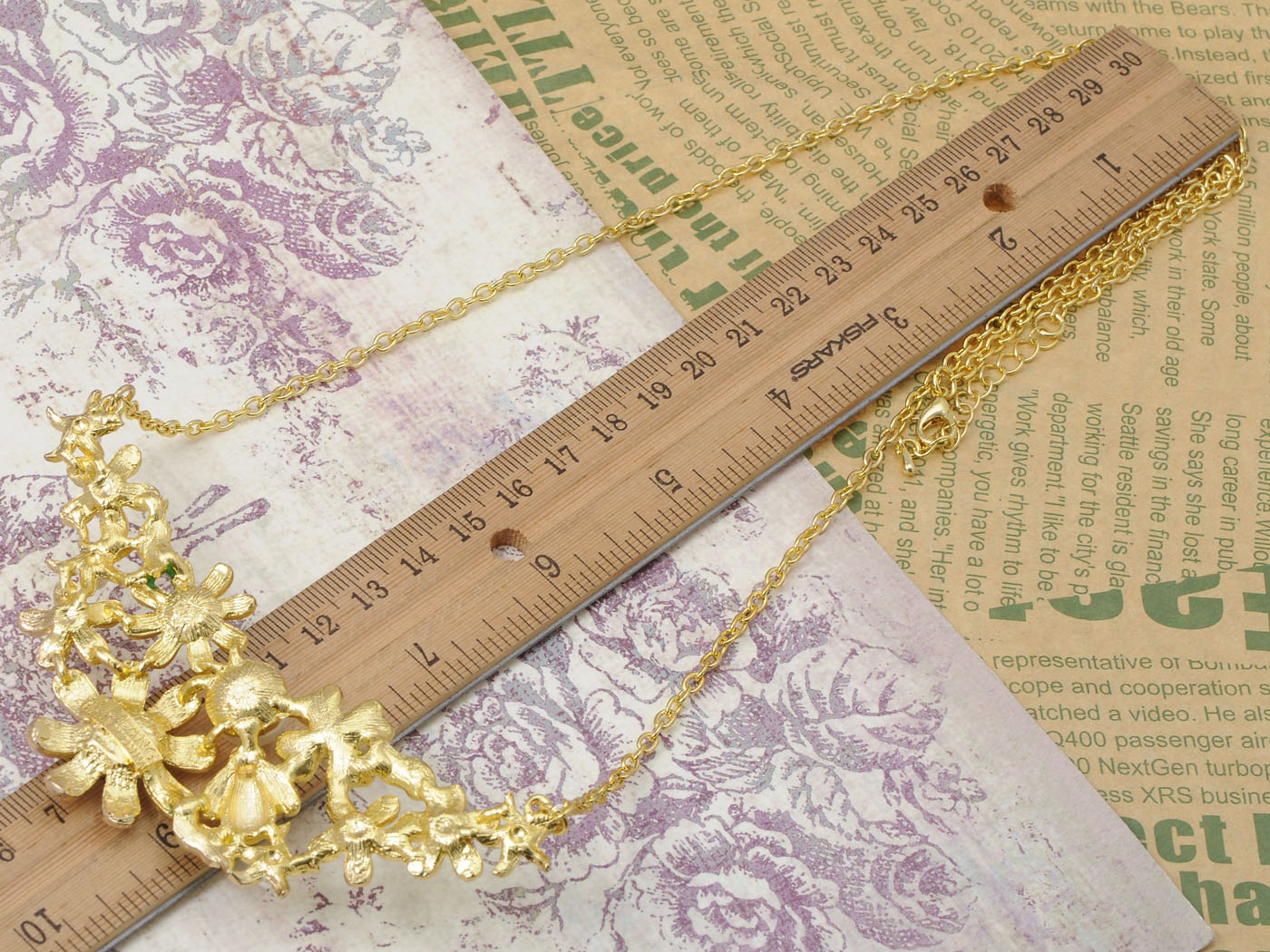 Enamel Flower And Butterfly Bib Statement Necklace Pearl