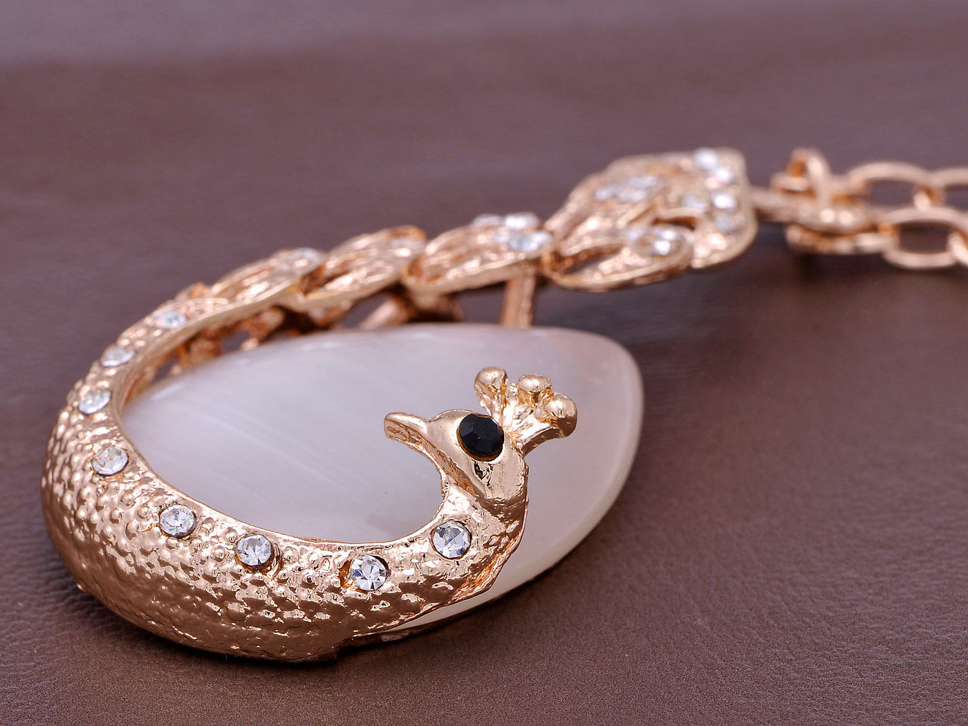 - UNIQUE DESIGN - Cable/rolo chain necklace featuring peacock charm with clear/multicolor crystal colored rhinestones and opal/enamel colored stone.