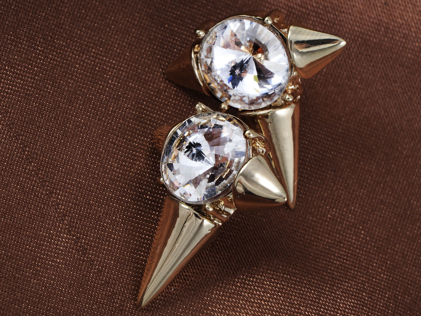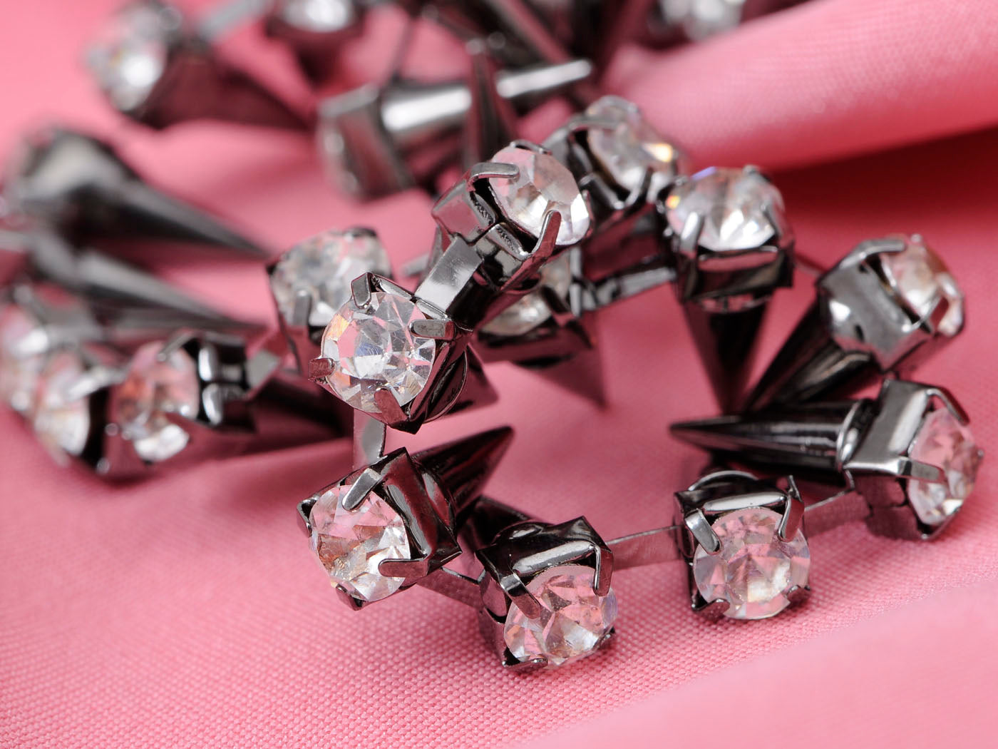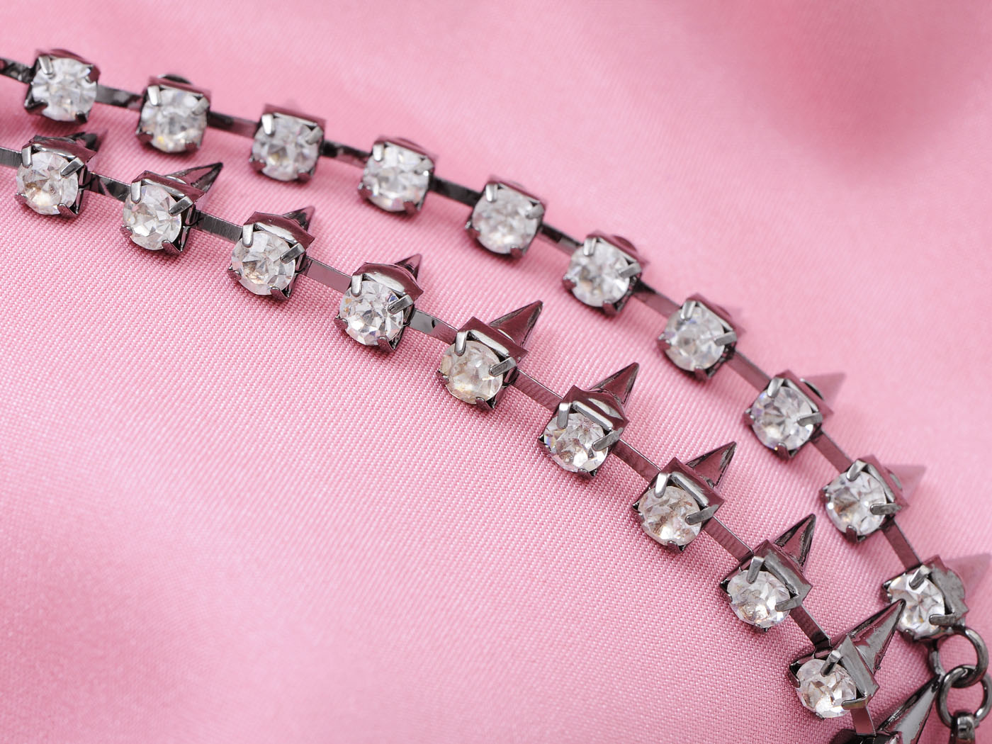 - GLAM AND STREET FASHION COMBINED. Who says you gotta keep the two separate This stunning spiky collar necklace ditches the typical leather and spike look for something a little bit more elegant, feminine, and sleek in design. A thin chain holds the individual spikes together with each piece topped with a sparkly clear colored crystal rhinestone.