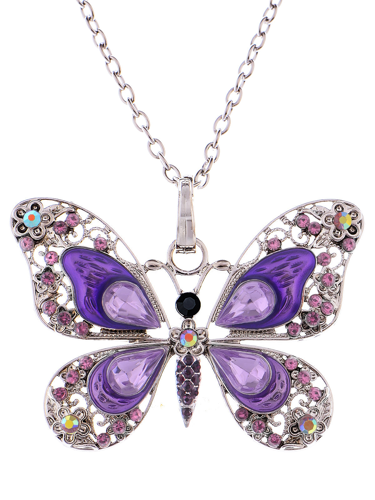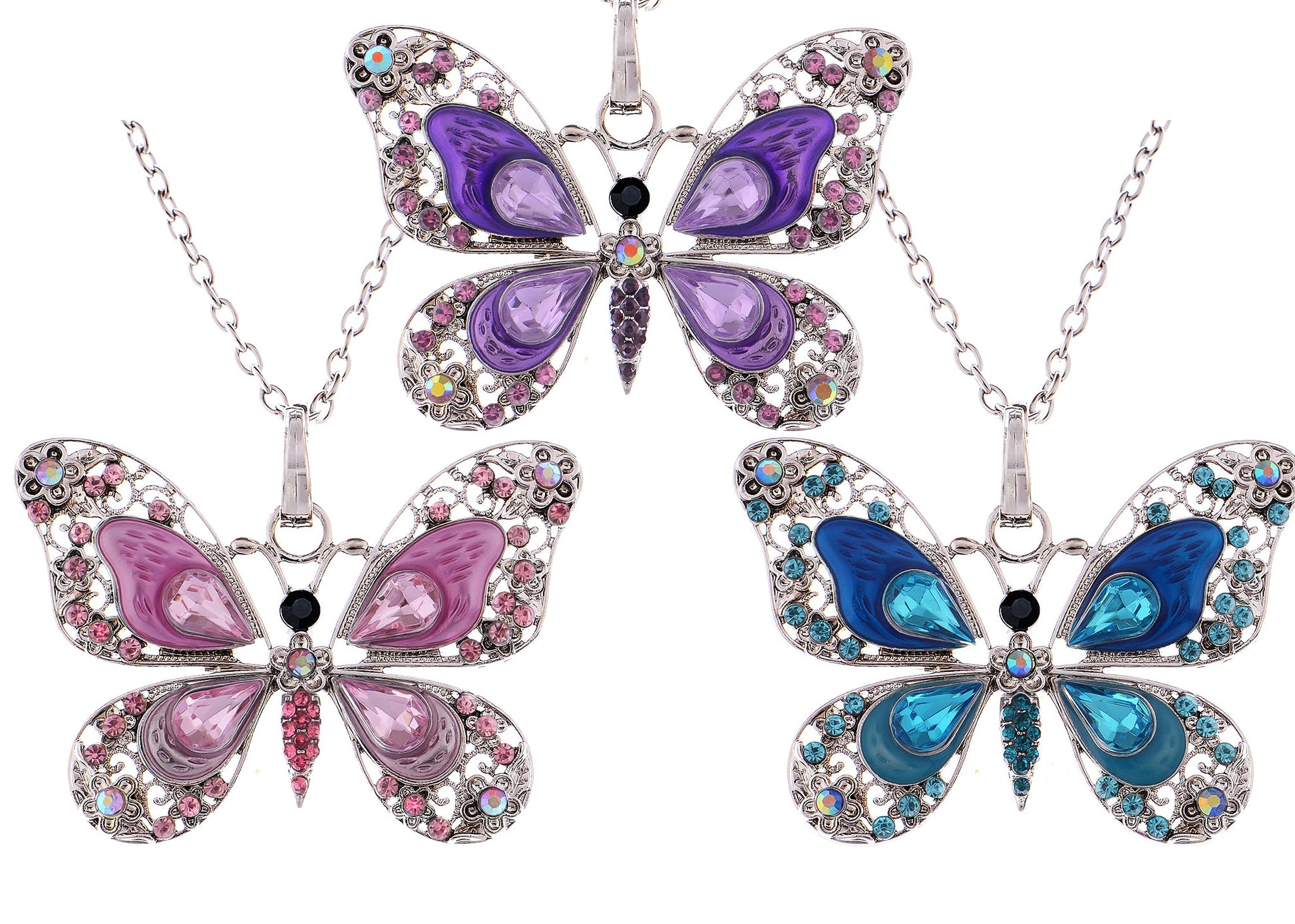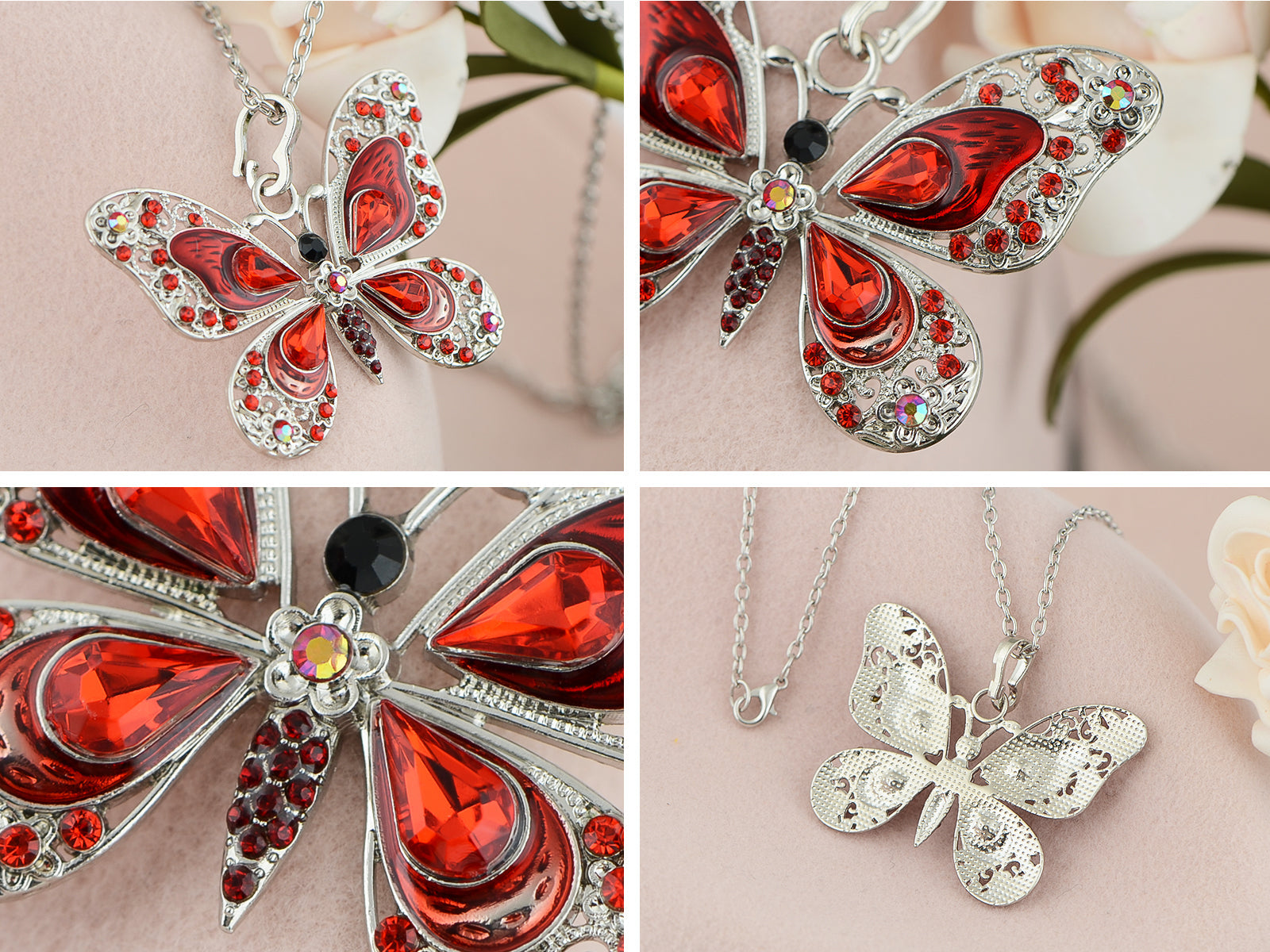 UNIQUE DESIGN -- Beautiful necklace featuring butterfly design finished with a coating of transparent enamel to achieve the glimmering, lasting results.