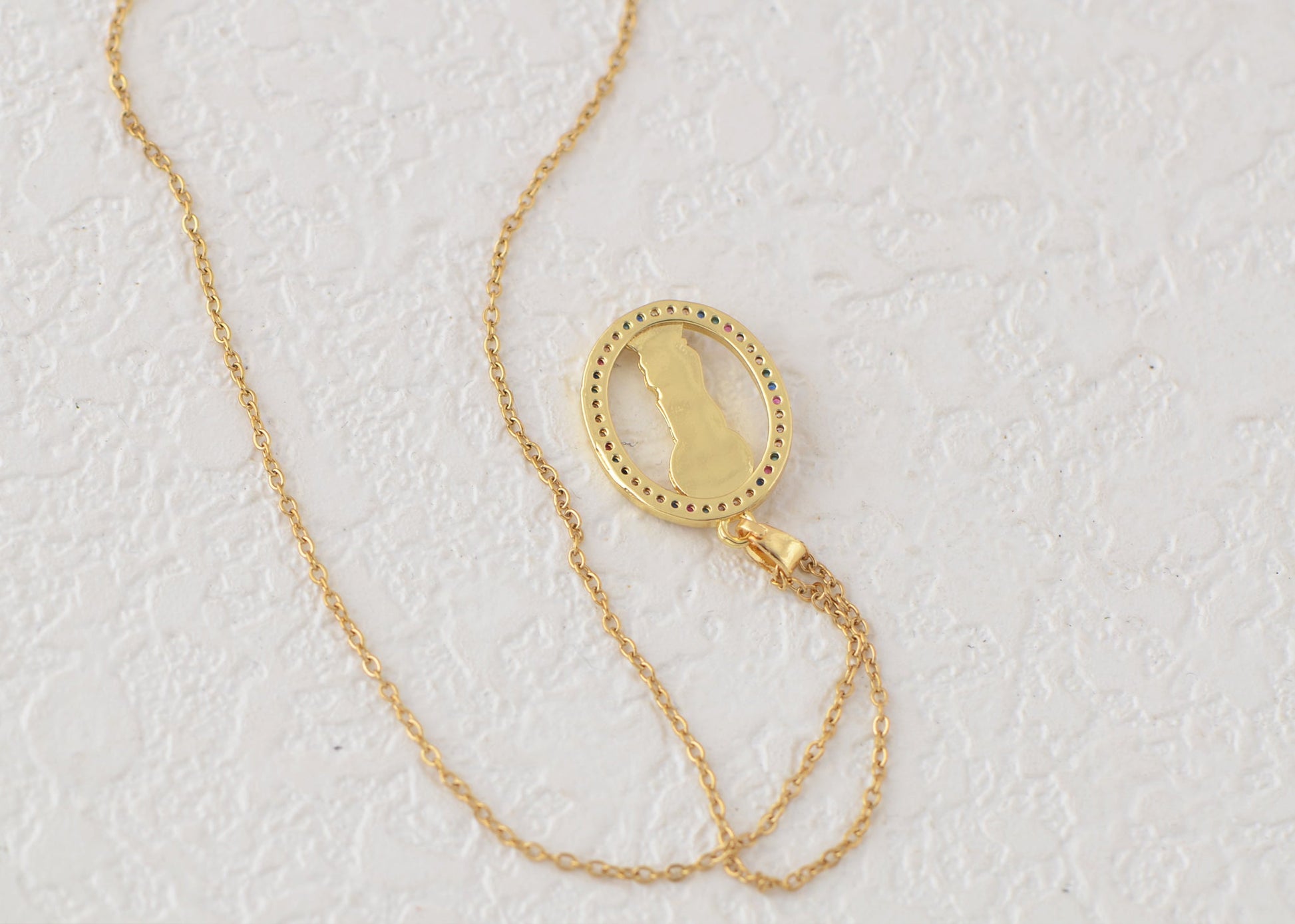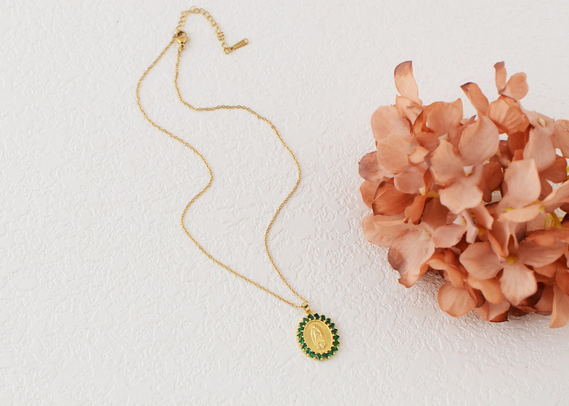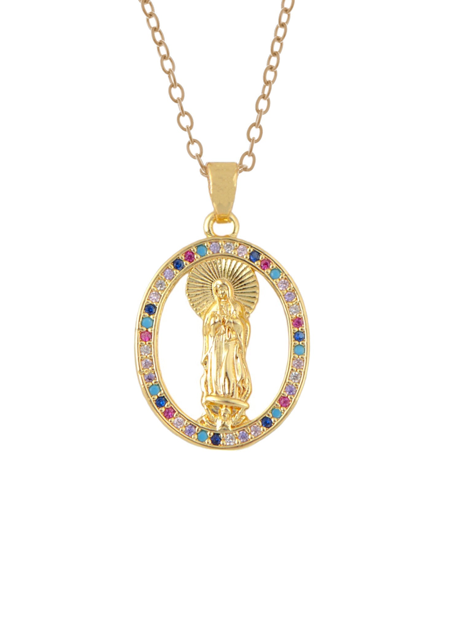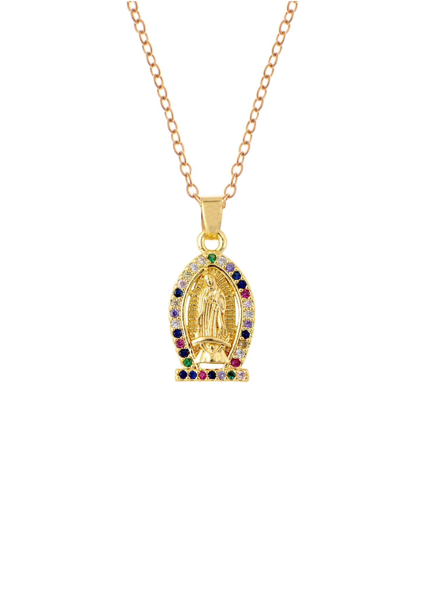 18K Gold Plated Crystal Rhinestone Virgin Mary Catholic Necklace - Our Lady of Guadalupe Medal Pendant - Christian Jewelry for Women and Men