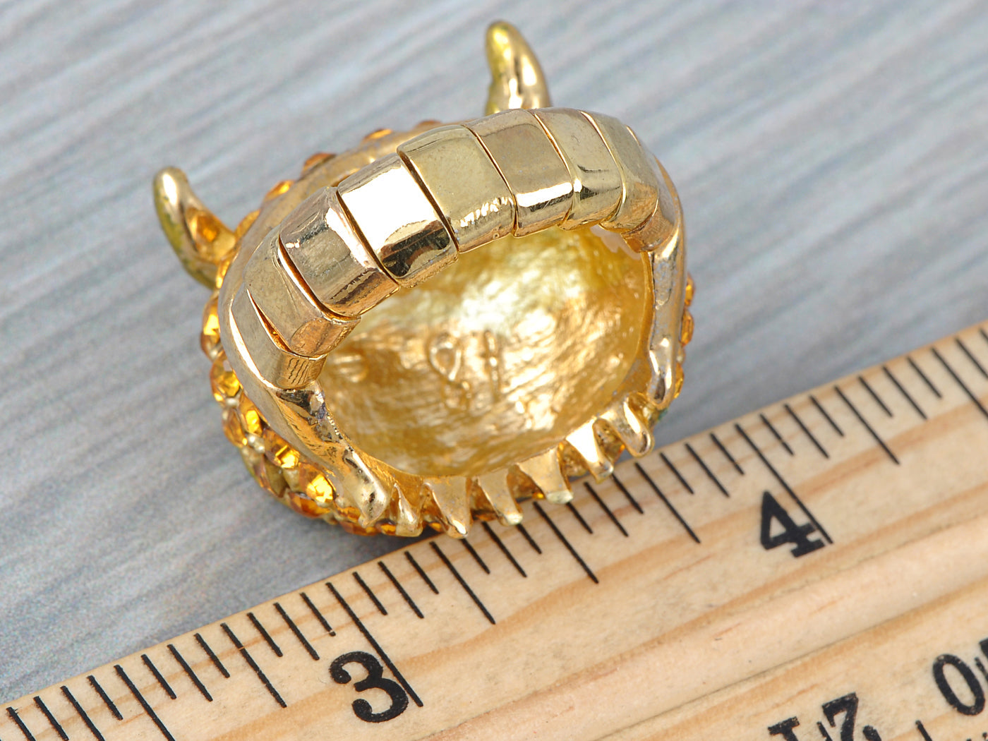 - CUTE ACCESSORY - Let this ring capture your imagination as it sparkles on your hand! Featuring a fairytale like whimsical owl face with encrusted stunning faux topaz rhinestones and contrasting Swarovski lime green rhinestone details. Gold toned trim and piercing black synthetic gemstones adds life to this hooting animals eyes. The band has stretch and is adjustable for your comfort.
