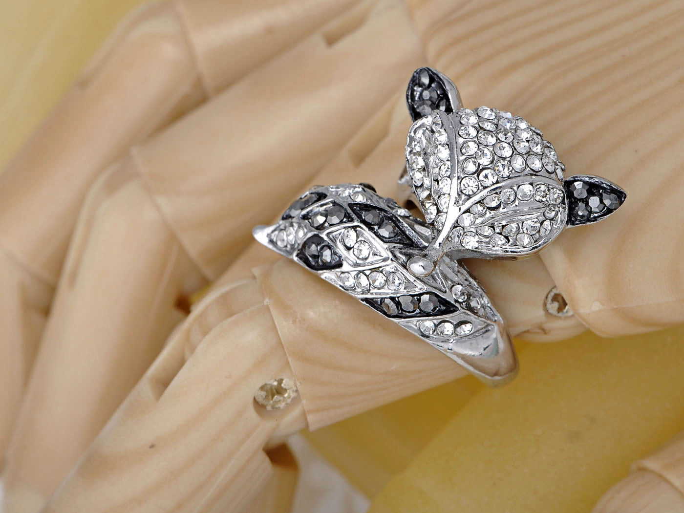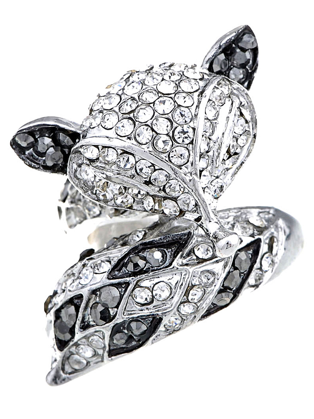 - UNIQUE DESIGN - Adjustable ring featuring a cute sly foxy fox animal design with shinely clear black/pink rainbow crystal rhinestones, and silvery tone metal alloy base.